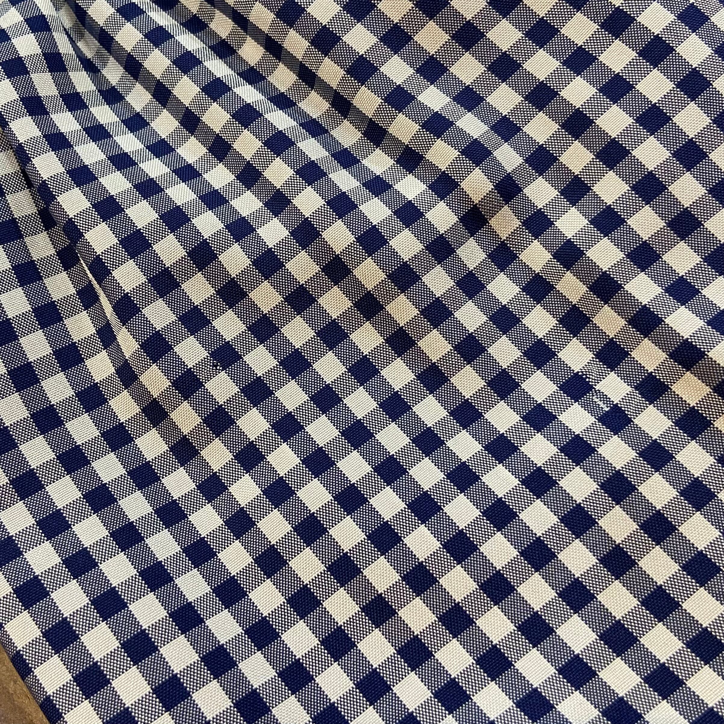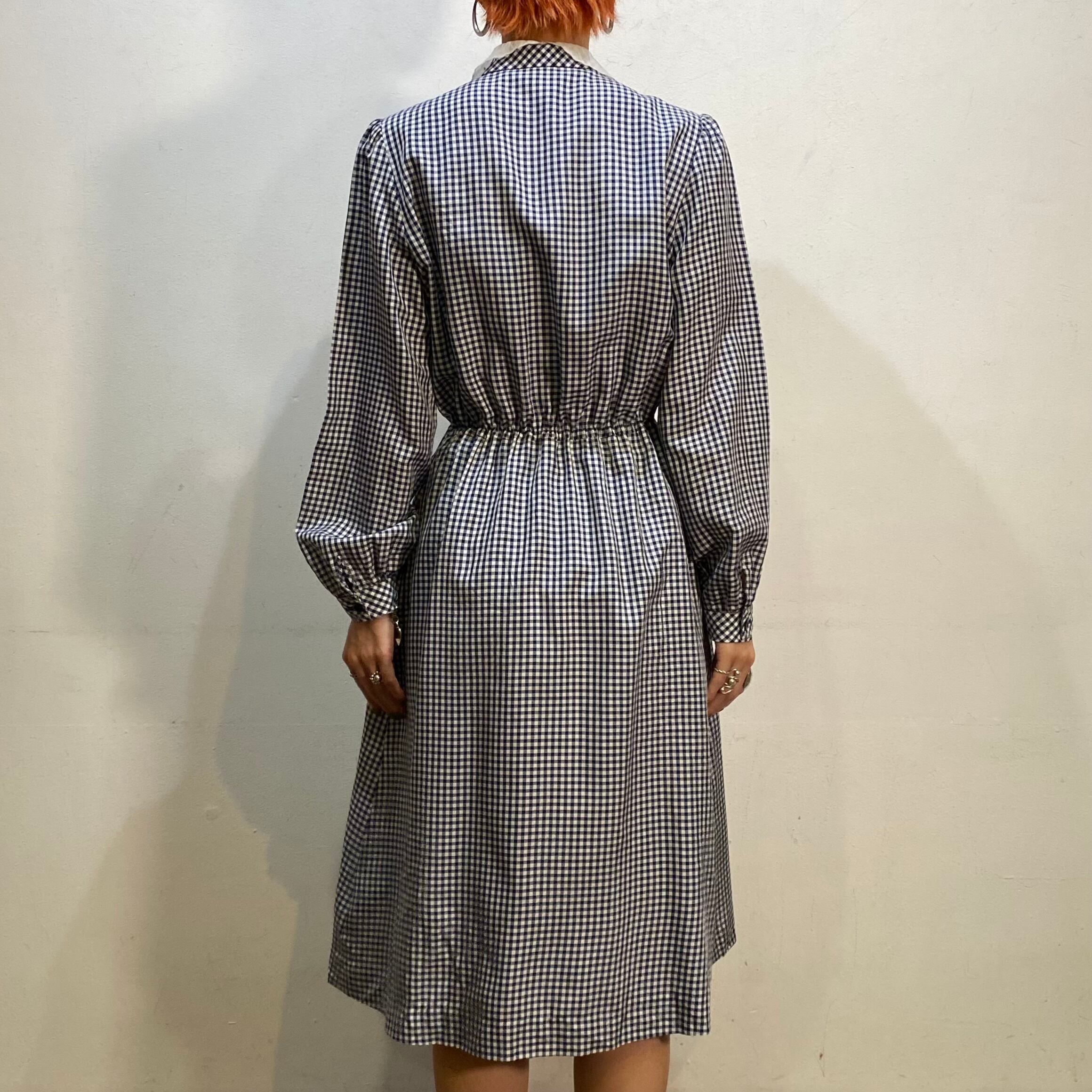 ネイビー×ホワイトのギンガムチェックが可愛い、70年代のシャツワンピースです。