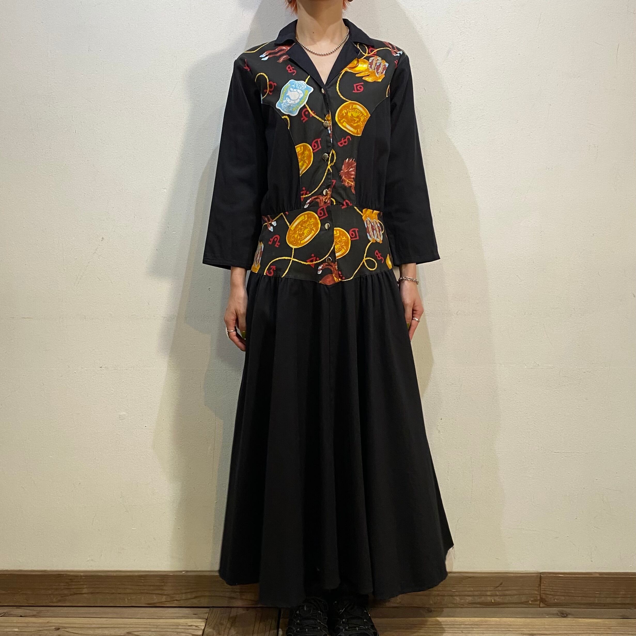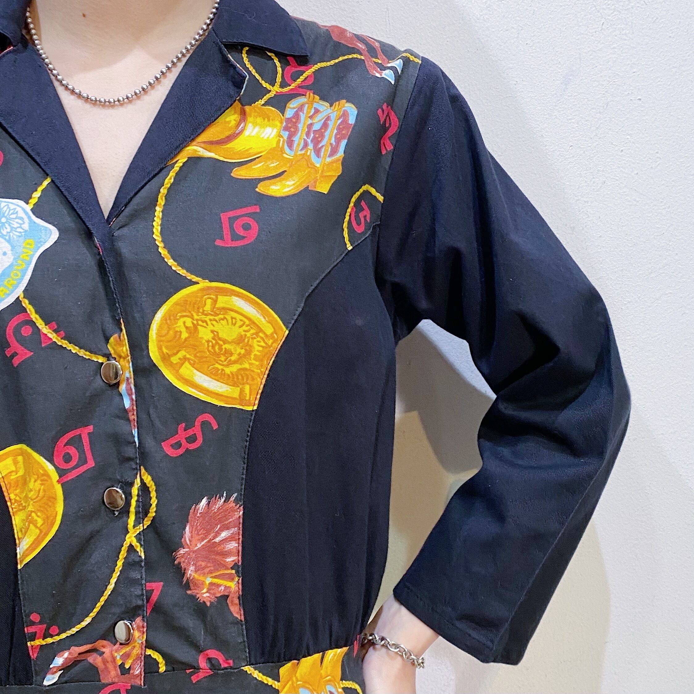 ウエスタン柄との切り替えが可愛い、80年代のシャツワンピースです。