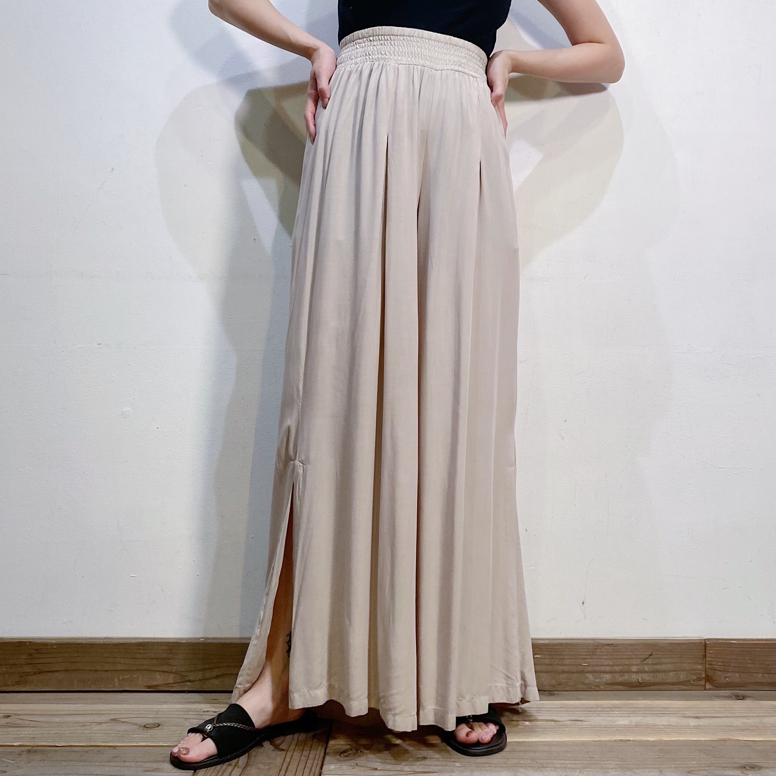 薄いベージュカラーで着まわしやすく、ウエストもゴムで楽ちんなのでかなり使えそうな一枚。