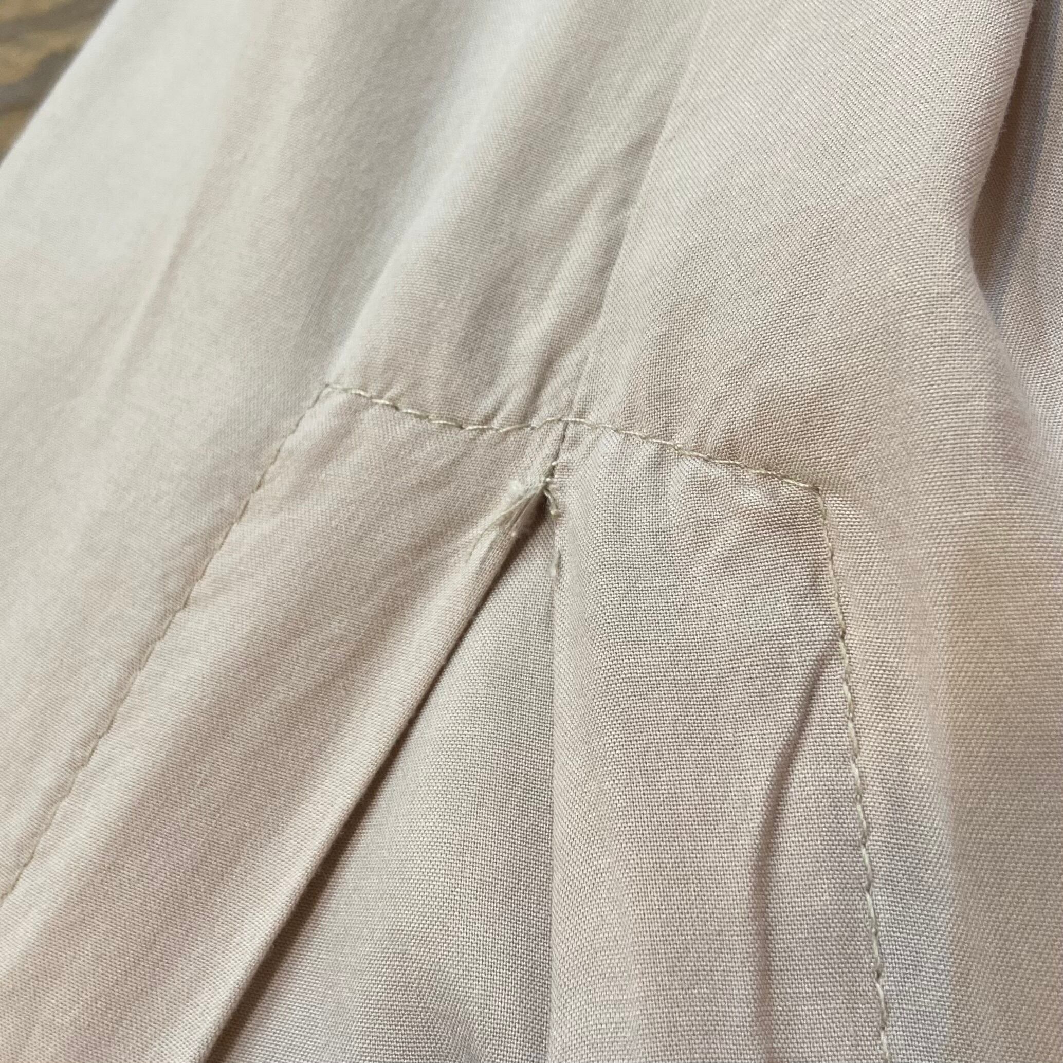 ウエストのシャーリング部分にホツレ・片方のスリットの上に若干のホツレが見受けられますが、使用に問題はございません。
