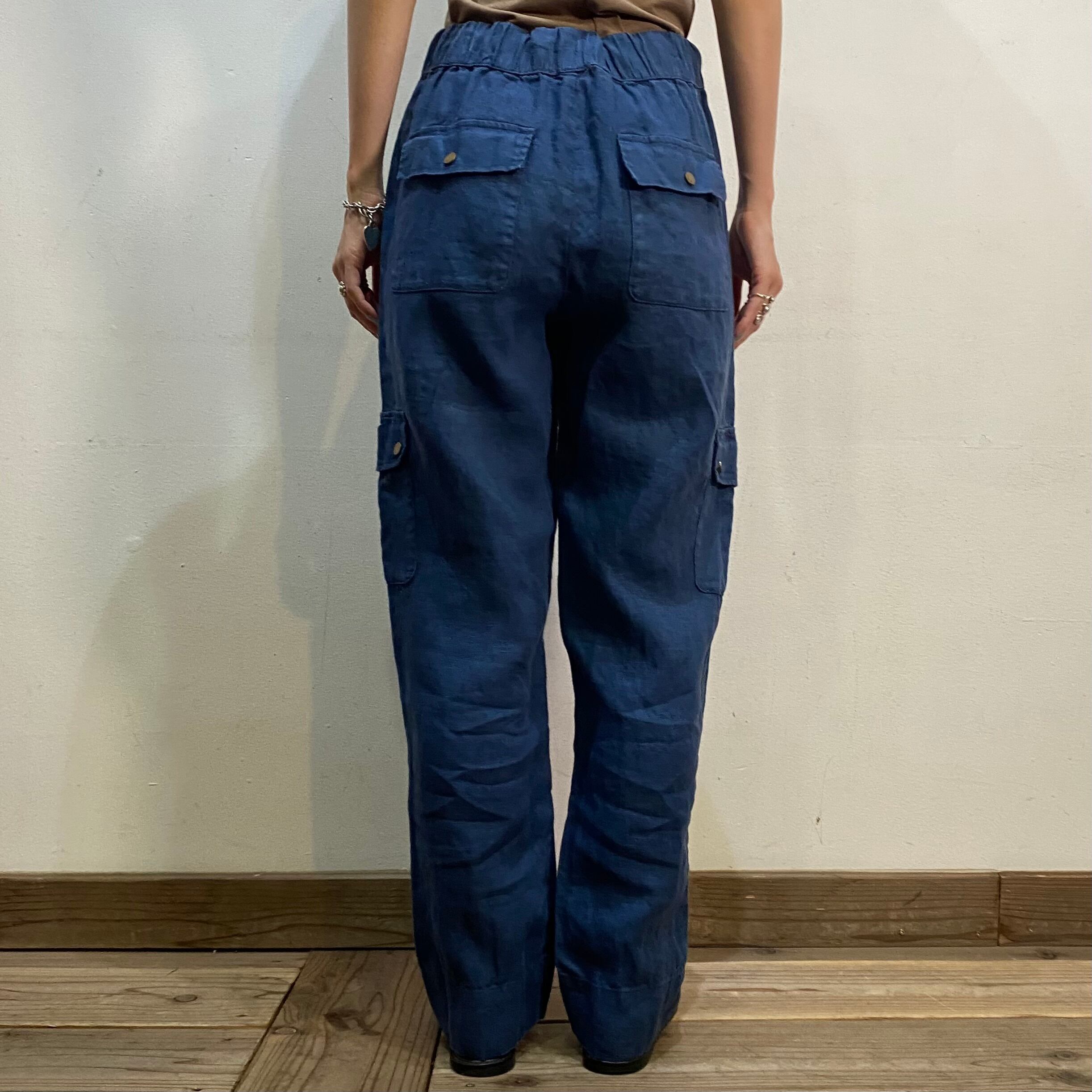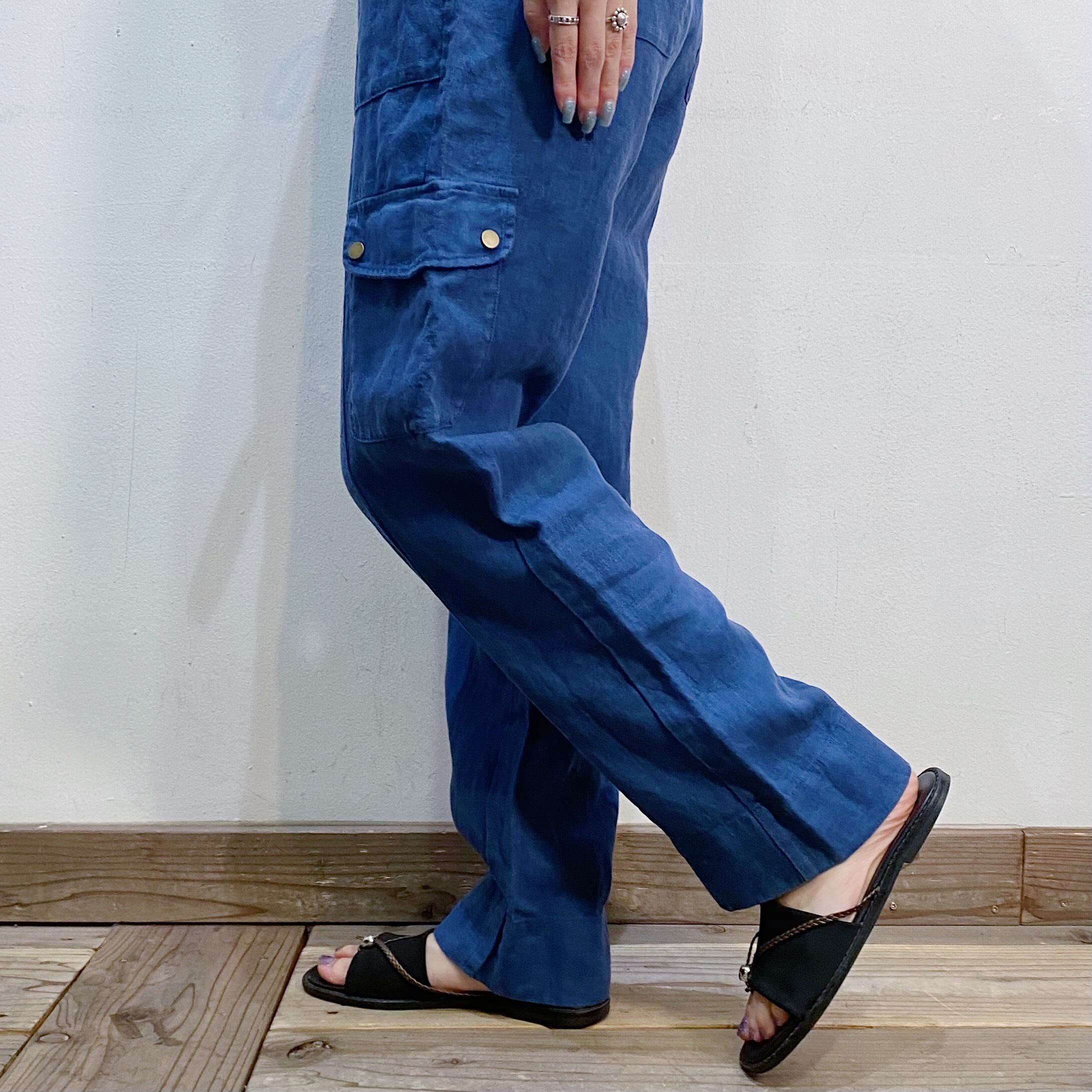 ネイビーベースで着こなしやすい、リネン素材のパンツです。