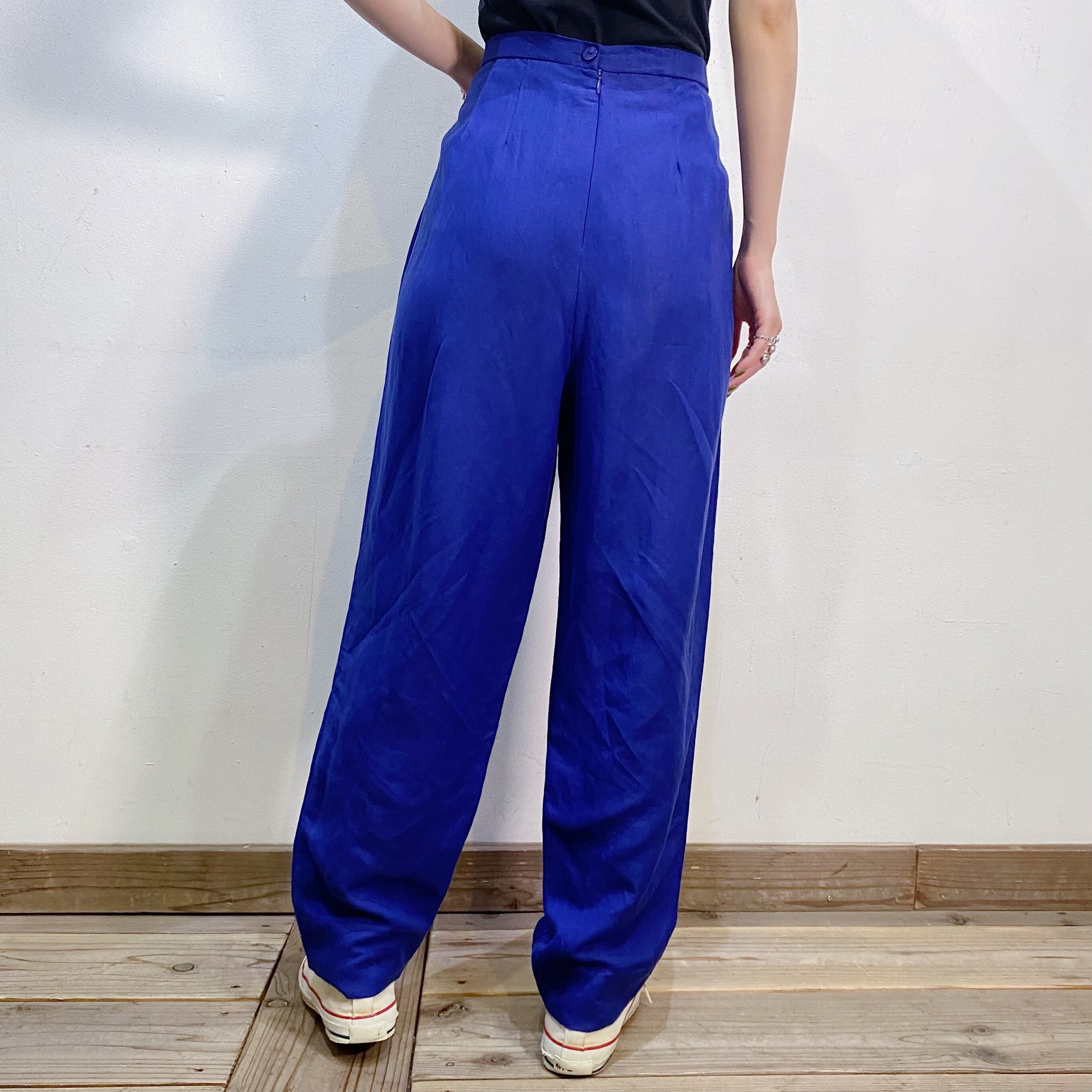 パープルカラーが可愛いスラックスパンツです。