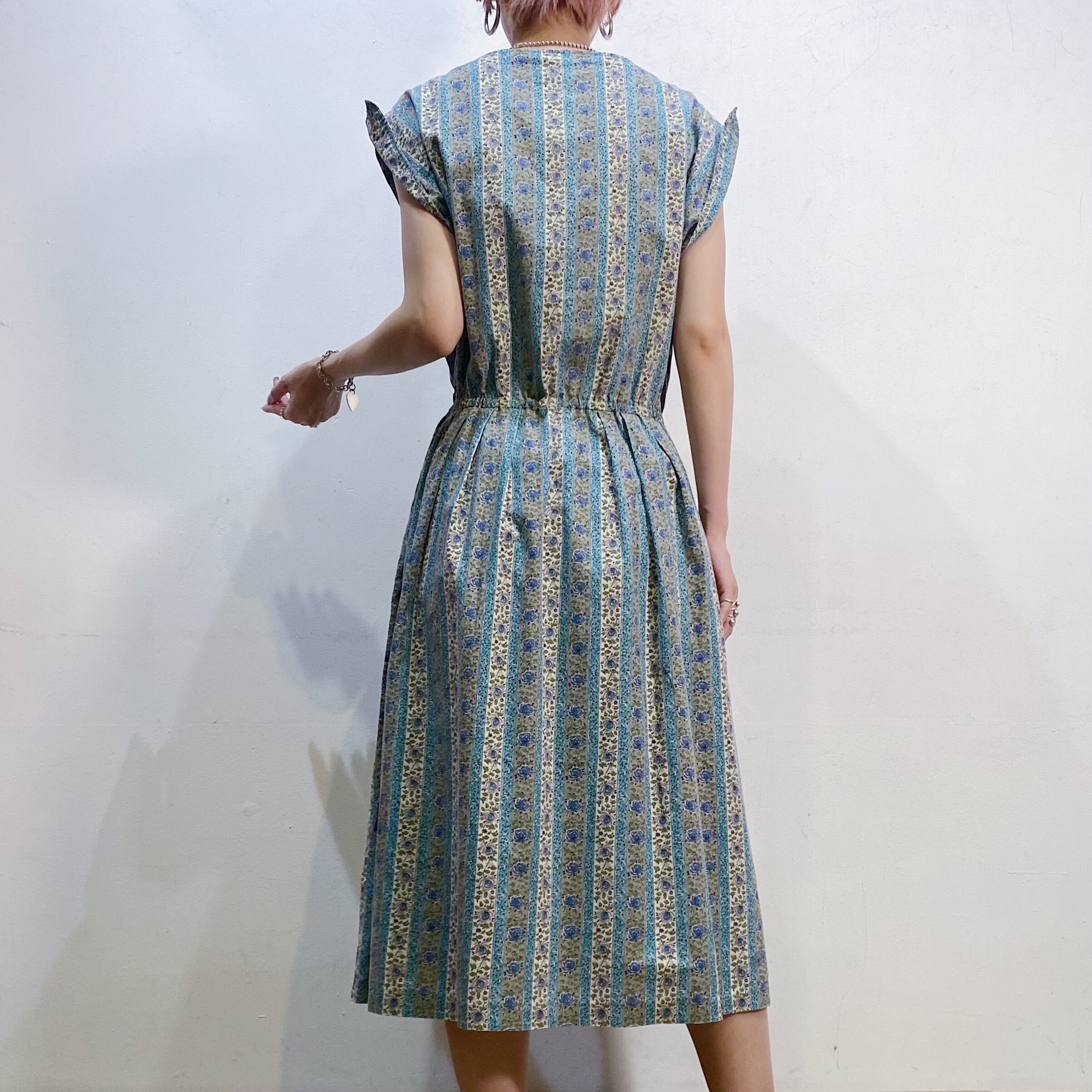 海外の壁紙のようなお花のテキスタイルが素敵な、50~60年代のロングワンピースです。