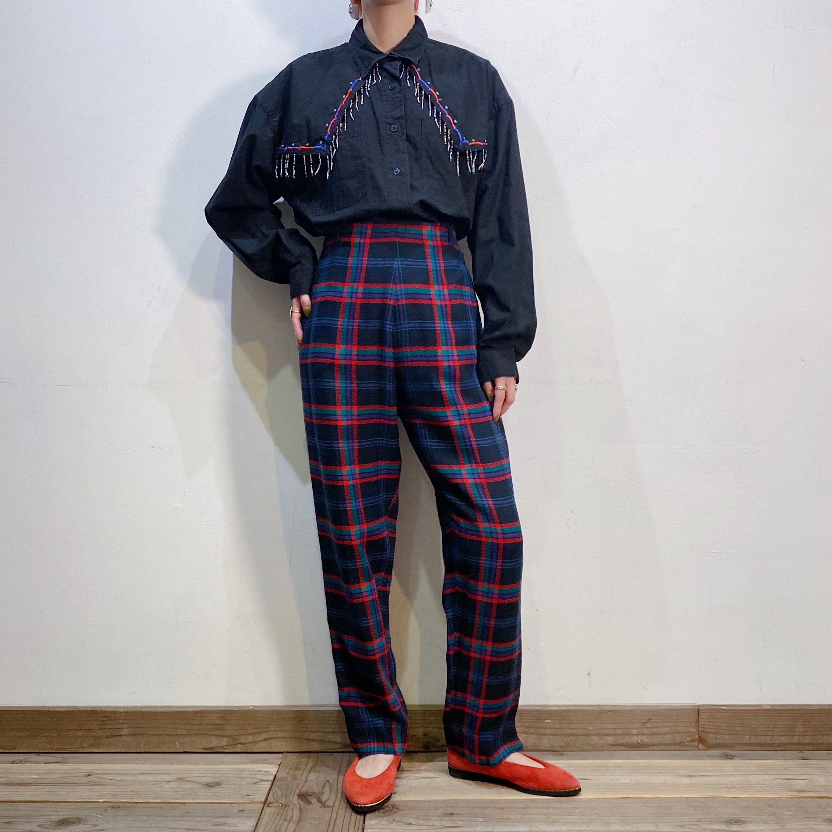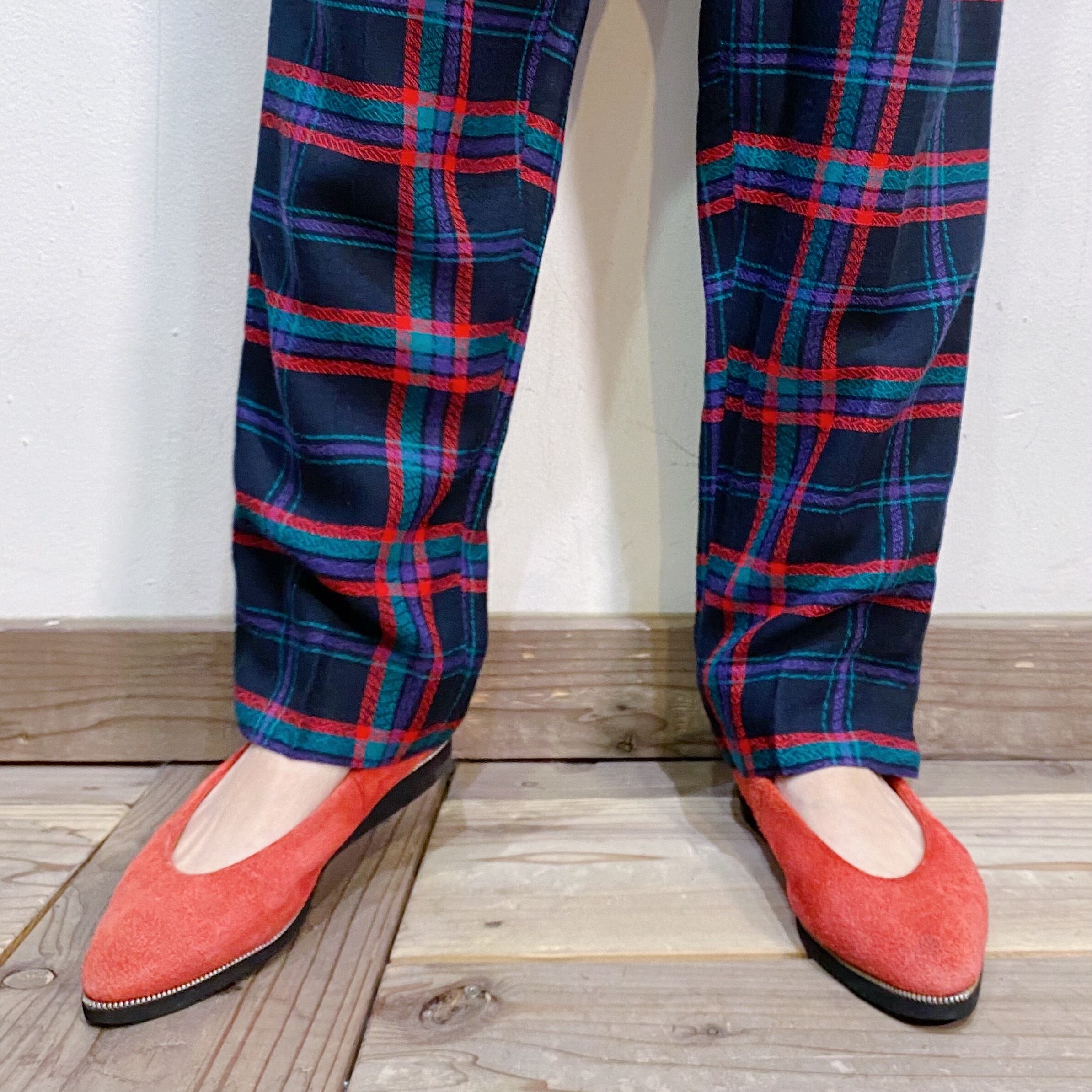 レッド・パープル・グリーンカラーのチェック柄が可愛い、50年代のパンツです。