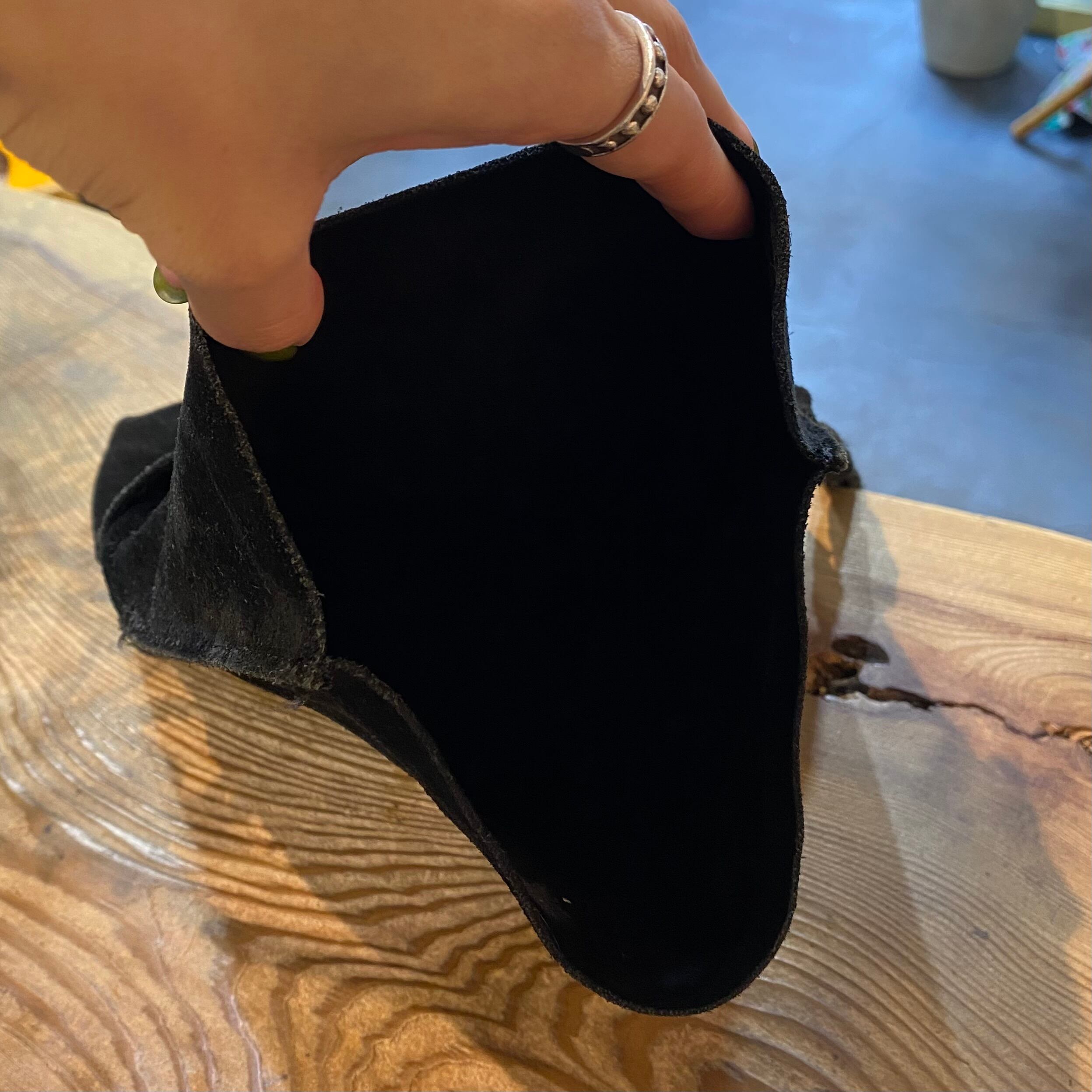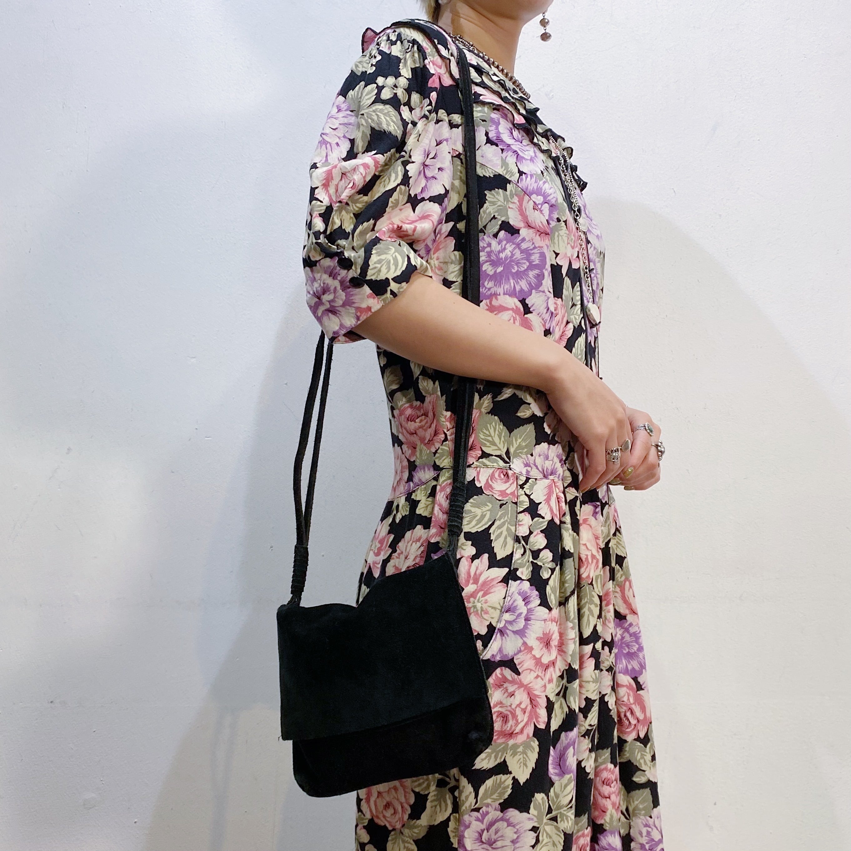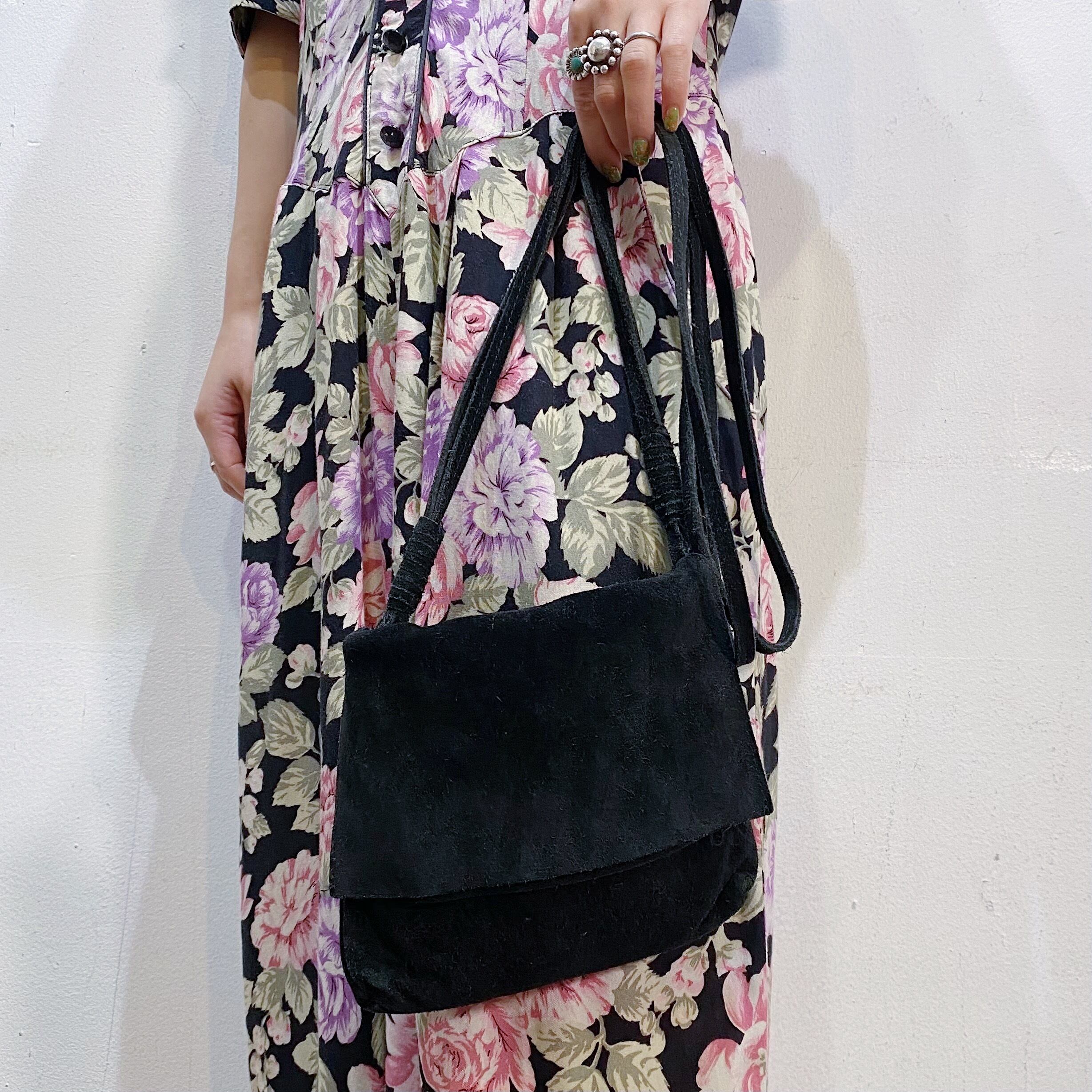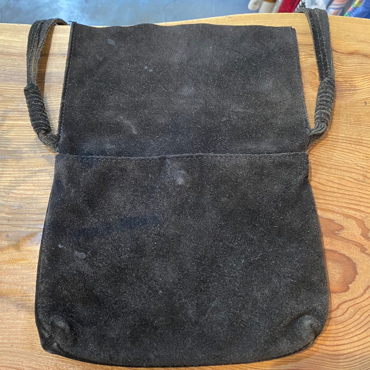 ブラックカラーでコーディネートに取り入れやすい、スエードのポシェットです。