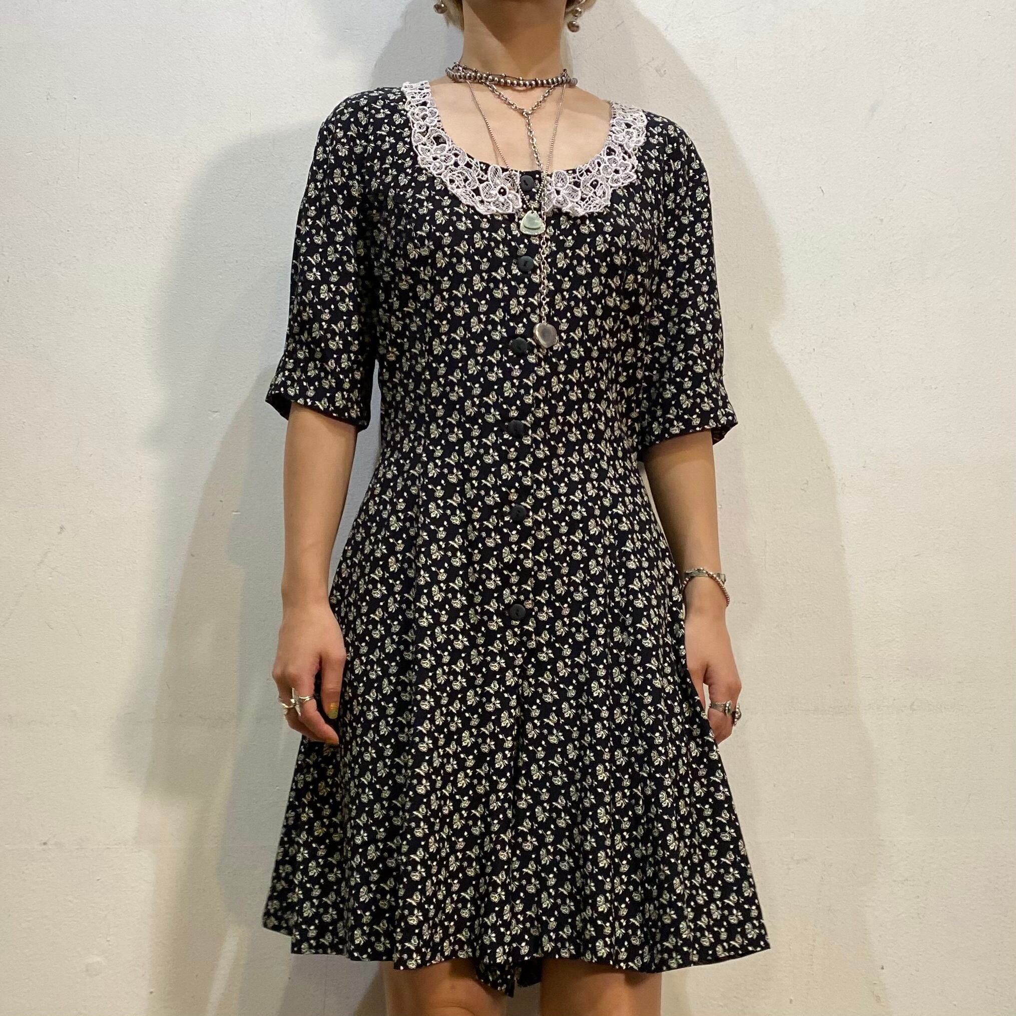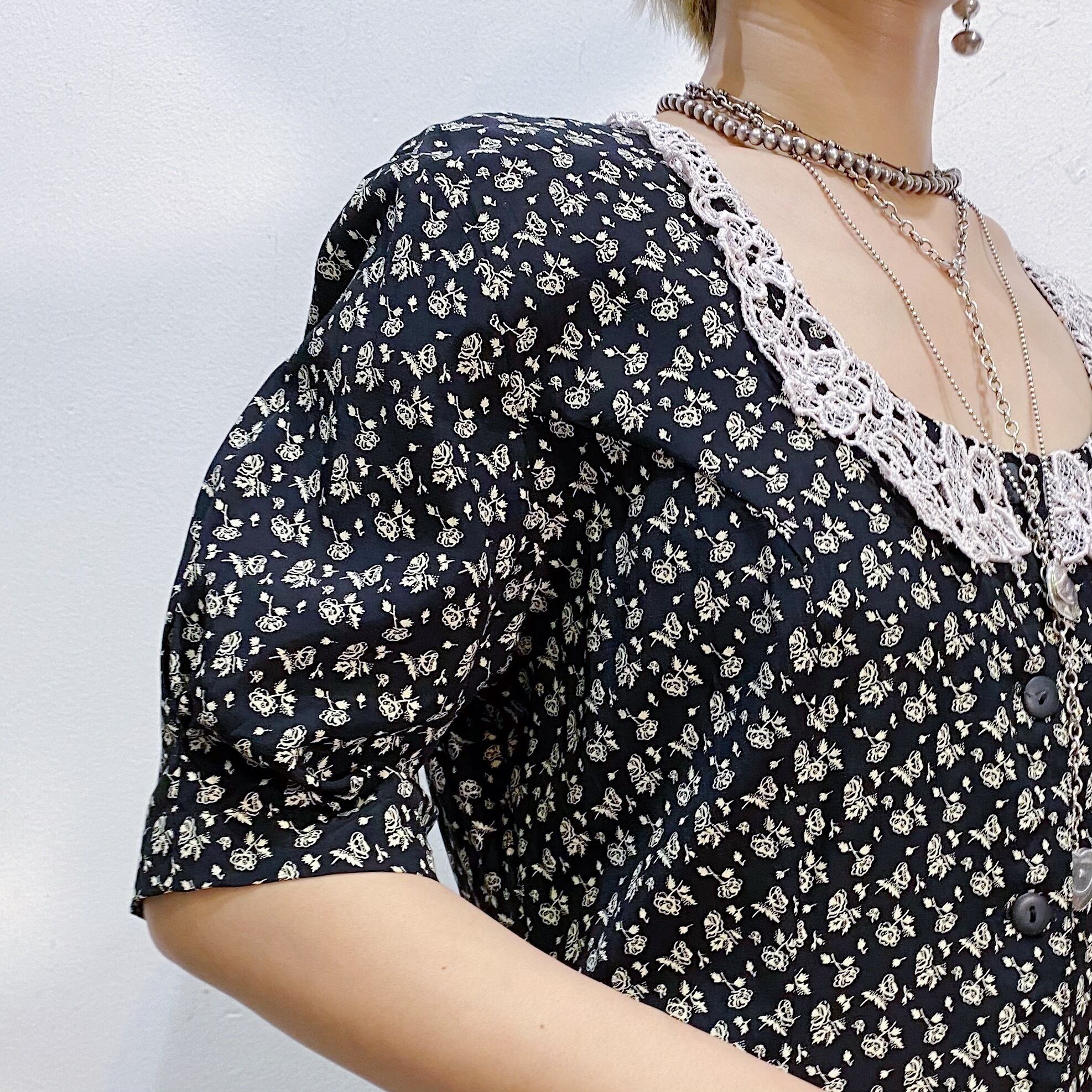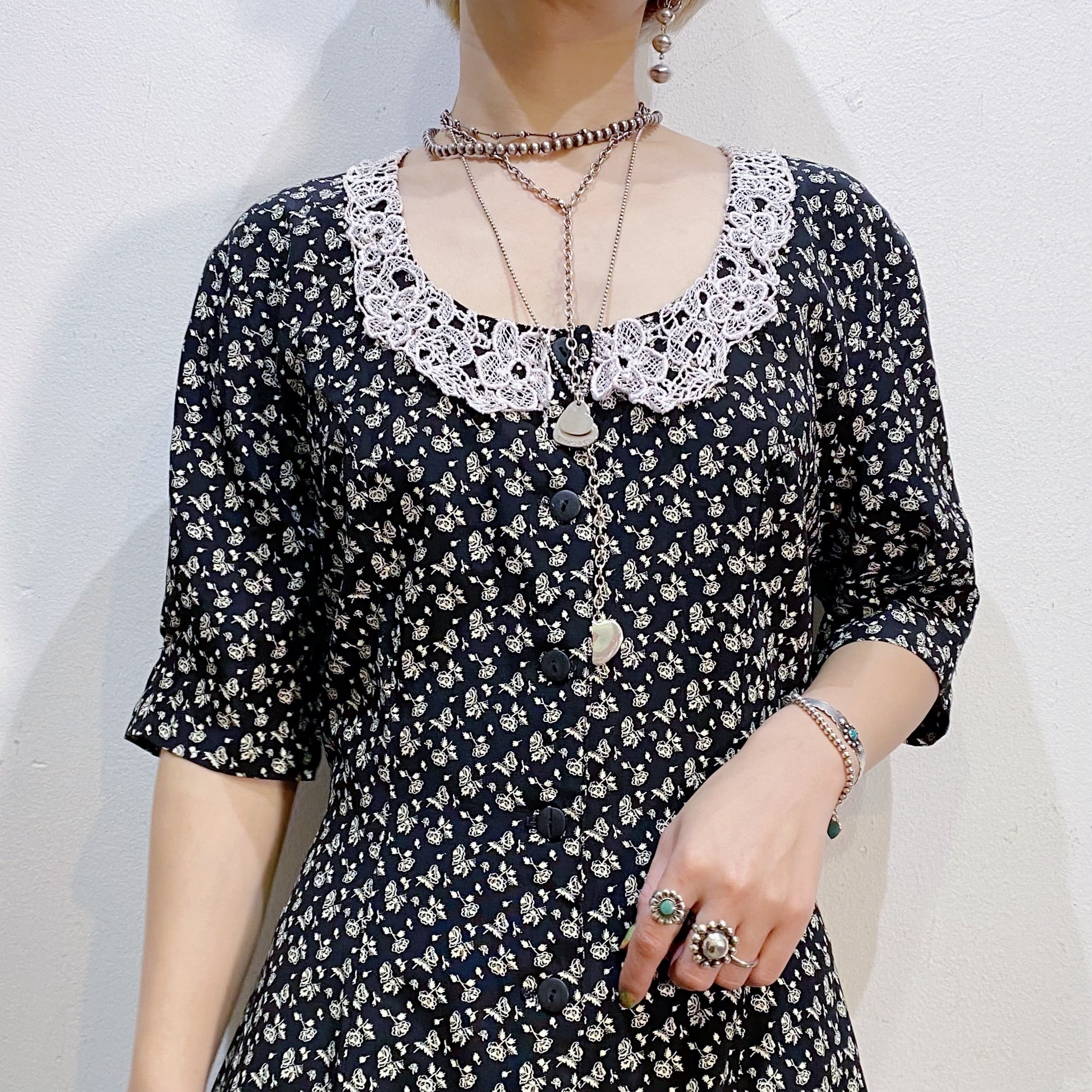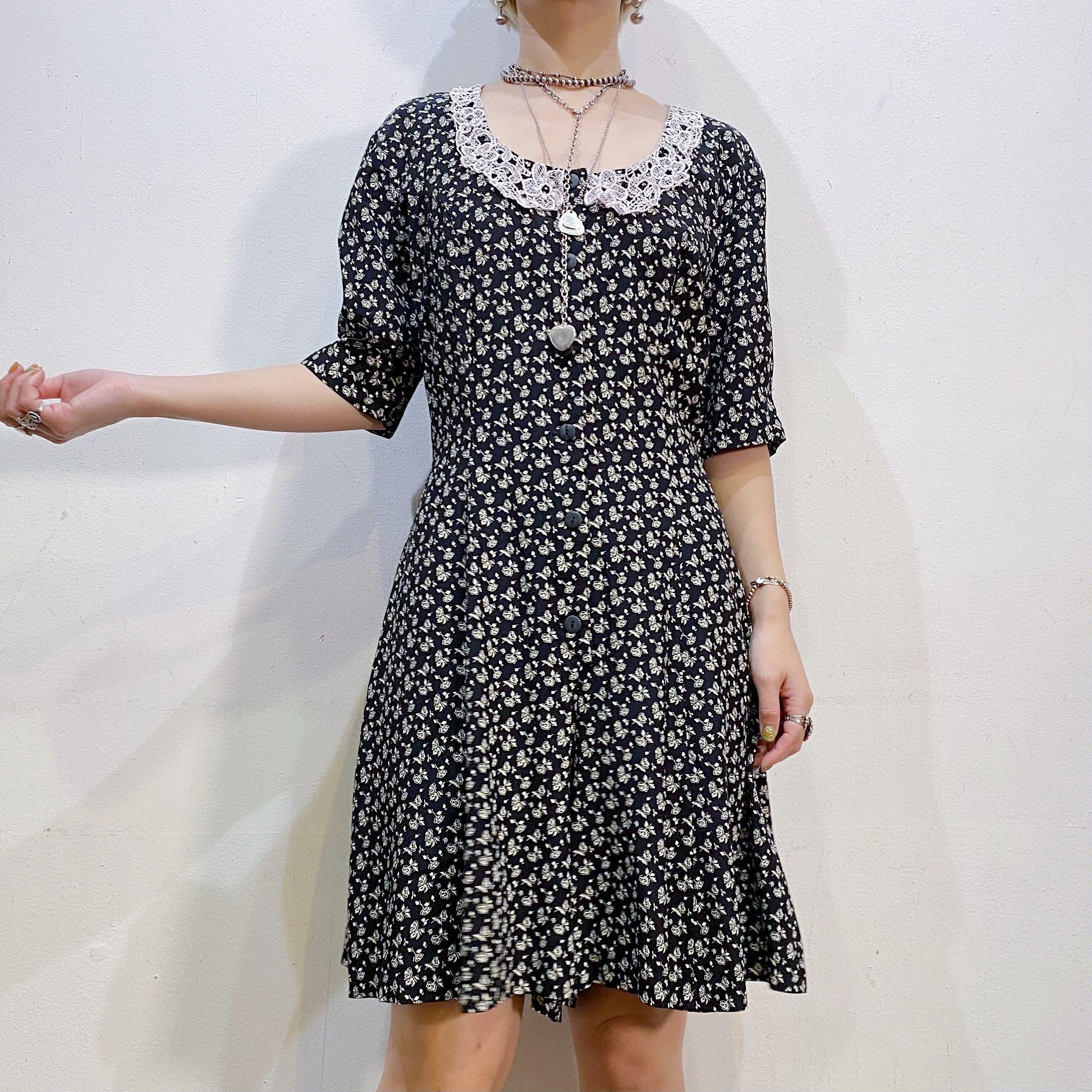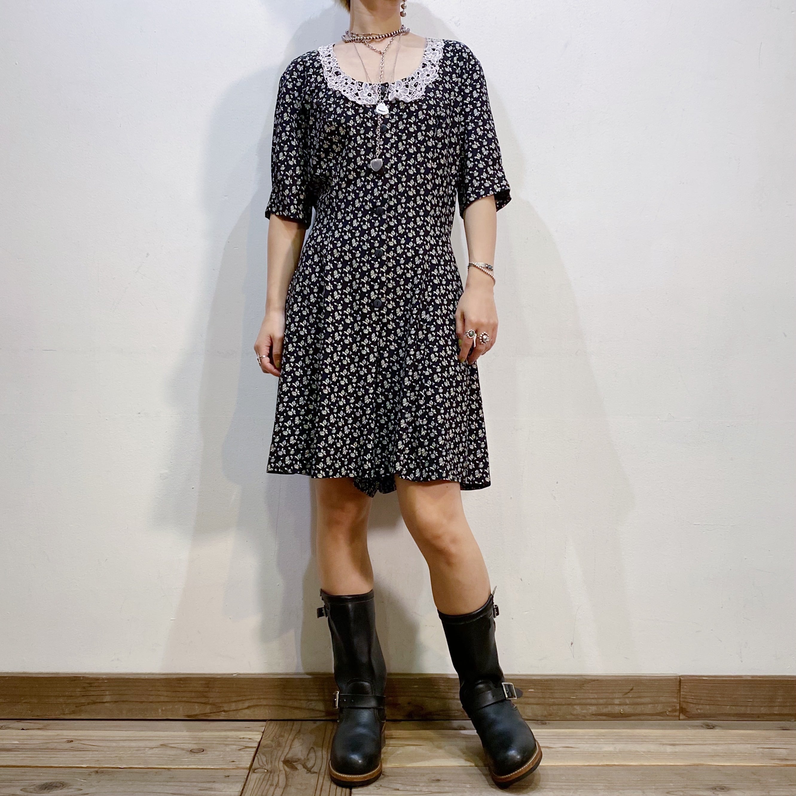 モノトーンカラーの小花柄が可愛い、80年代のジャンプスーツです。