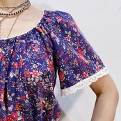 ボタニカルな花柄はネイビーにワインレッドの落ち着いた色合いで着こなしやすいですよ。