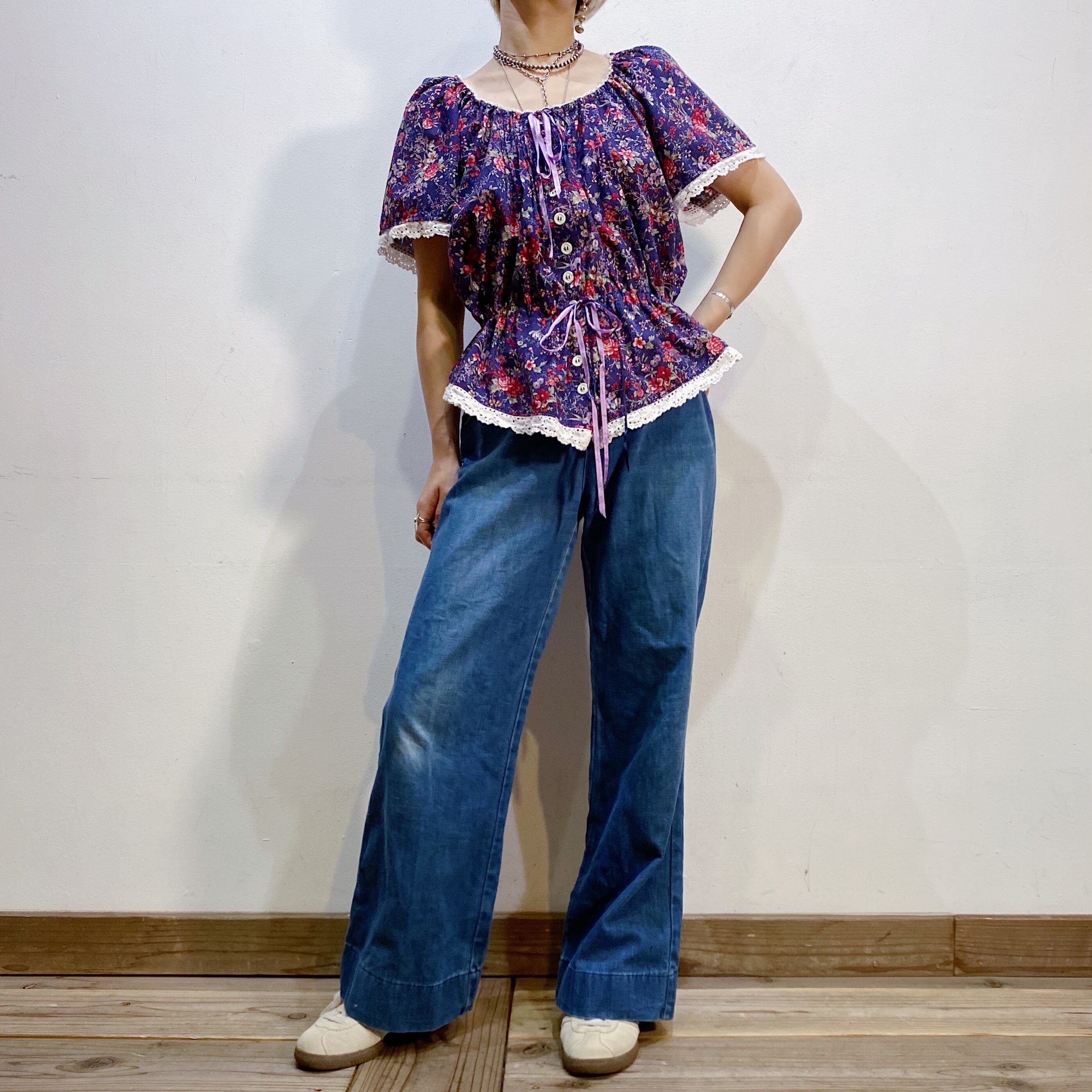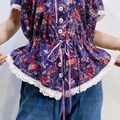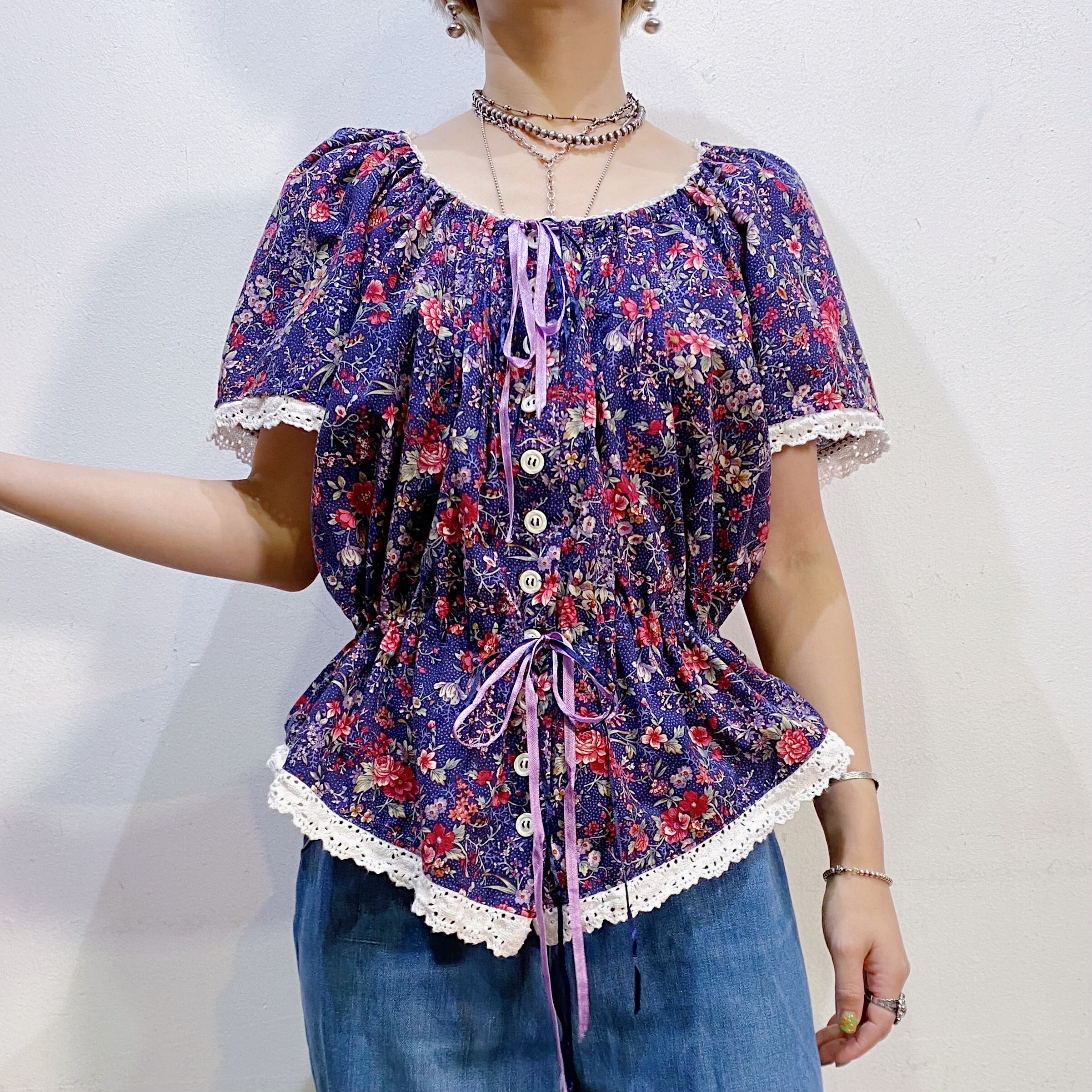 リボンやレースの装飾に、フォルムがとても可愛い80年代頃のトップスです。