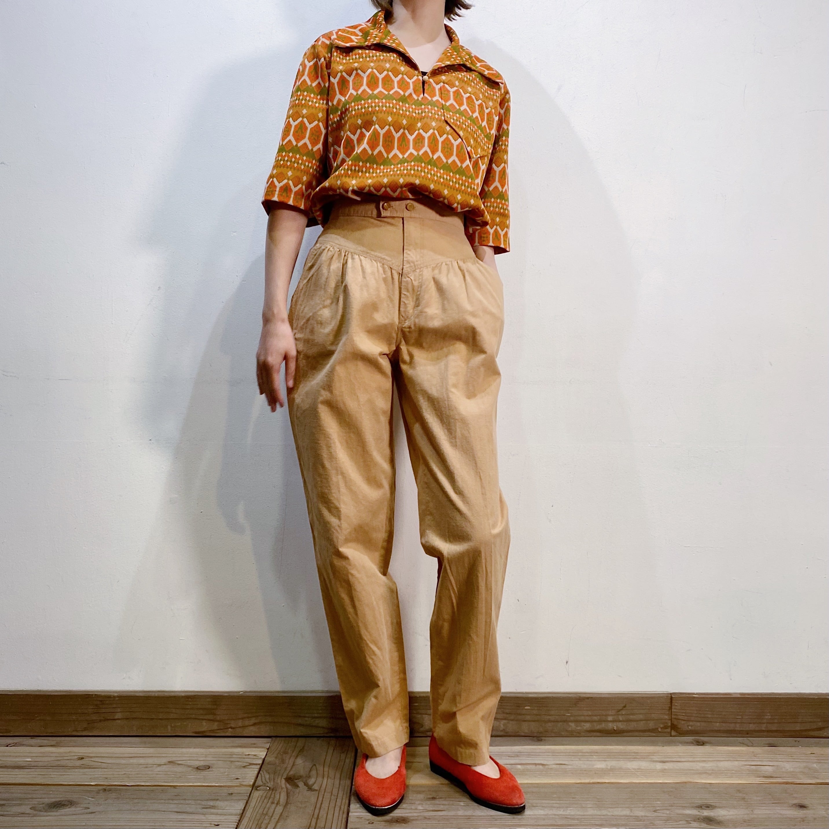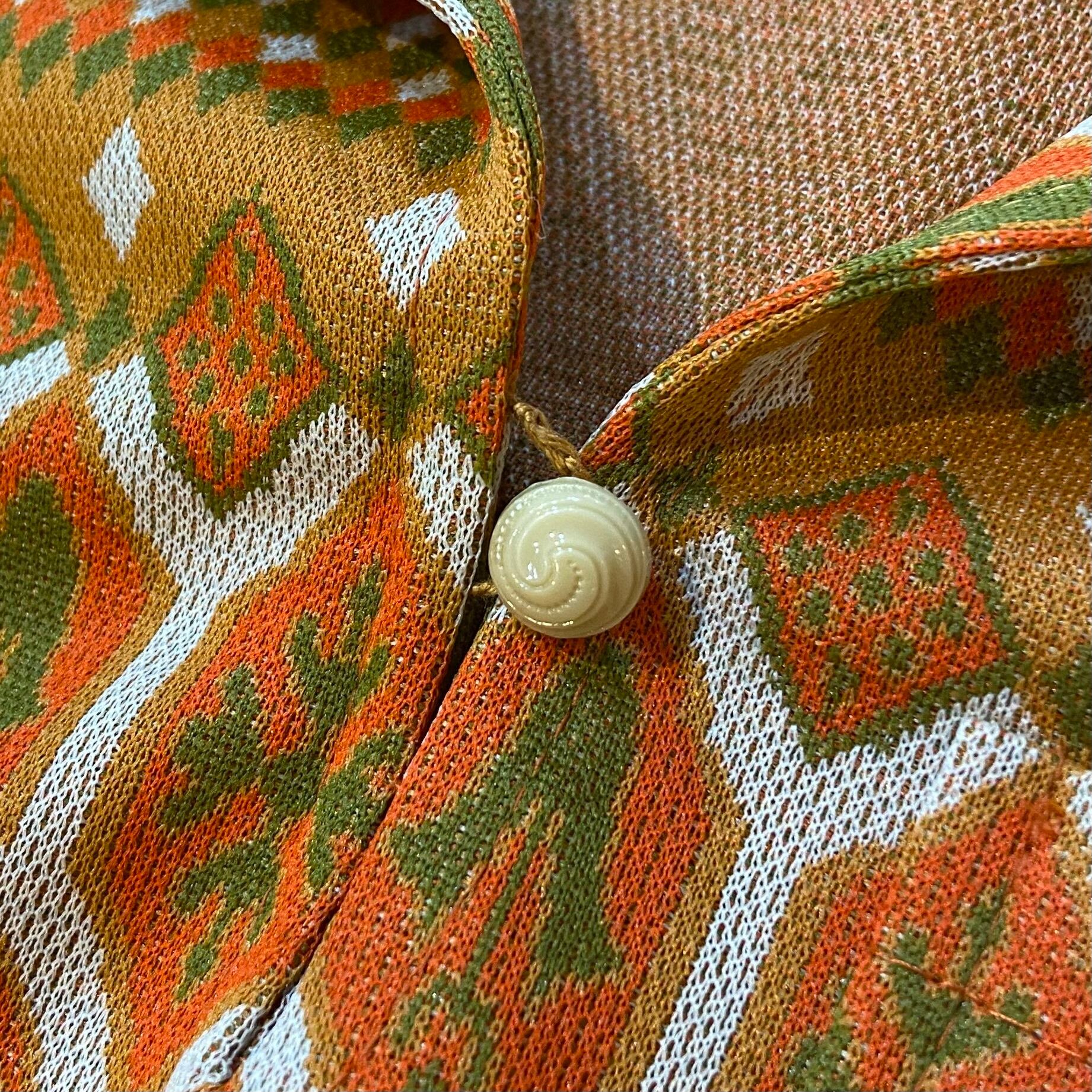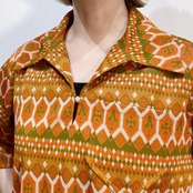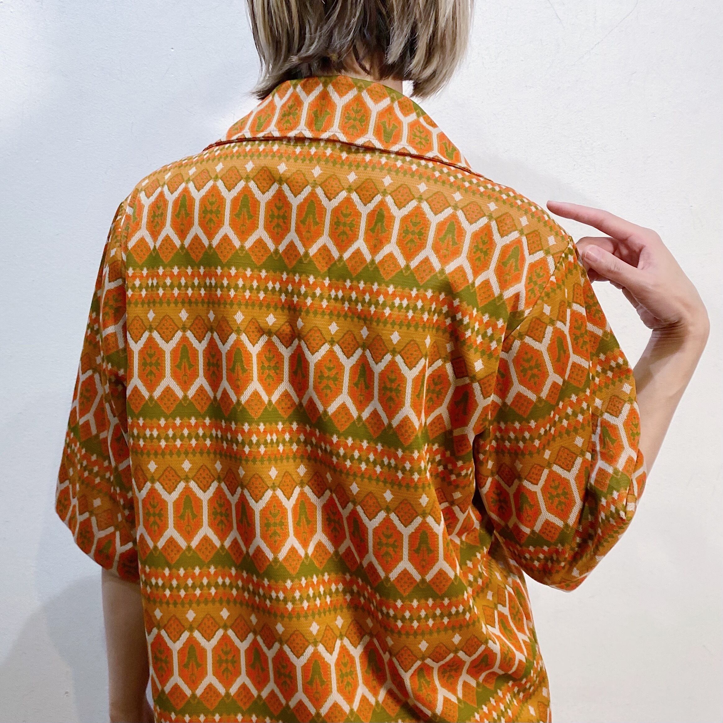 海外の壁紙や絨毯のようなテキスタイルが素敵な、70年代のトップスです。