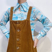 傘を差したドレス姿の女性のプリントが可愛い、70年代の長袖シャツです。