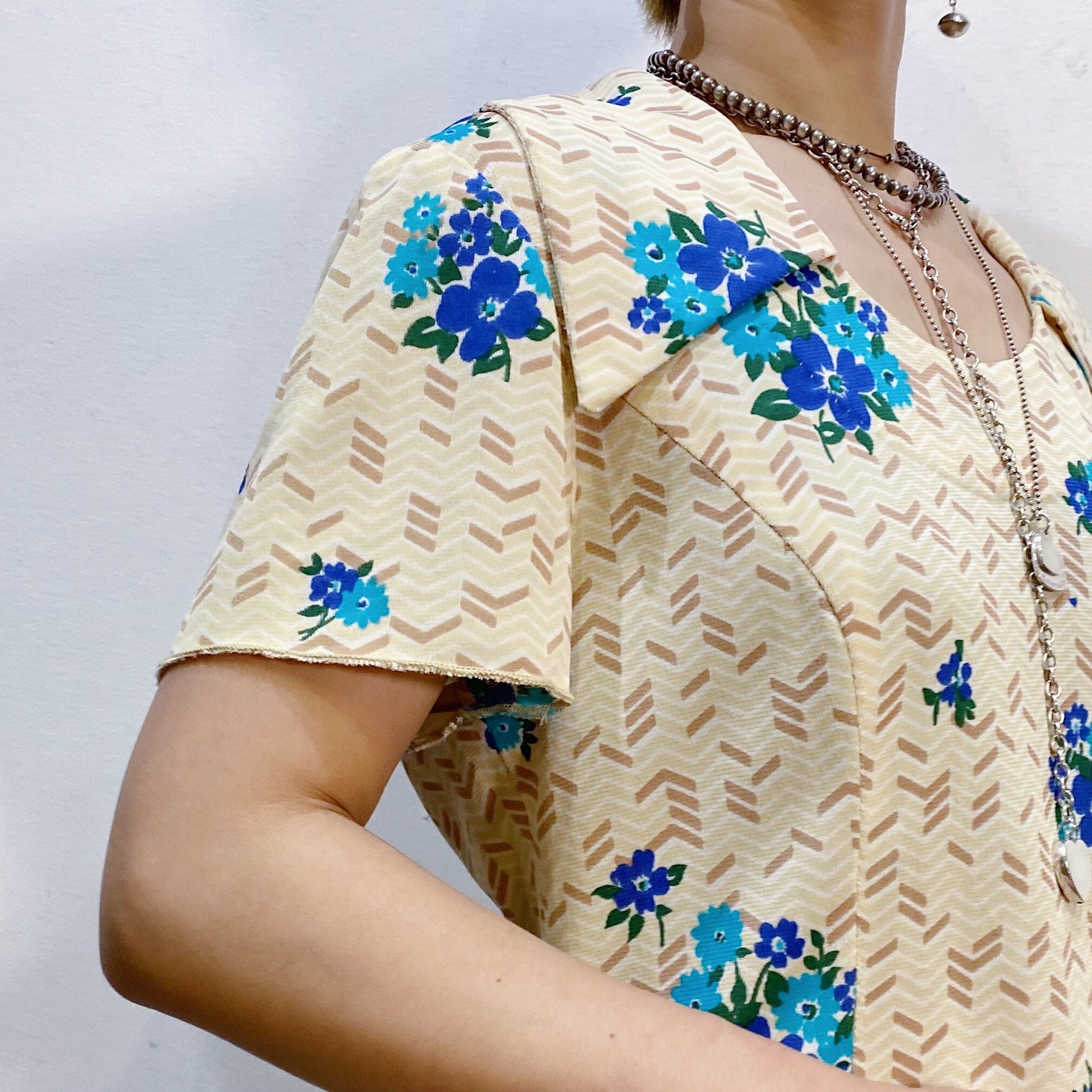 レトロチックな花柄が可愛い、60~70年代のミニワンピースです。