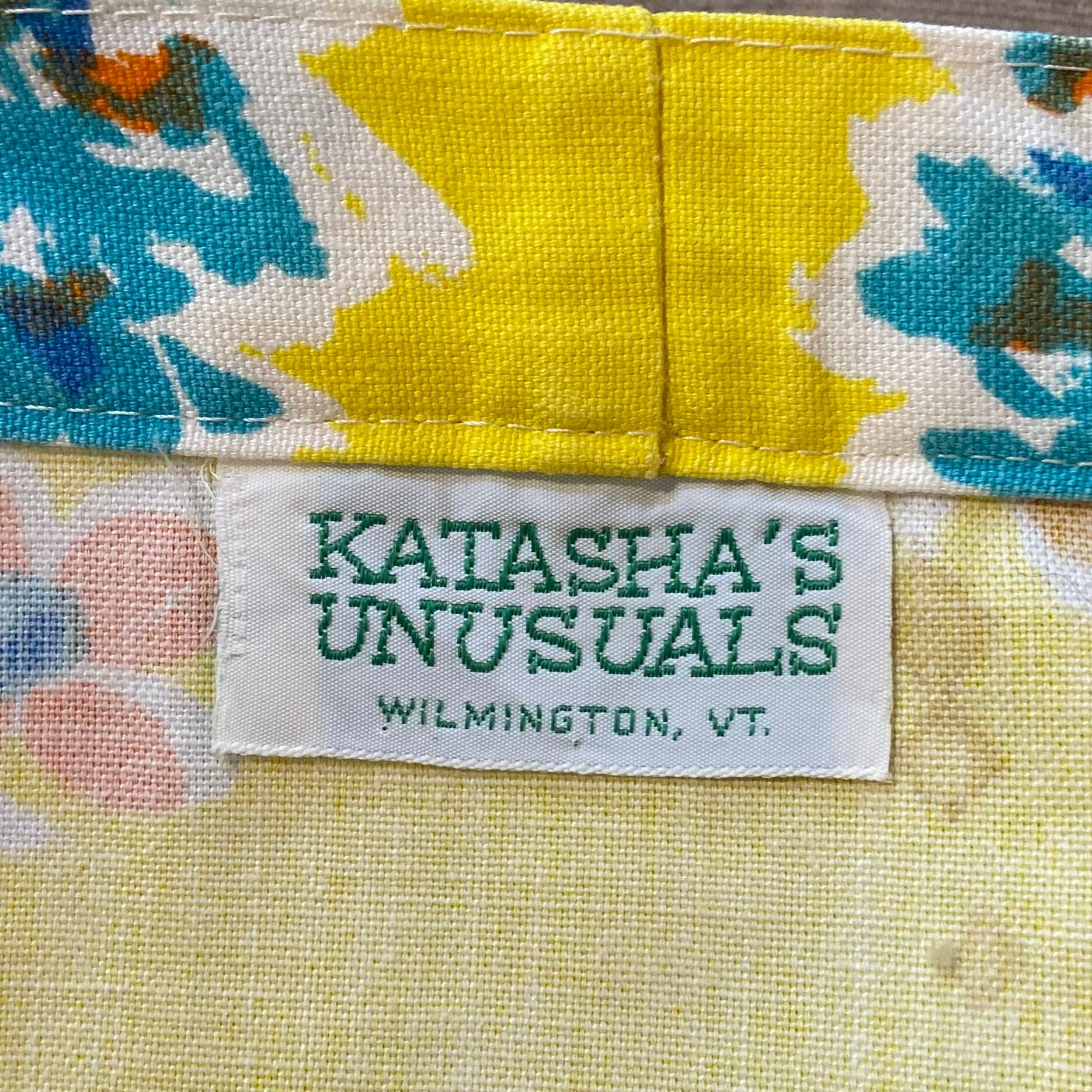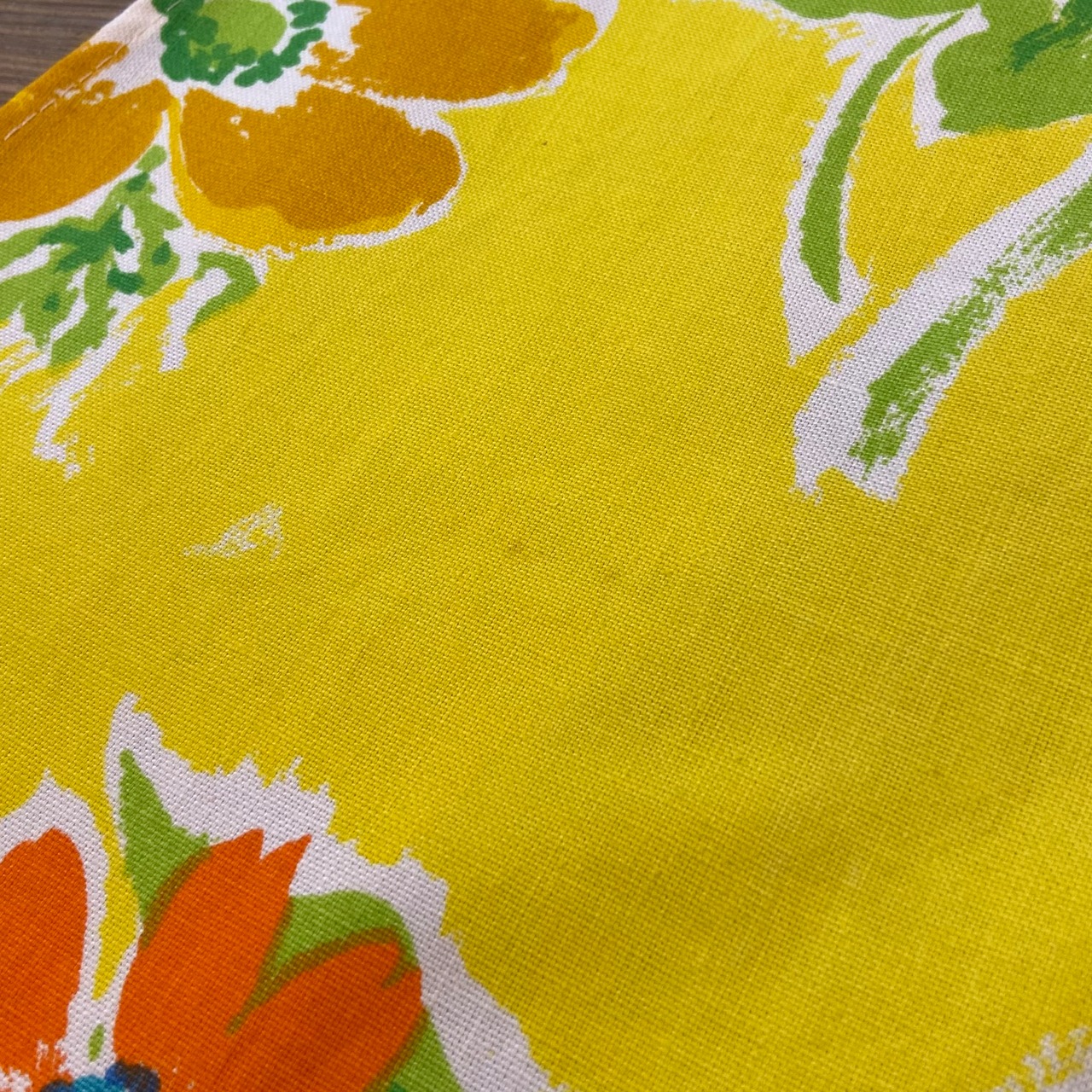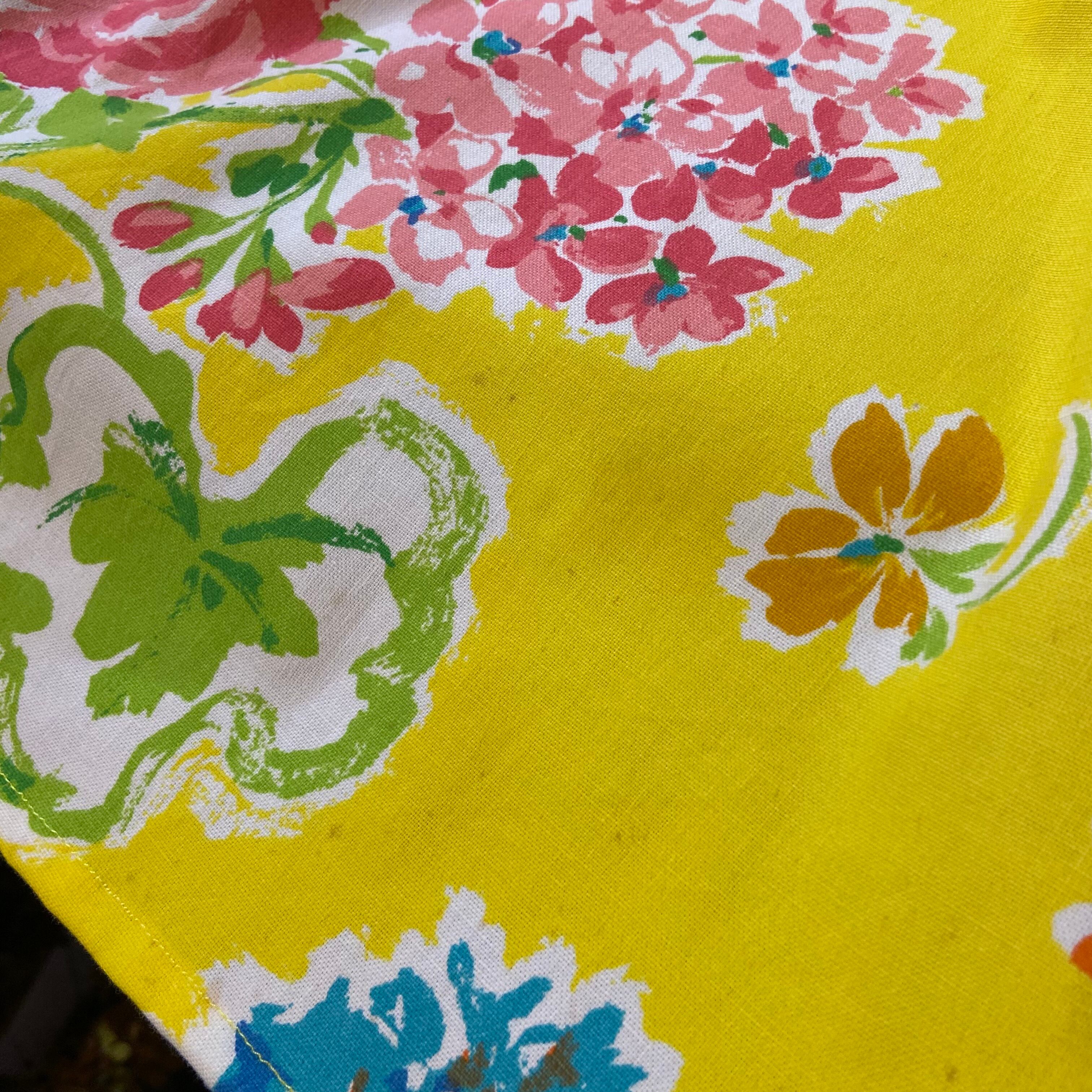 ハッピーなイエローベースに手書きタッチのカラフルなお花柄が可愛い、70年代のラップスカートです。