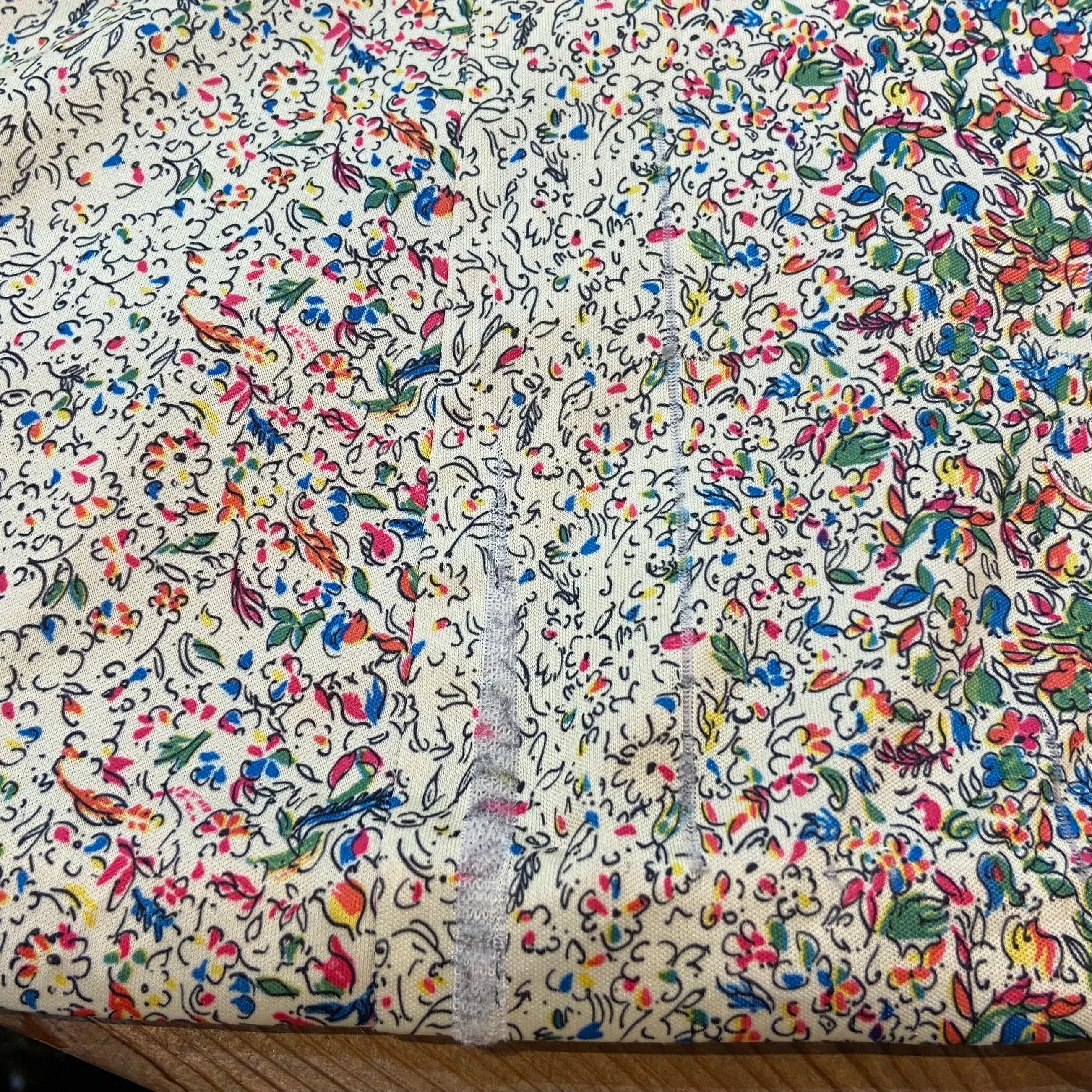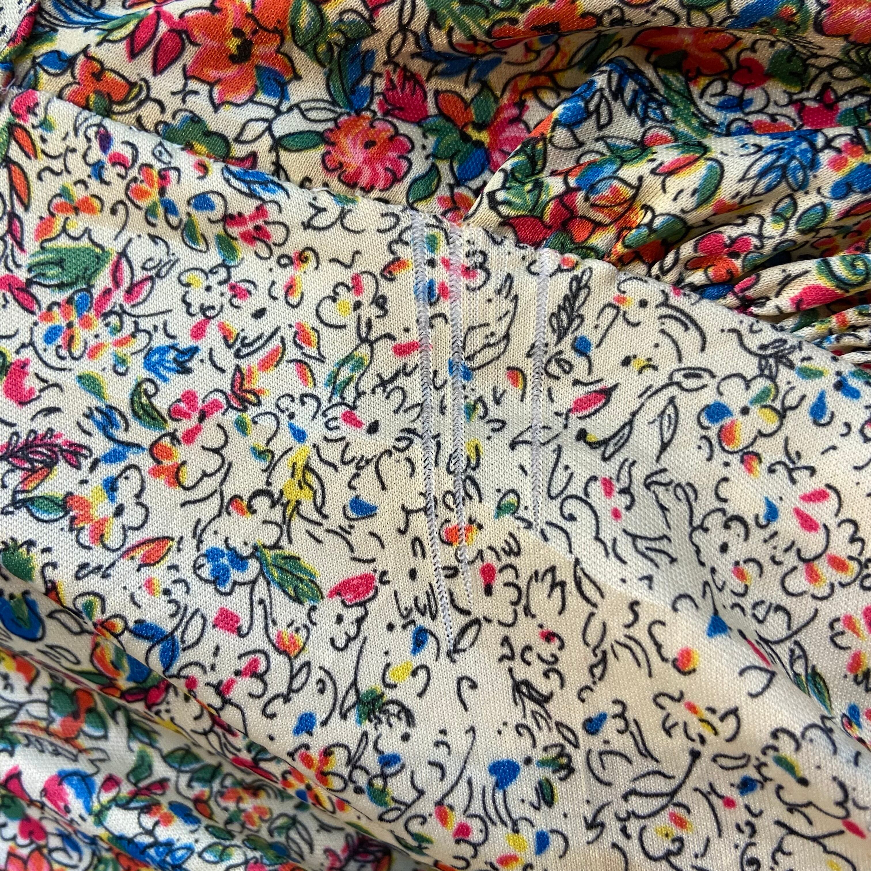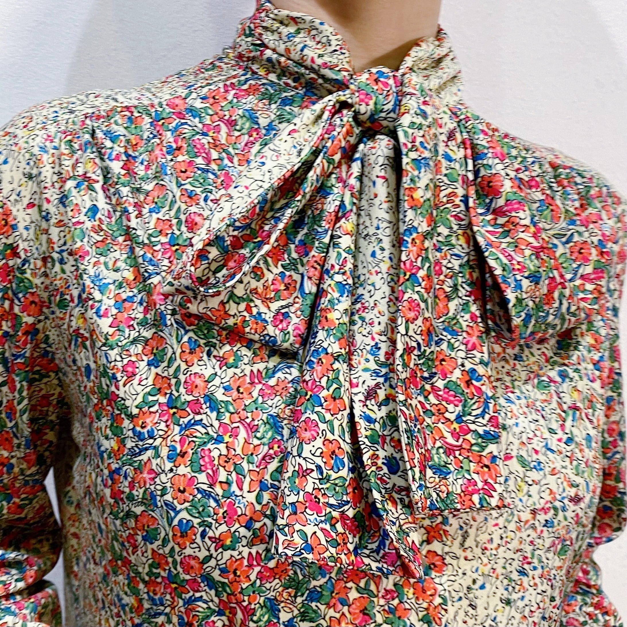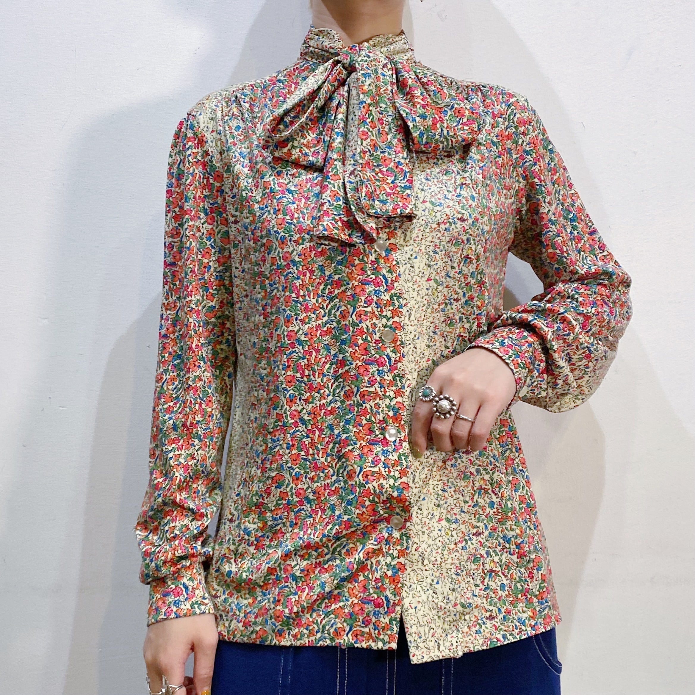 手書きタッチでレインボーカラーの小さな花柄が可愛い、70年代の長袖シャツです。