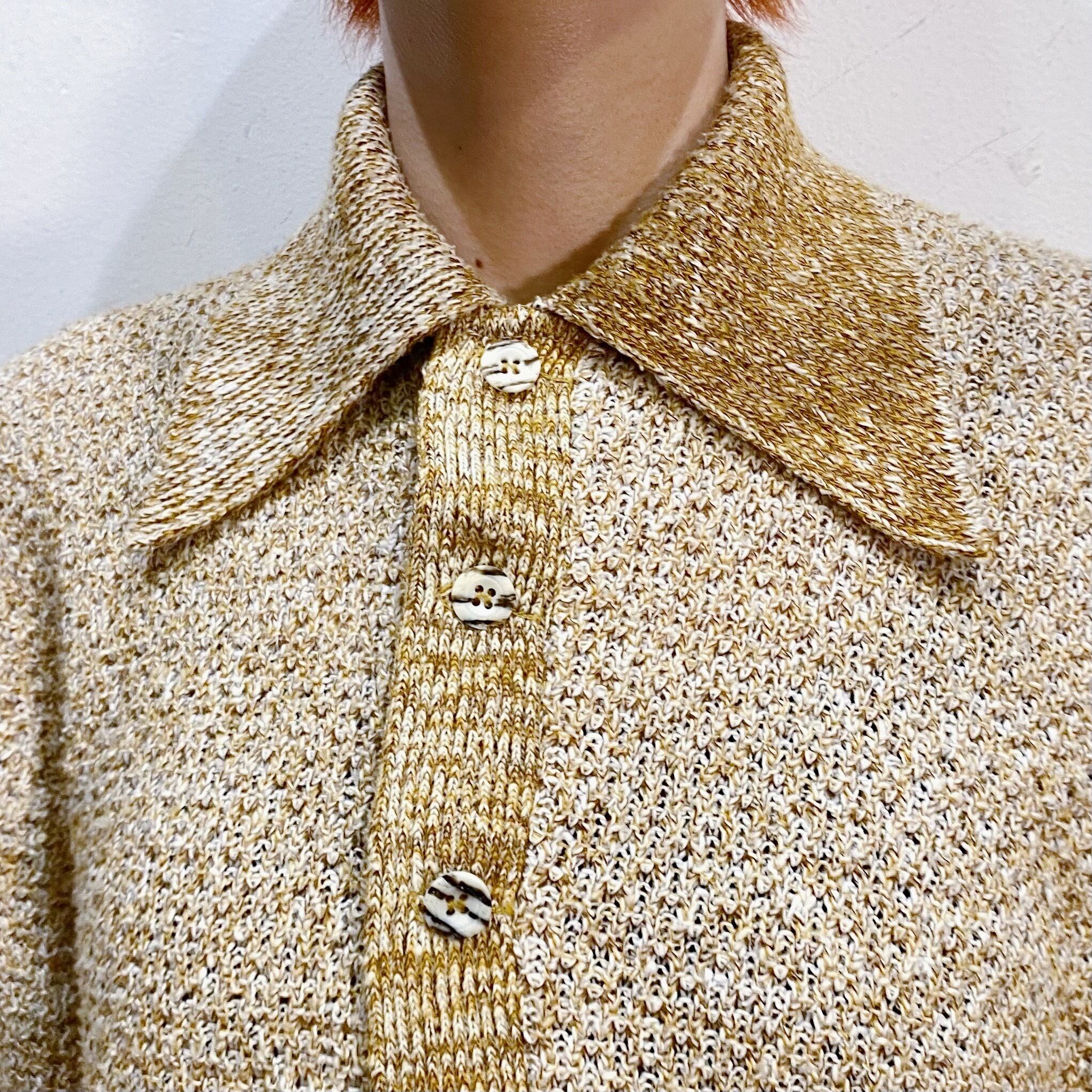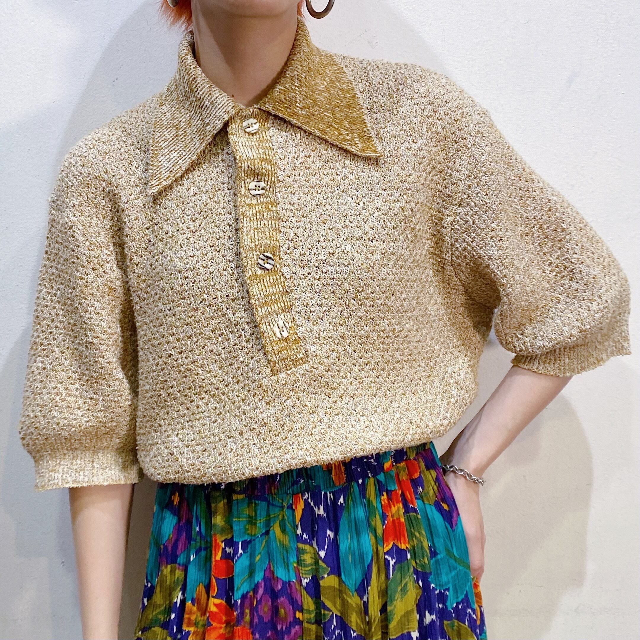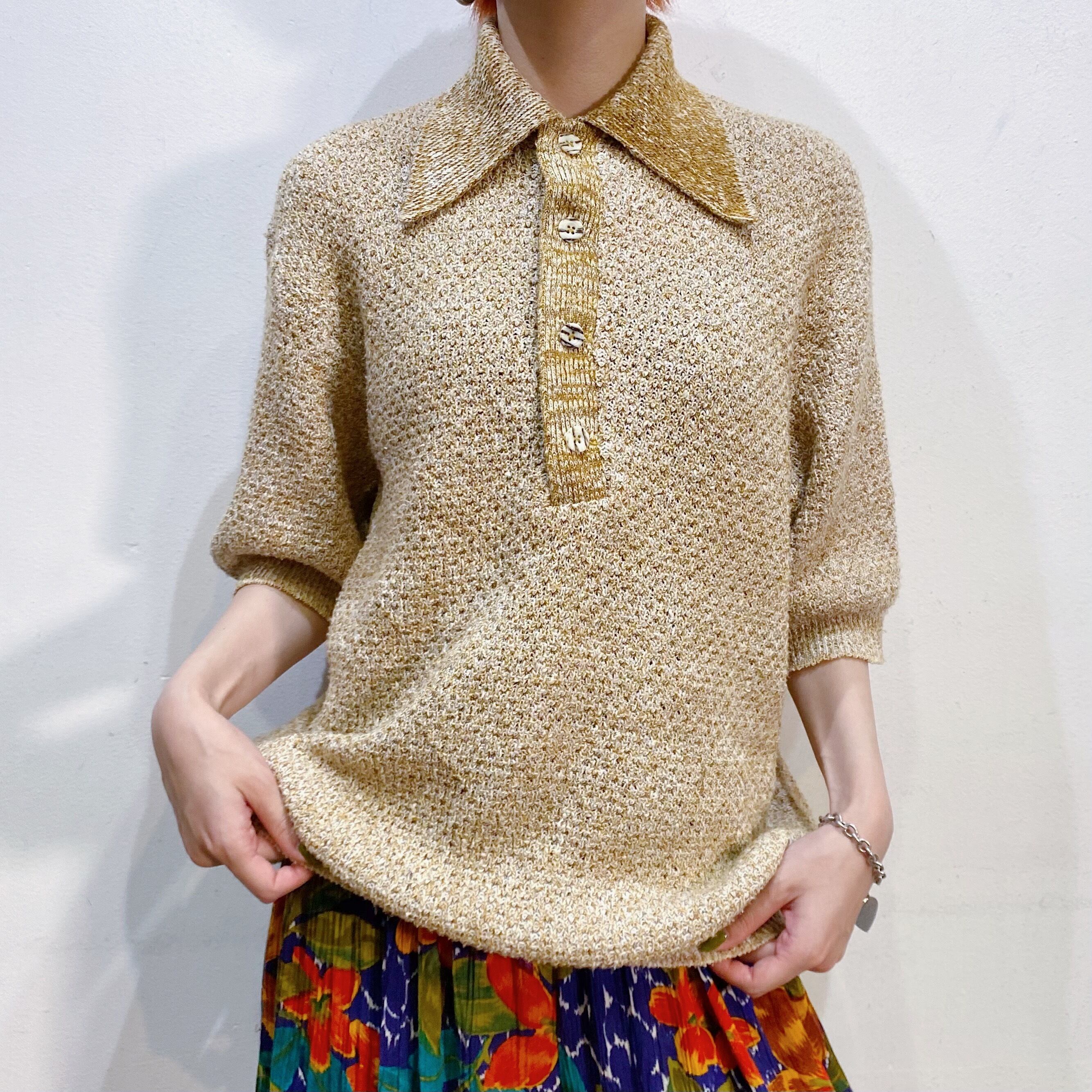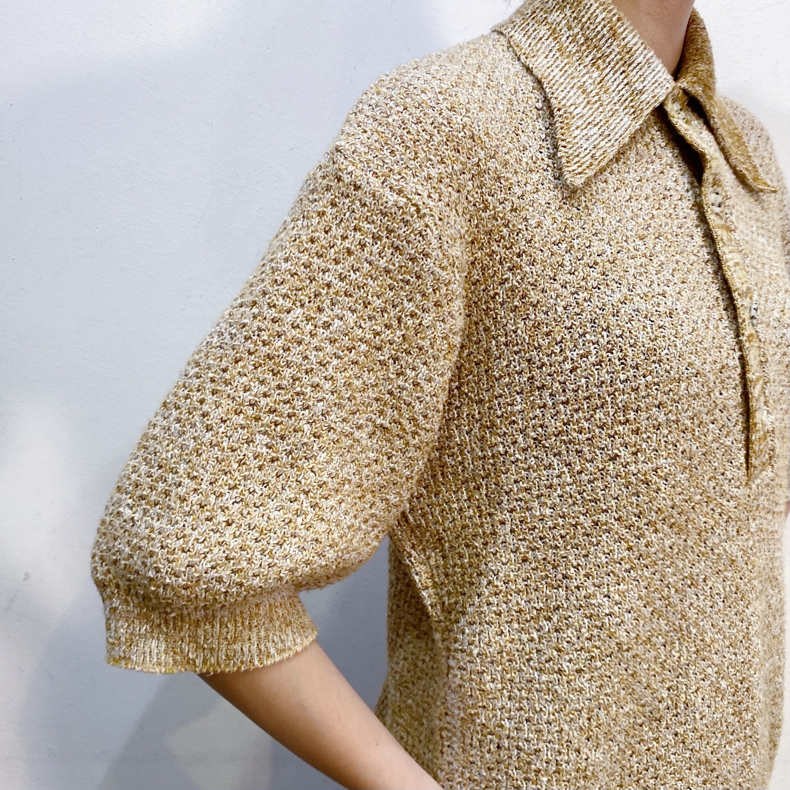 黄土色と白のミックスカラーで着こなしやすそうな60年代の半袖ニットです。