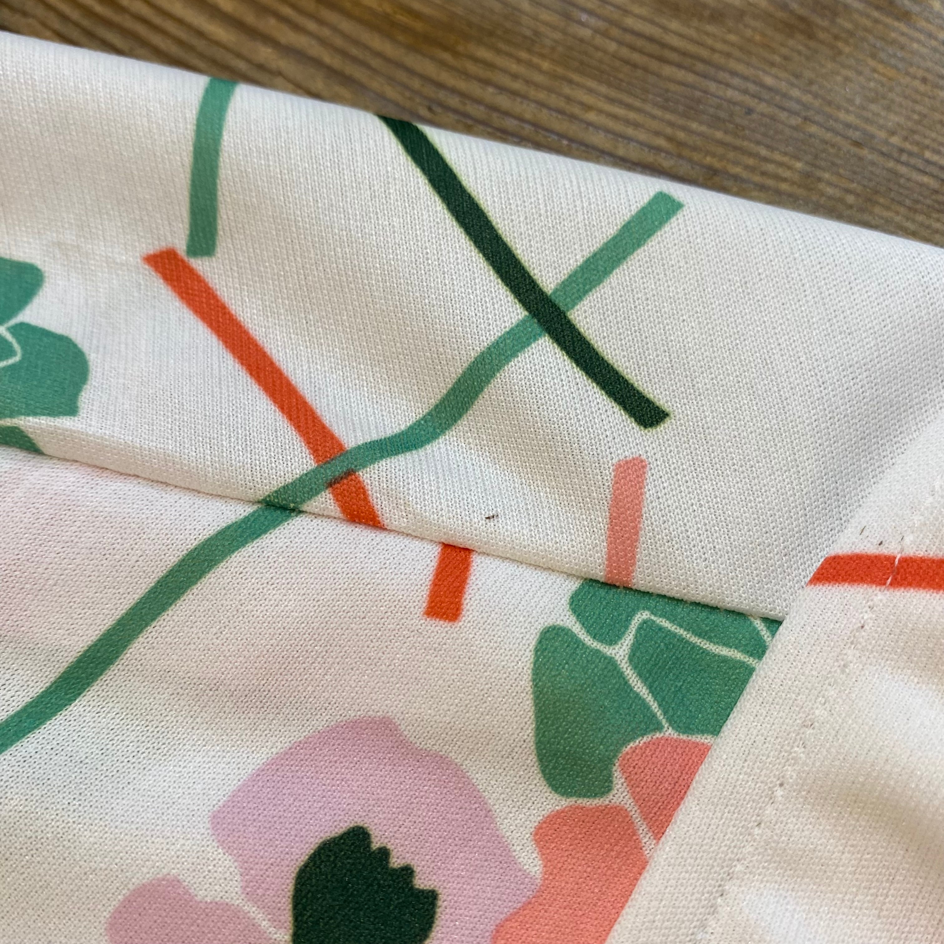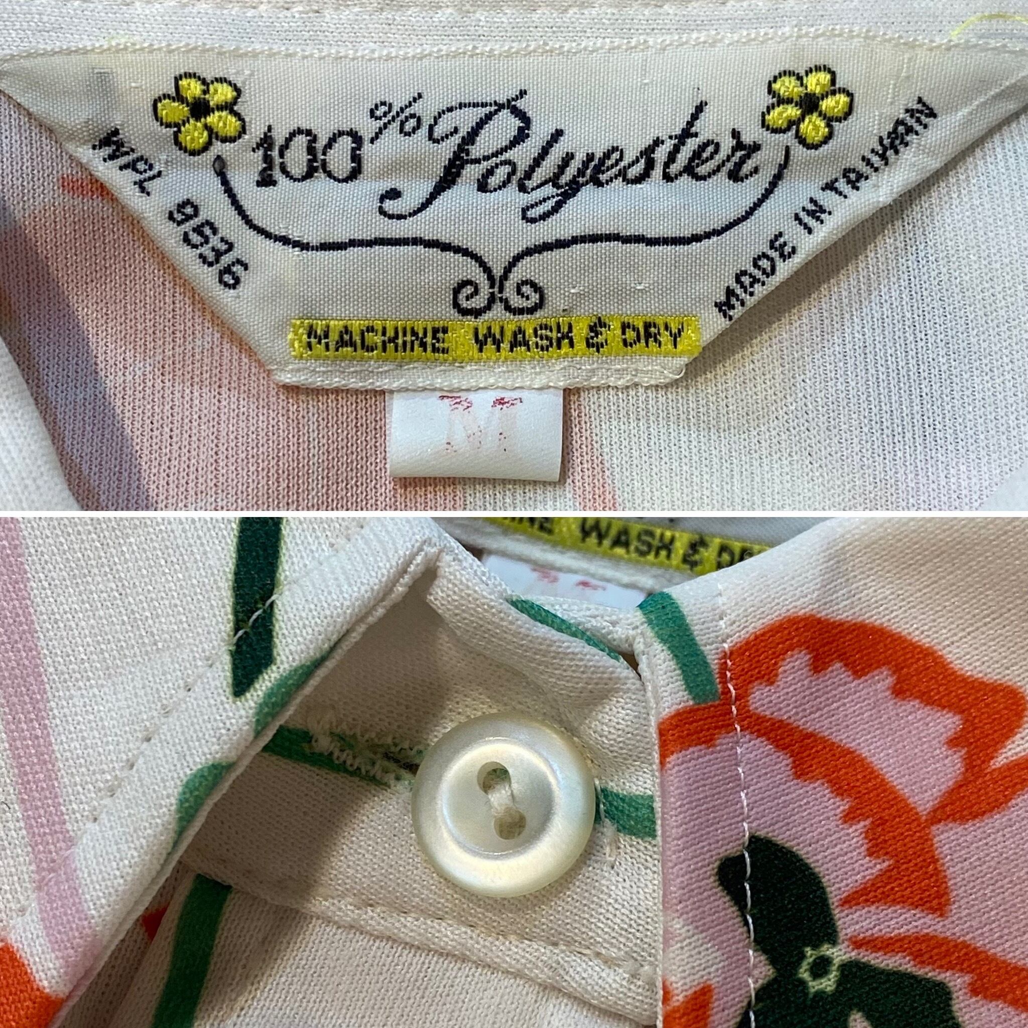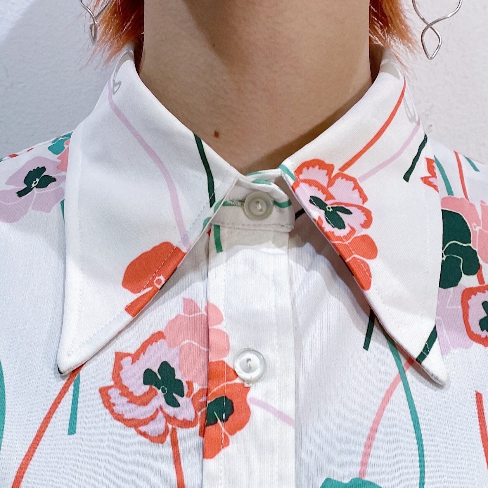 グリーンやピンクのお花の総柄が可愛い、70年代の長袖シャツです。