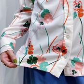 柄物ですがホワイトベースで意外と着こなしやすい一枚。