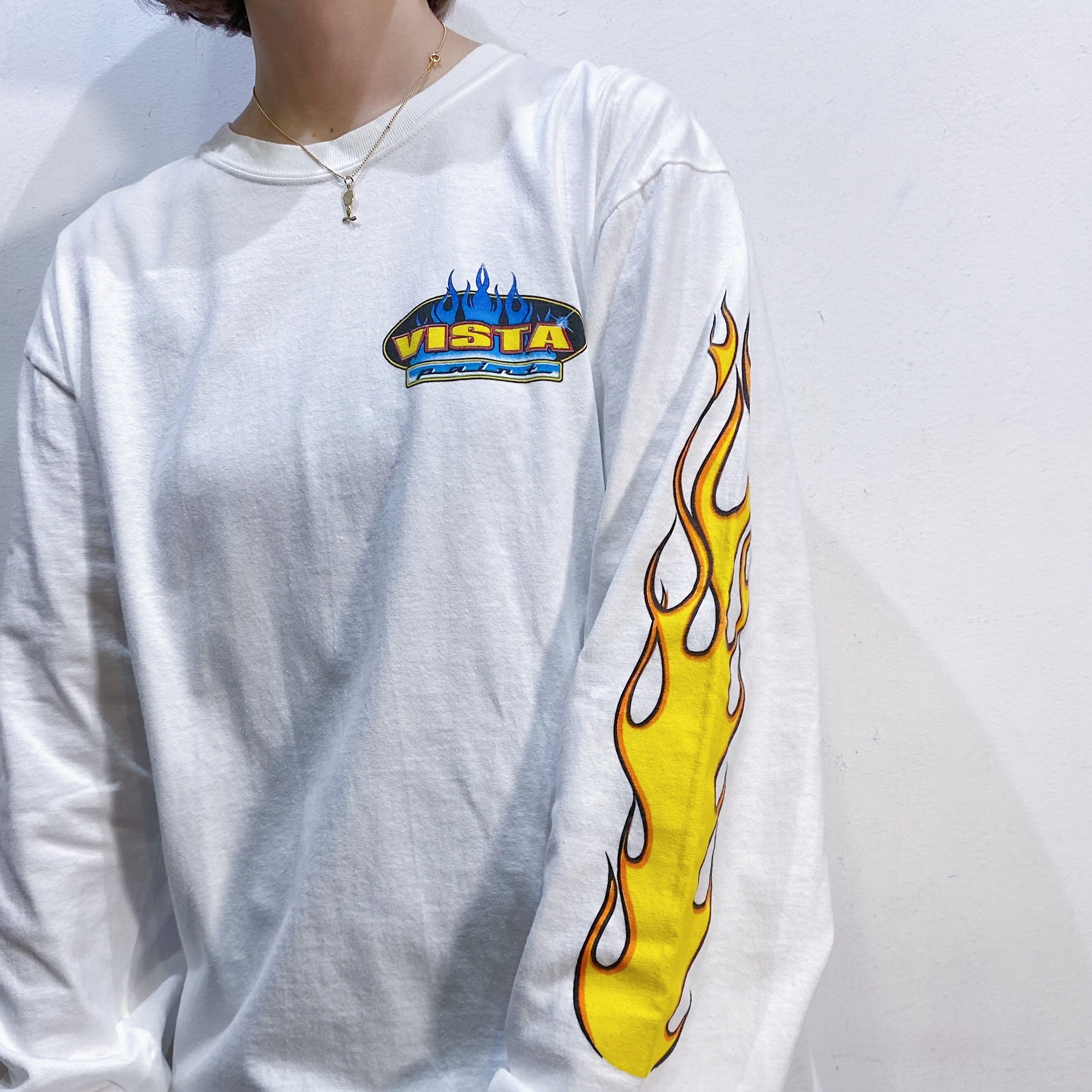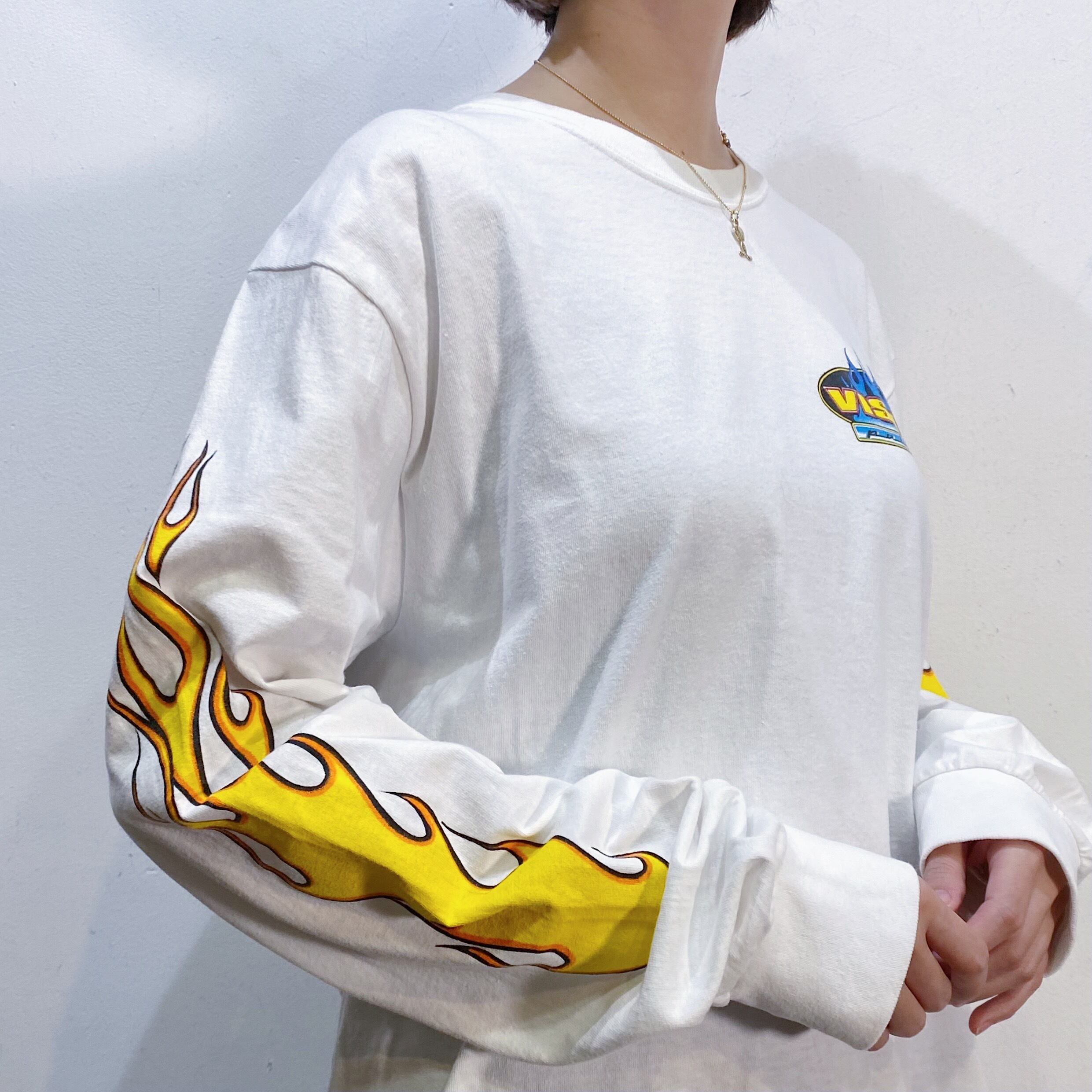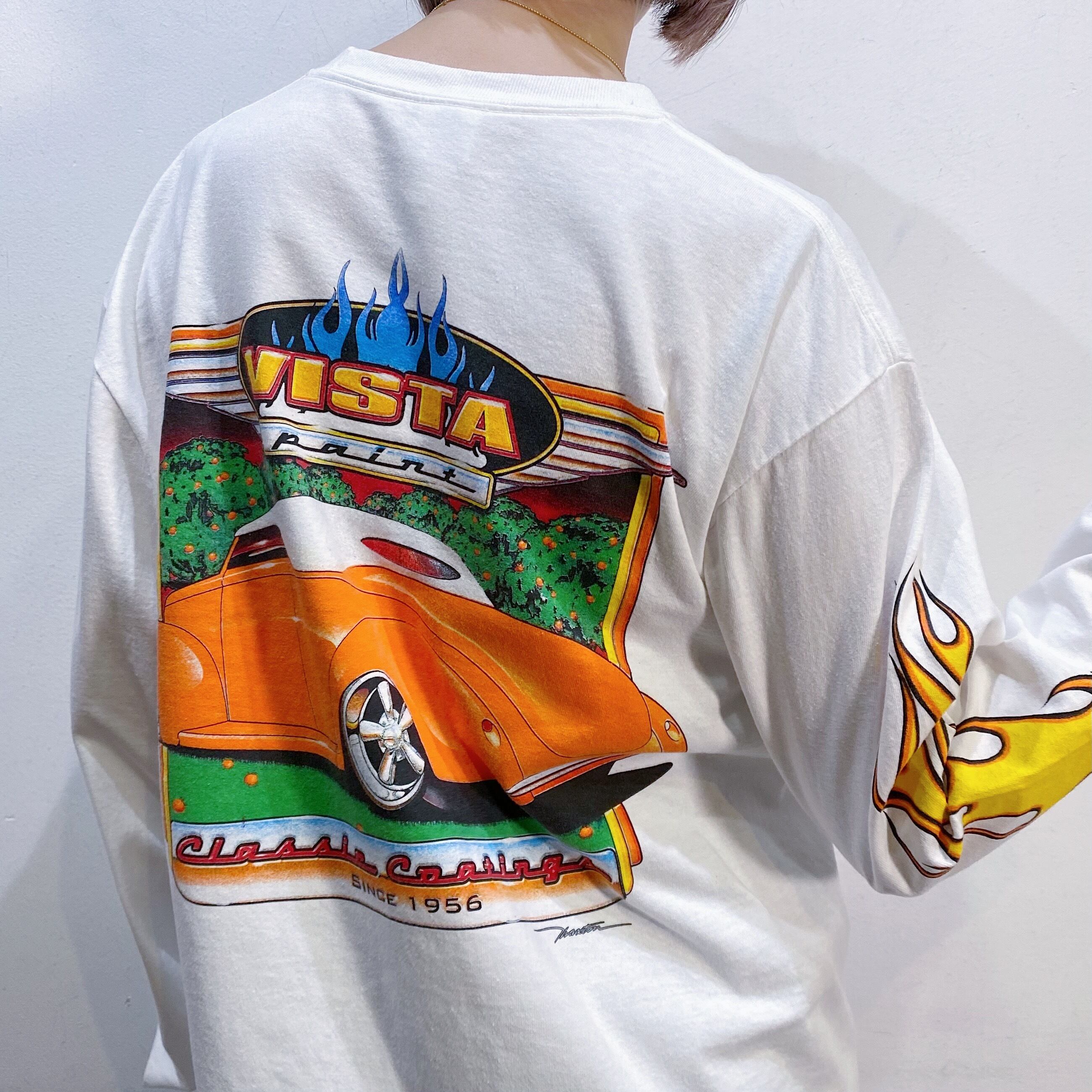 バックにプリントされたオレンジの車が可愛い、ロンTです。