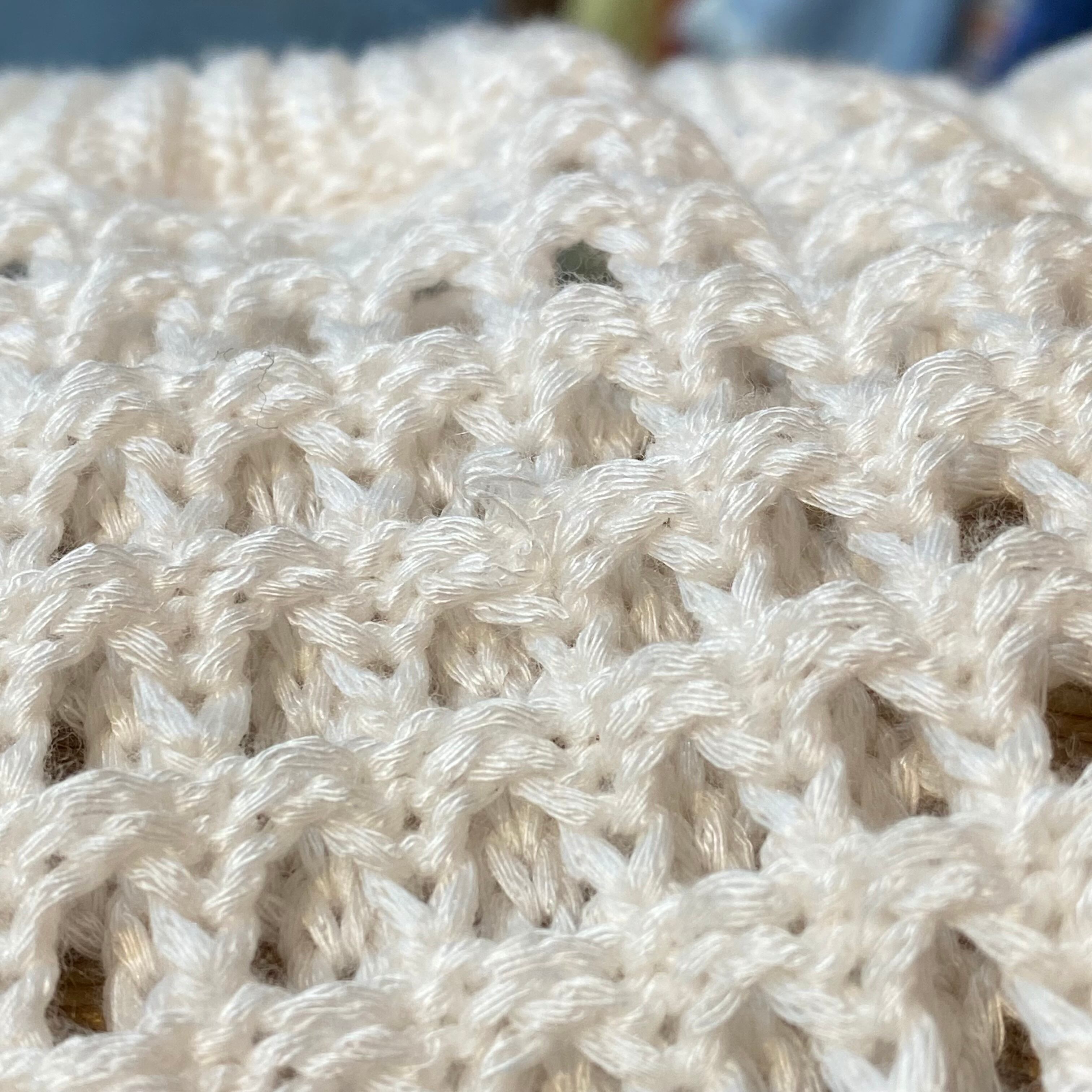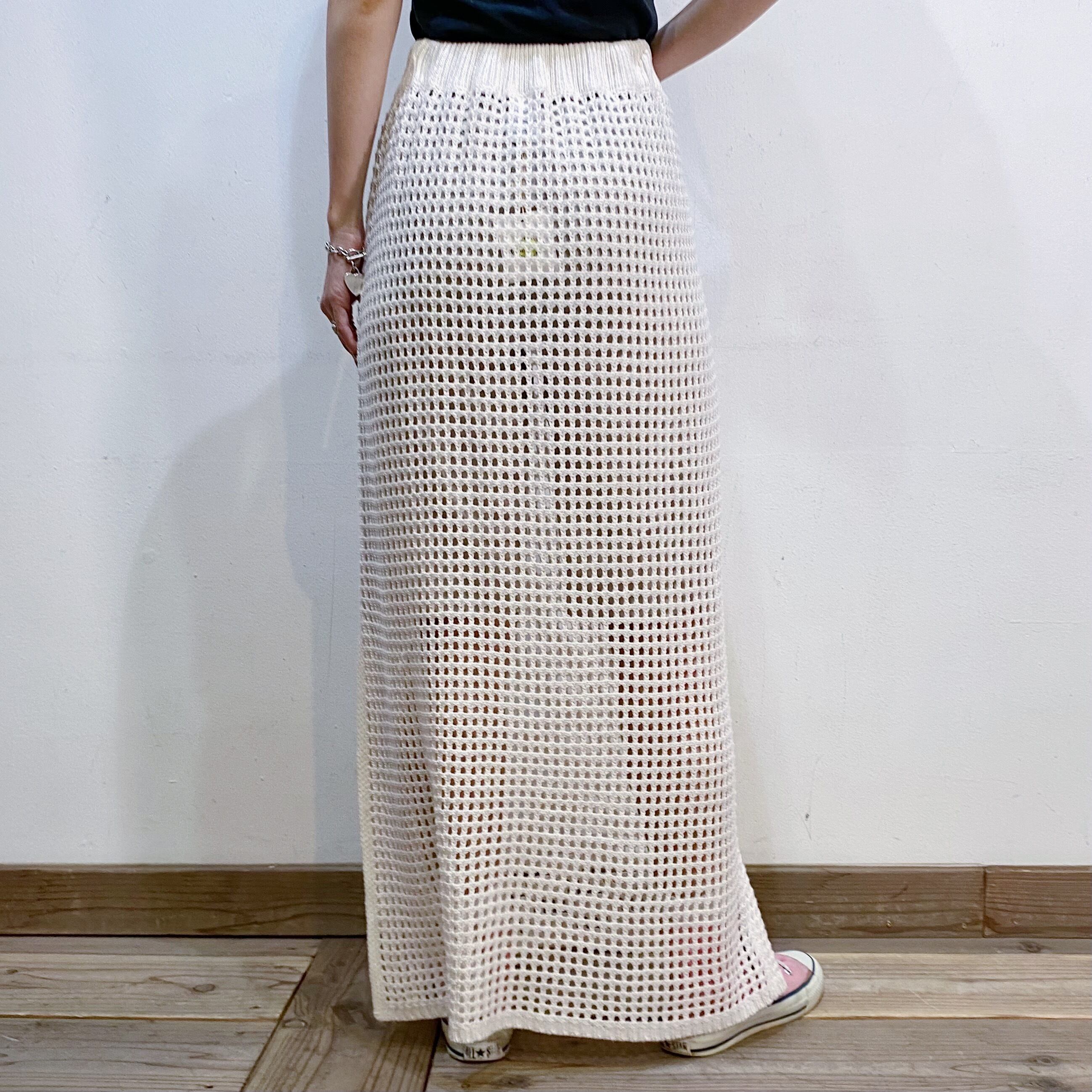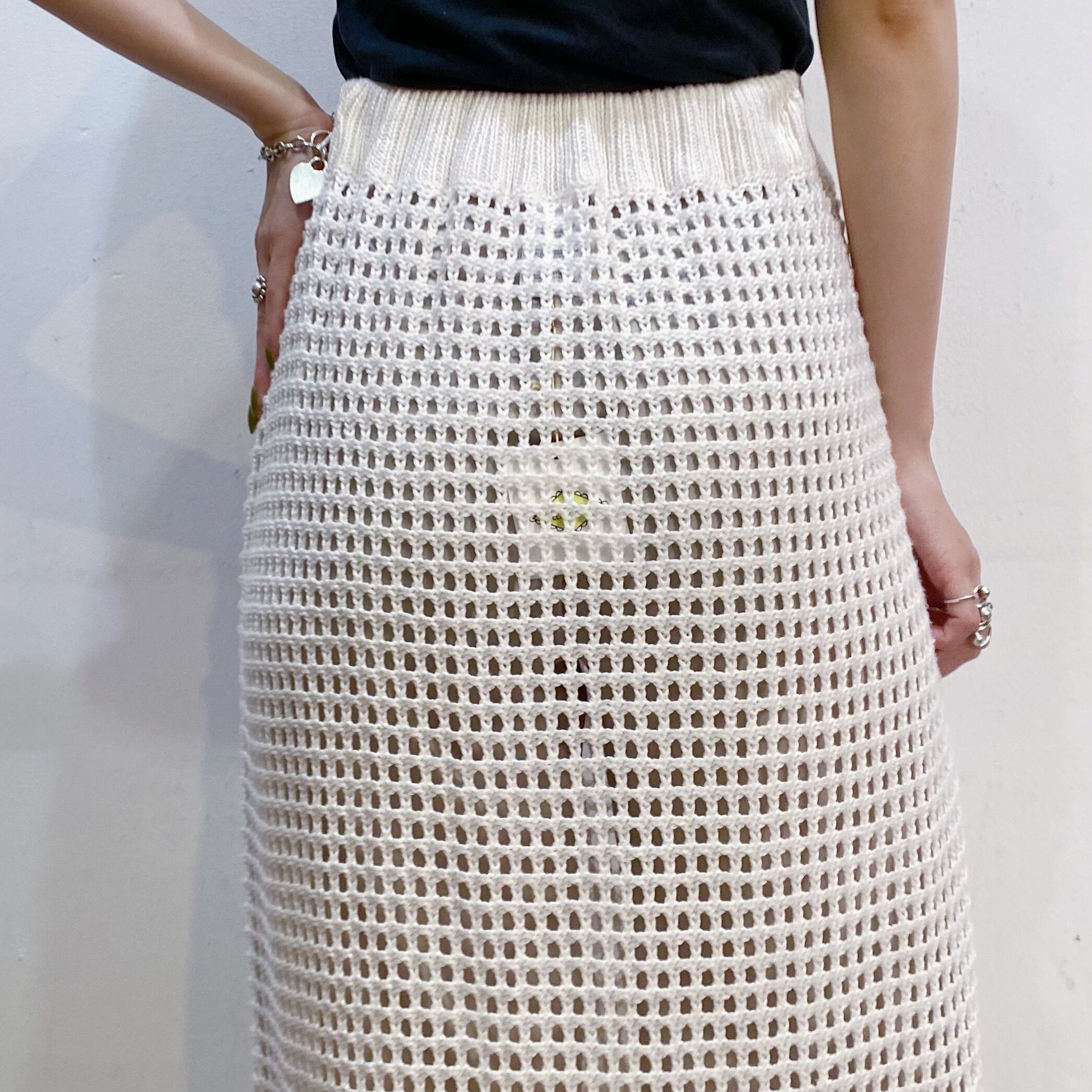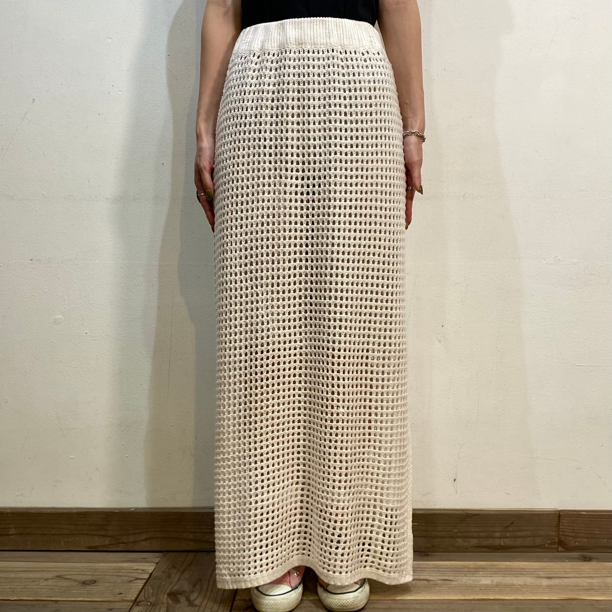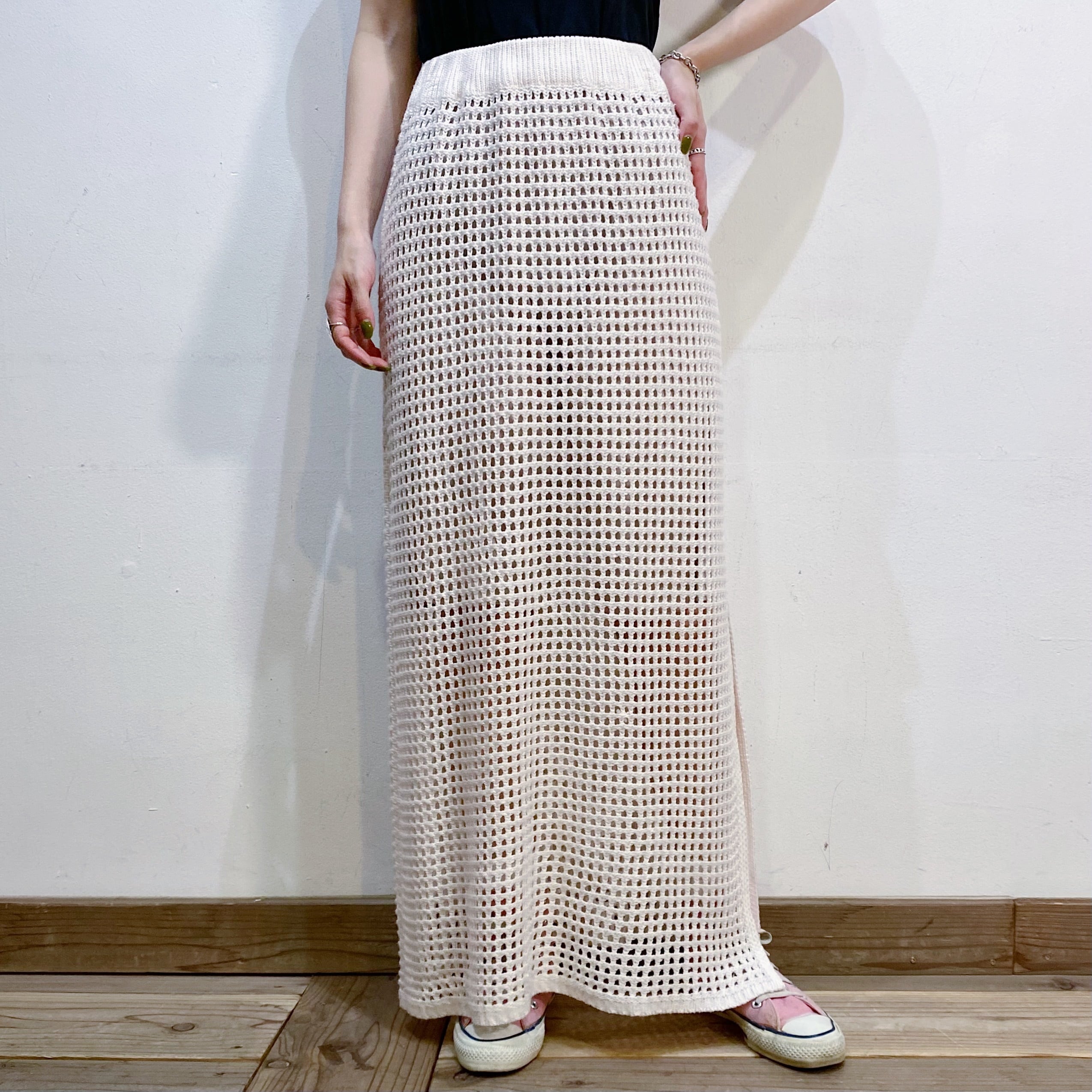レイヤードアイテムとして重宝しそうな、クロシェスカートです。
