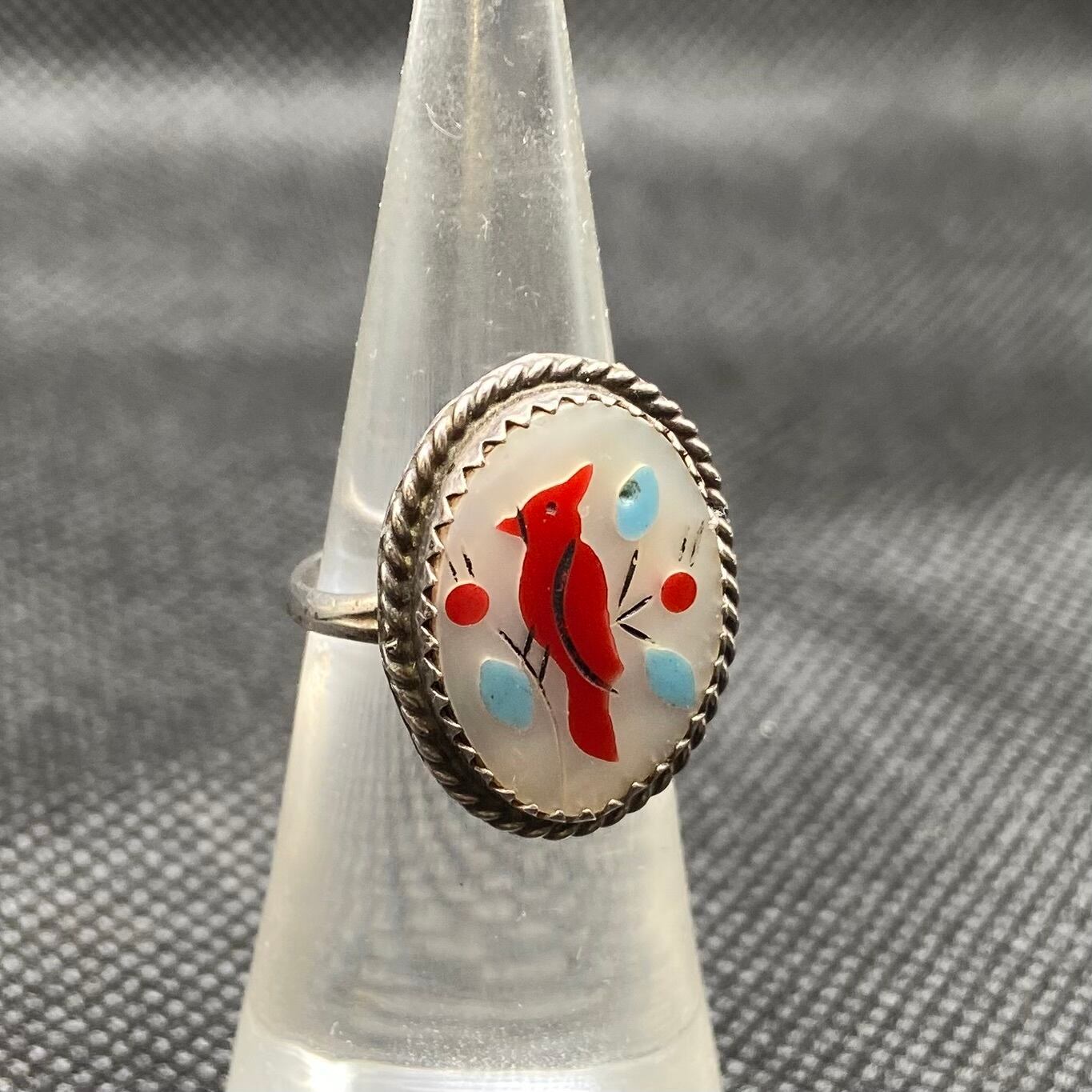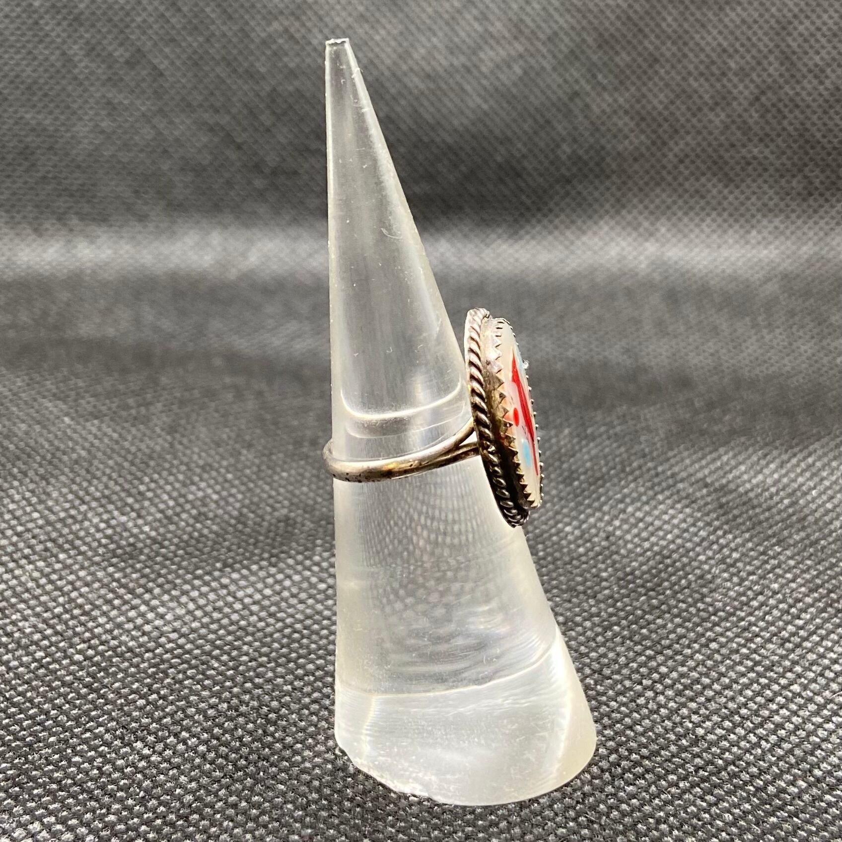 こちらはズニ族が得意とするインレイという技法によって、コーラル・ターコイズ・シェルの石をはめ込んで作られた、雰囲気たっぷりの逸品。