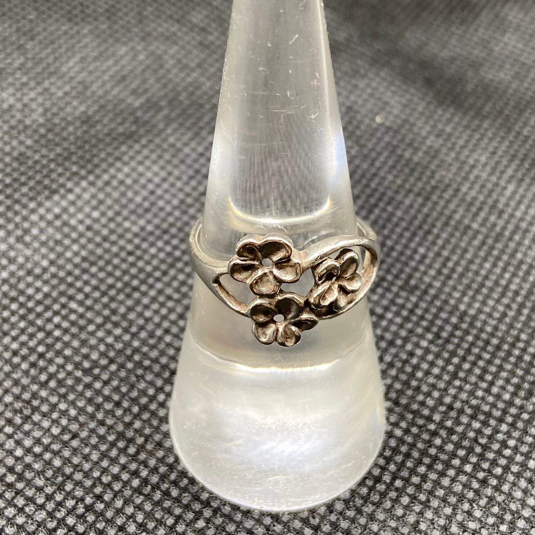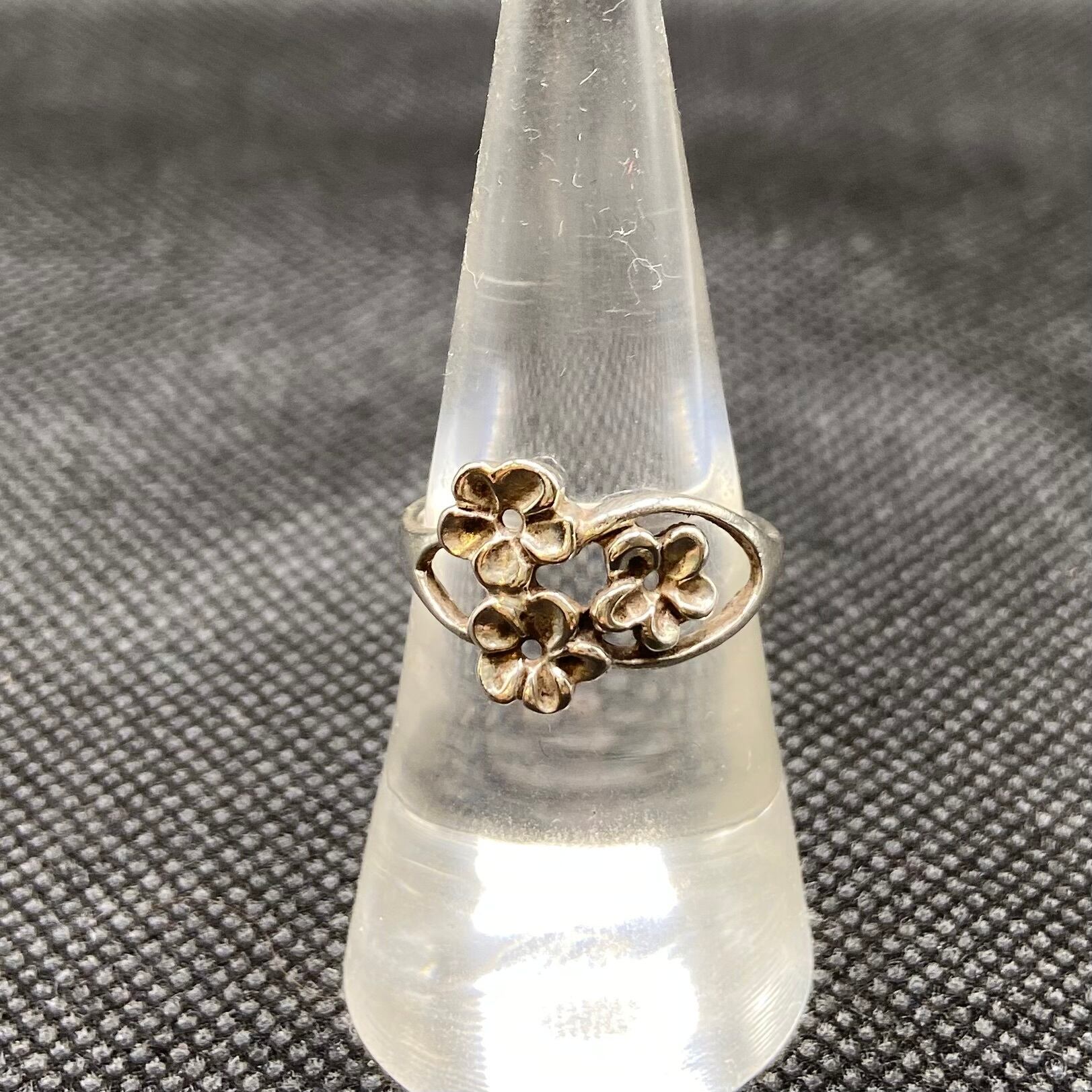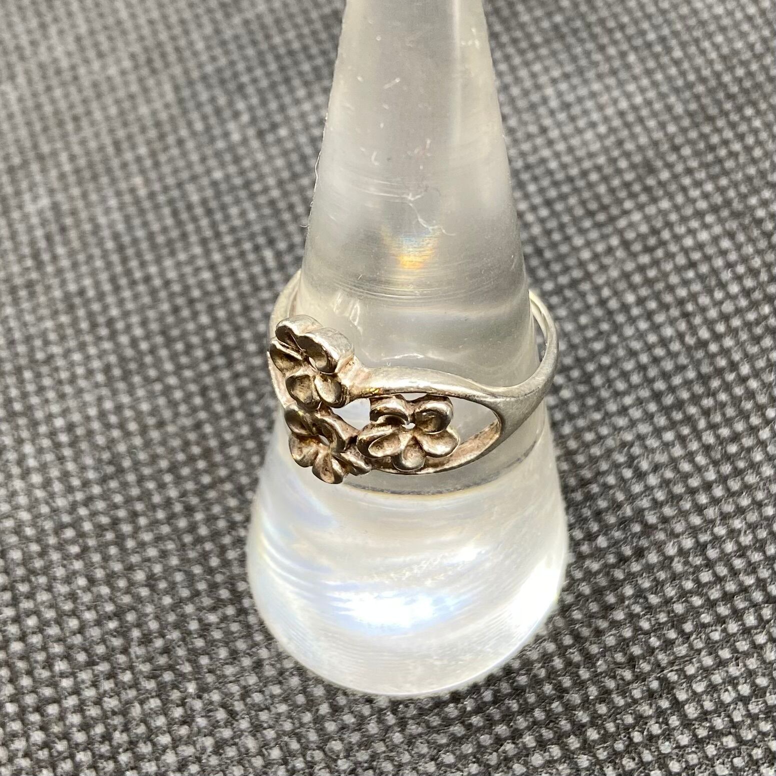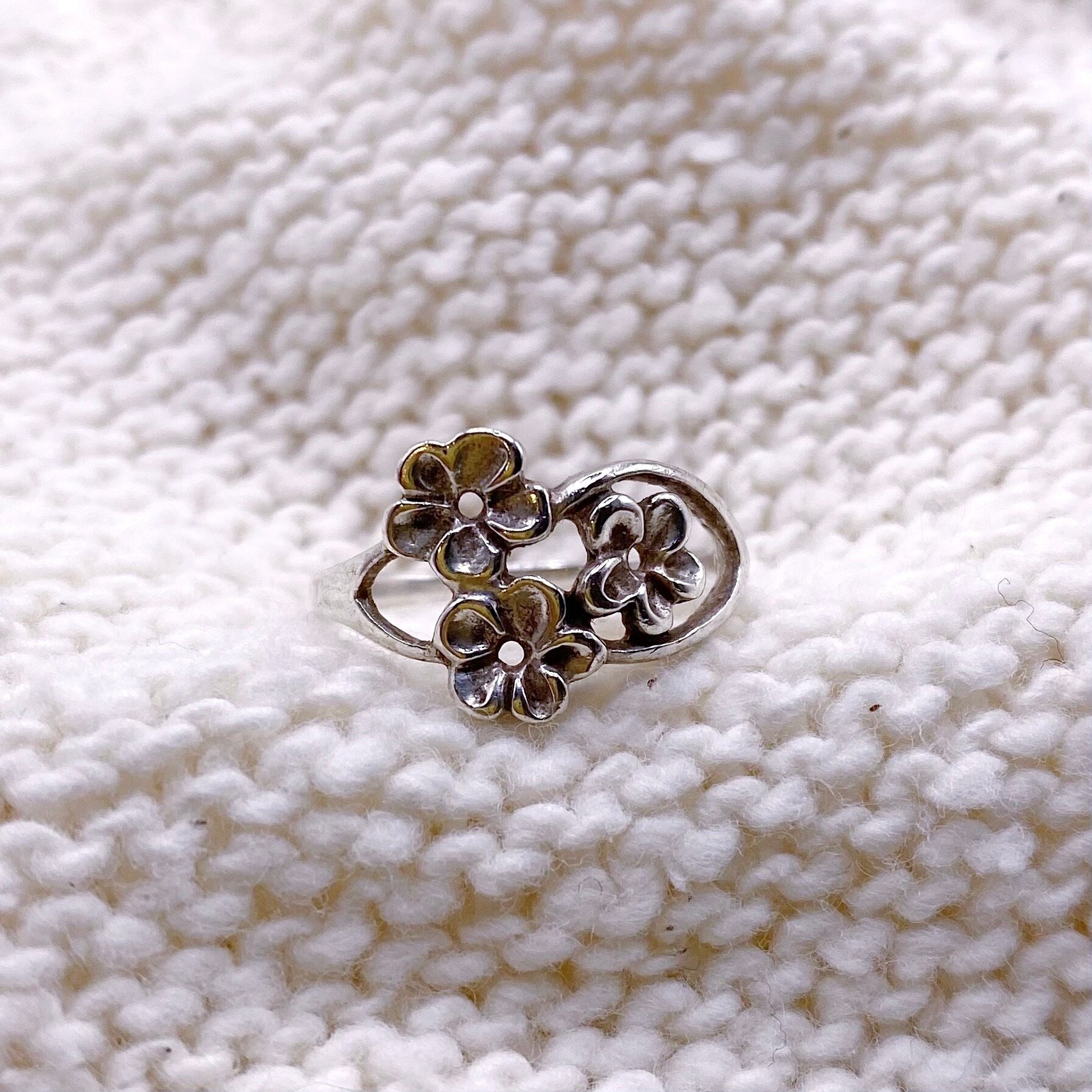 925 silver flower motif ring
