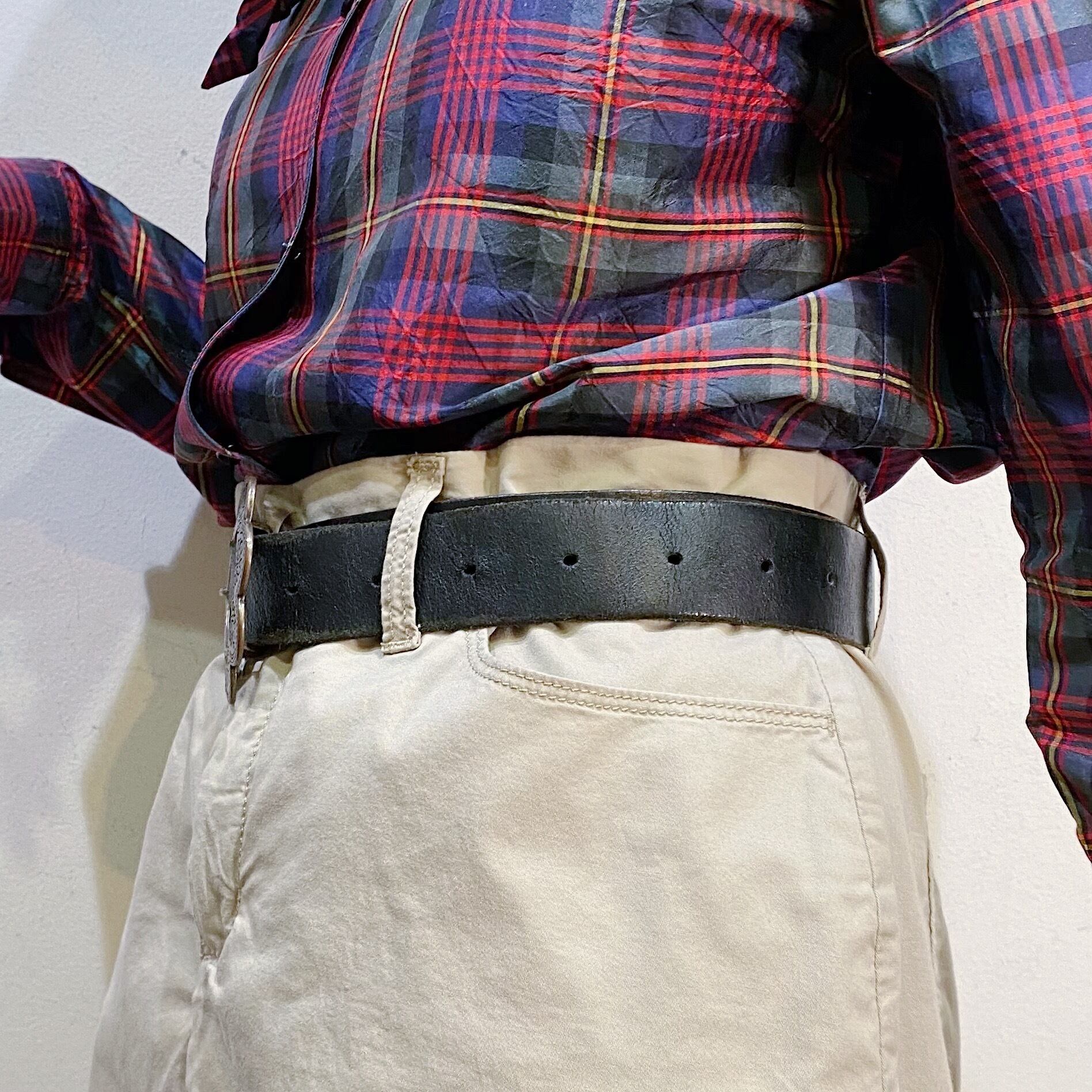 ベルトの穴周りの生地に劣化が見受けられますが、使用に問題はございません。