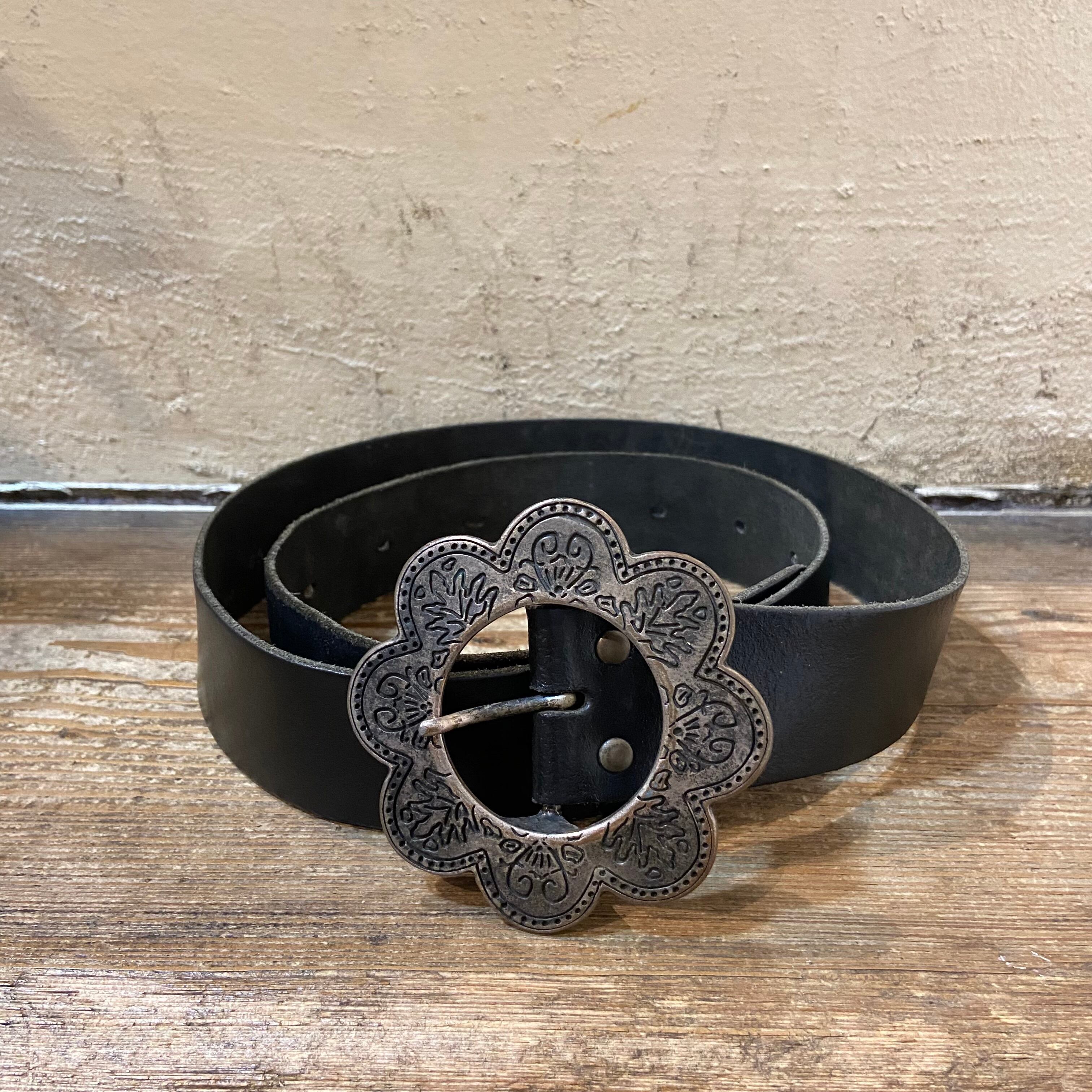 大きなお花モチーフのバックルがとても可愛いレザーベルトです。