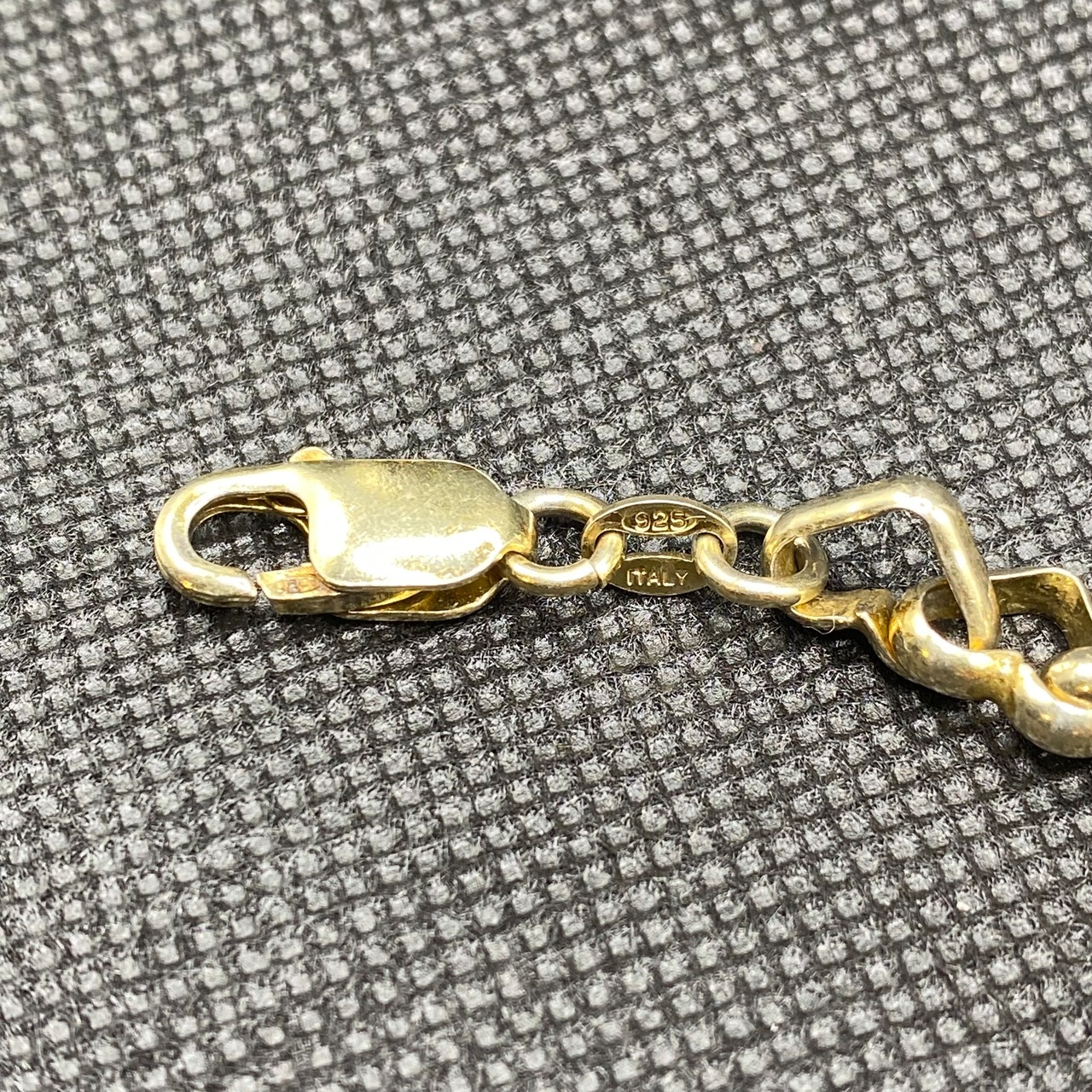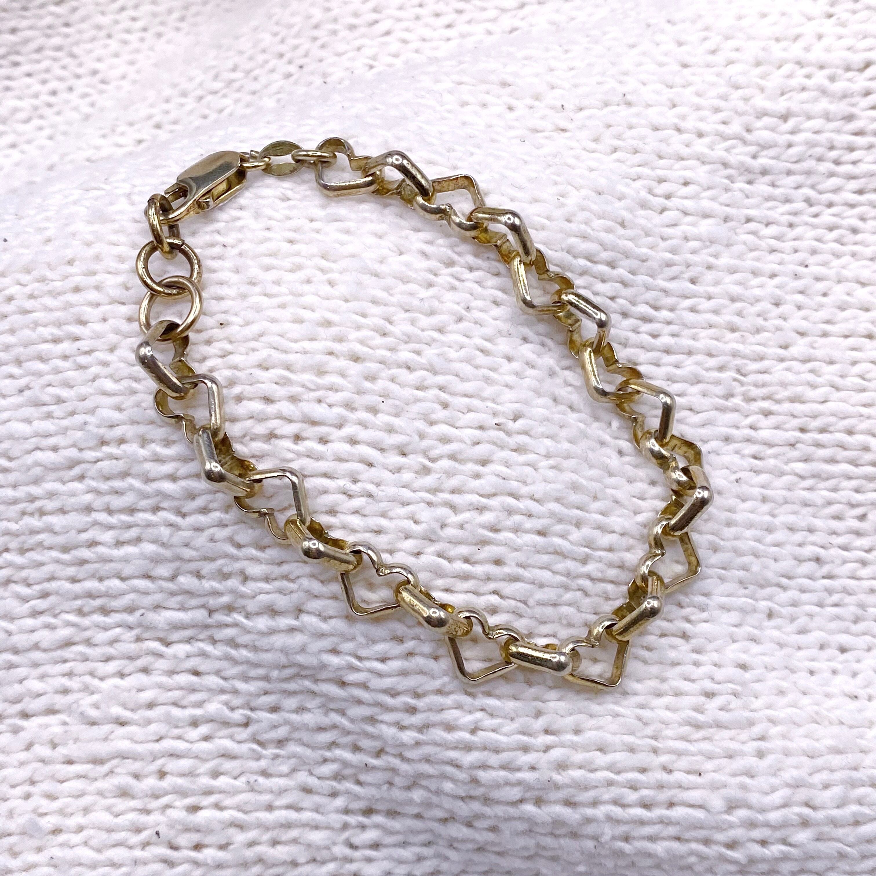 小さなハートが連なってチェーンになったデザインが可愛い、925シルバーのブレスレットです。