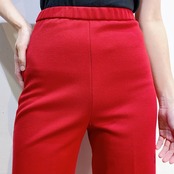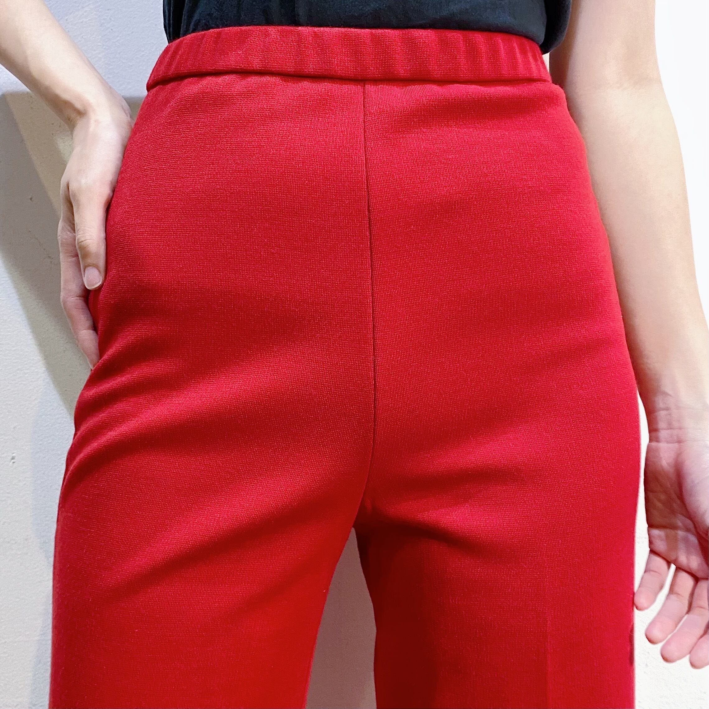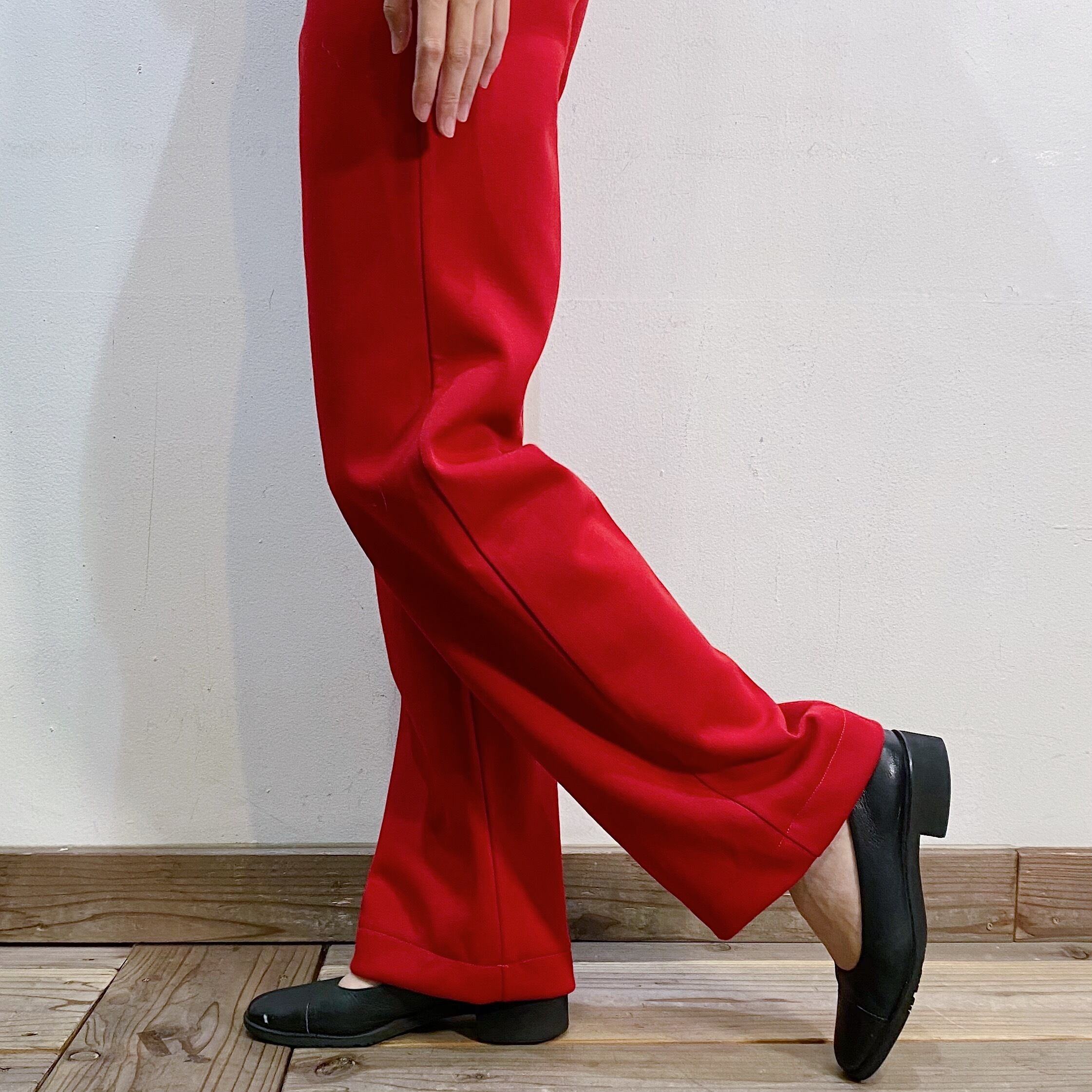 深みのあるこっくりとしたレッドカラーが可愛い、70年代のワイドパンツです。