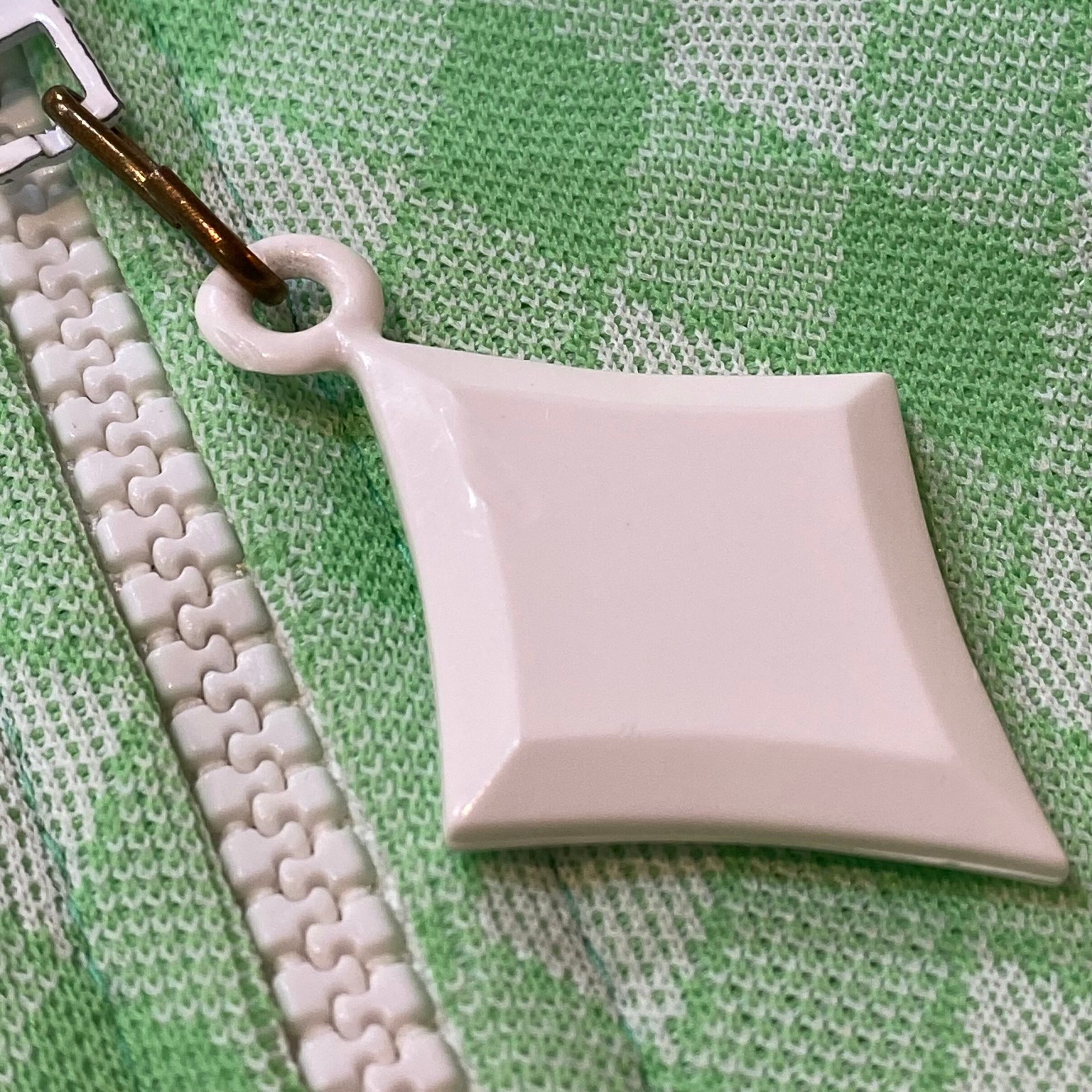 柄に合わせたようにジップの持ち手もダイヤ型になっているのがキュート。