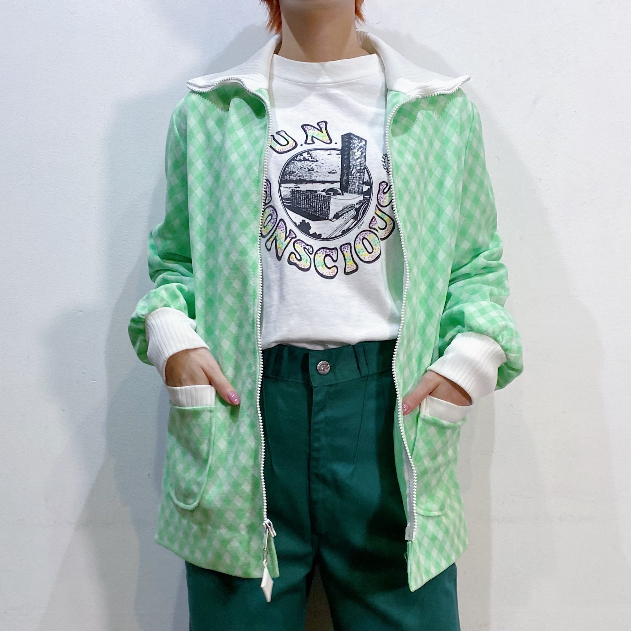 ホワイトとグリーンのチェック柄が可愛い、70年代のジャケットです。