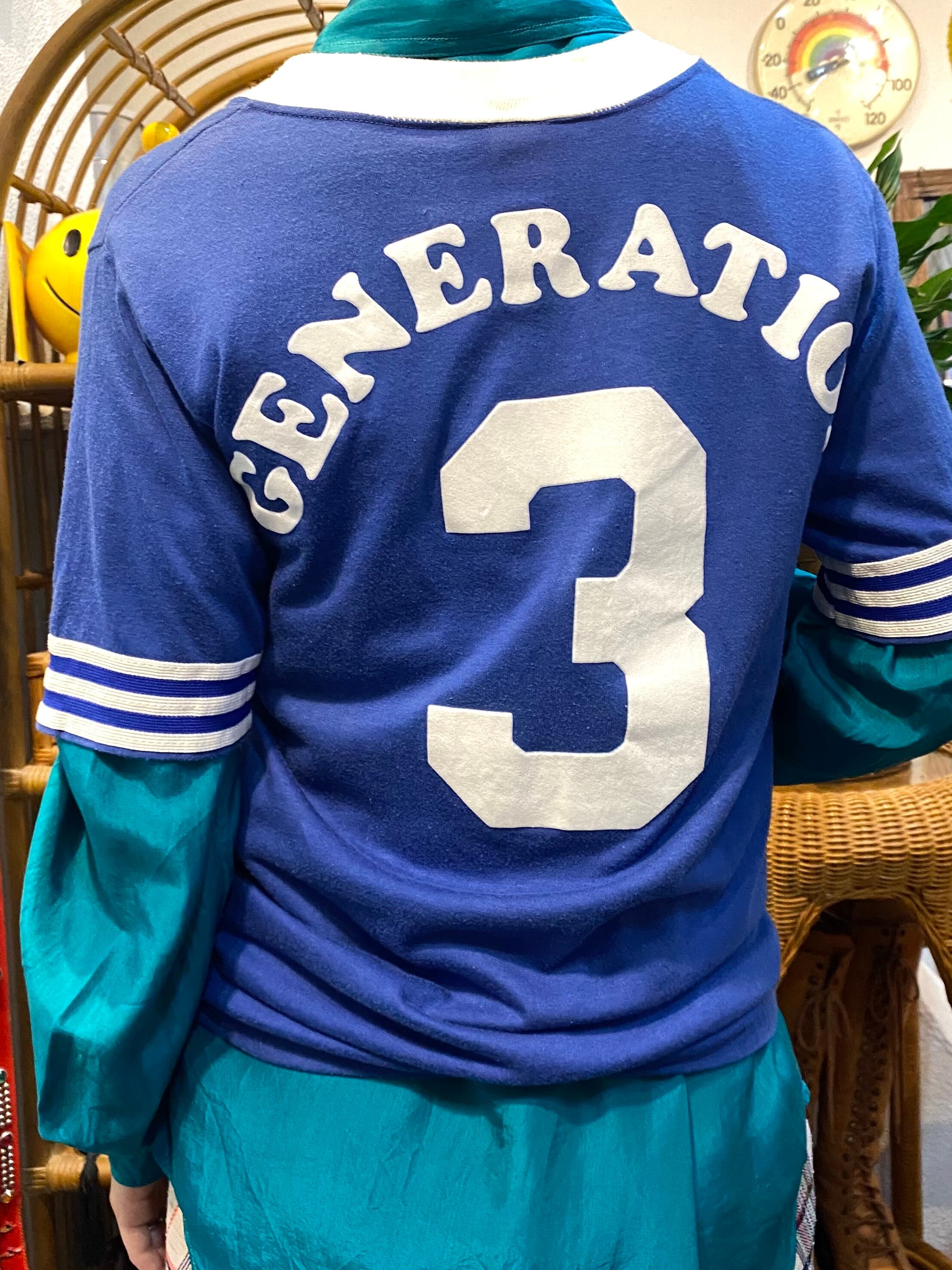 袖の三本ラインやバックのナンバリングプリントが可愛い、70年代のスポーツウェアボディのTシャツです。