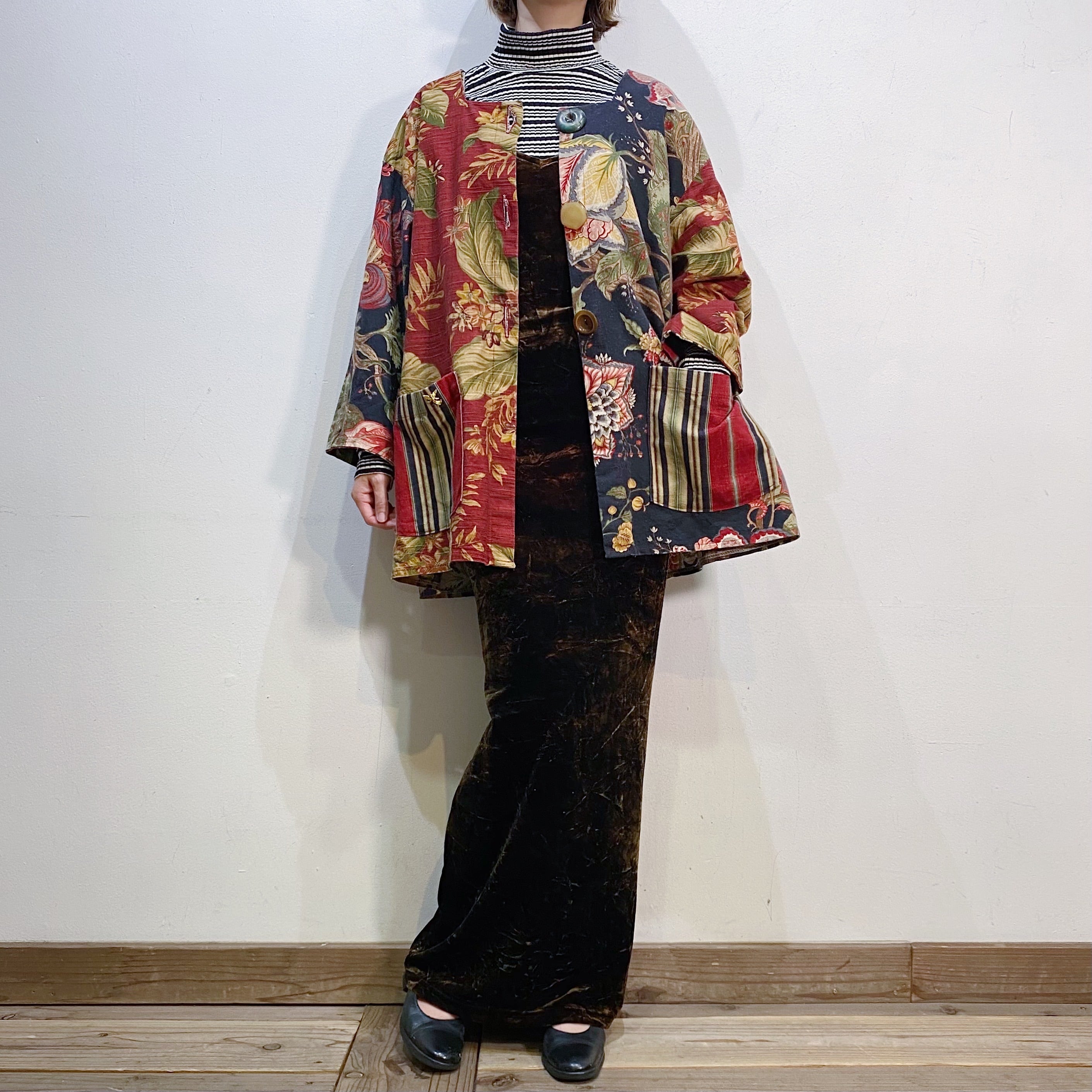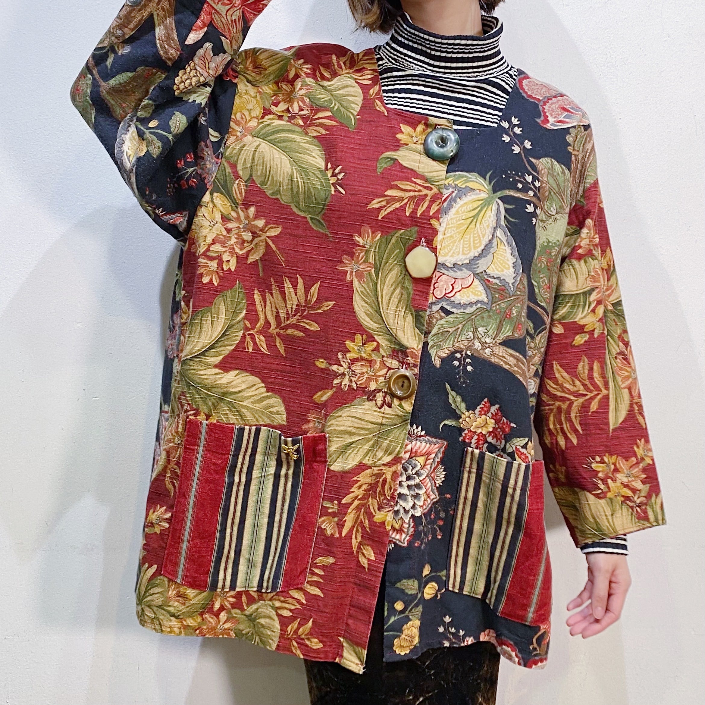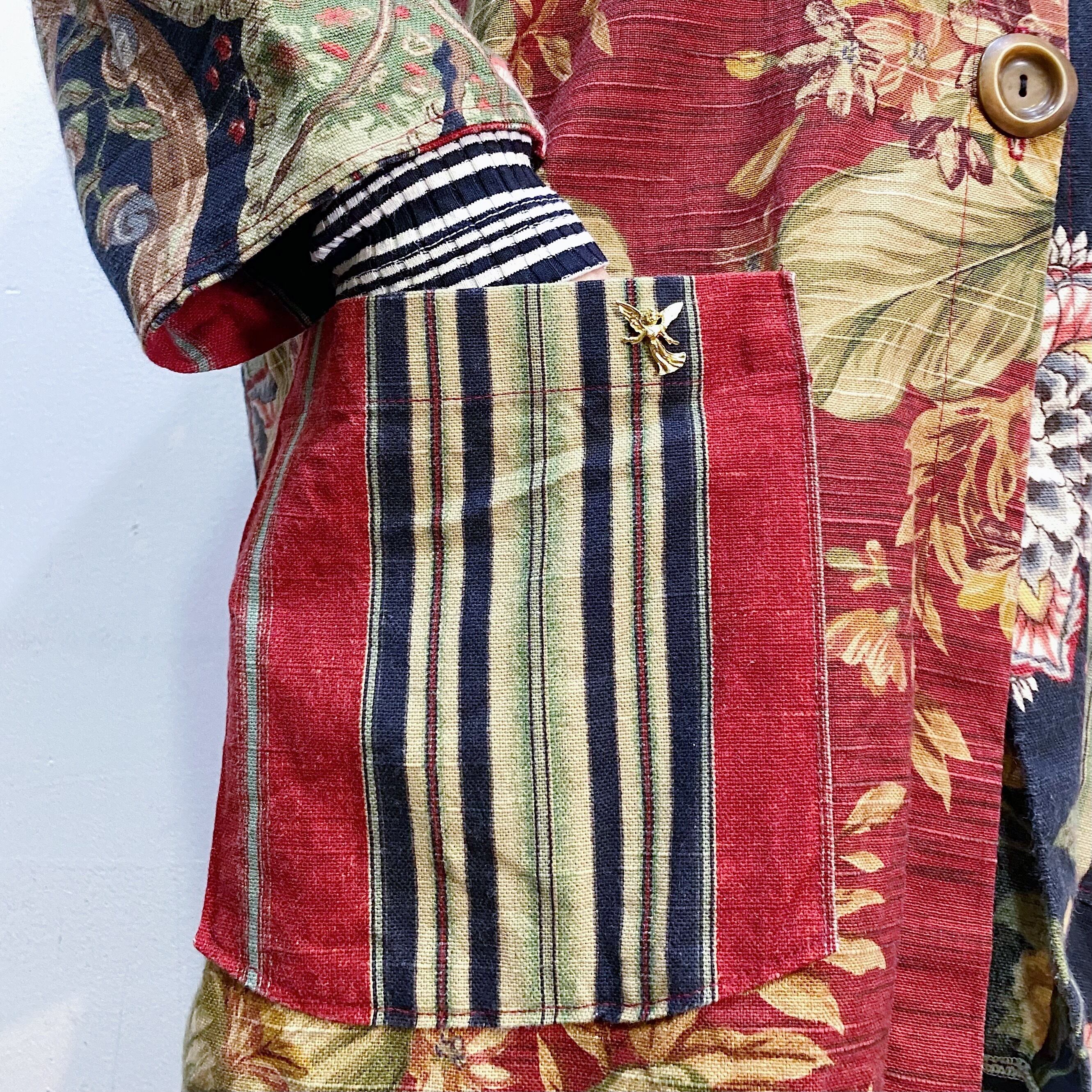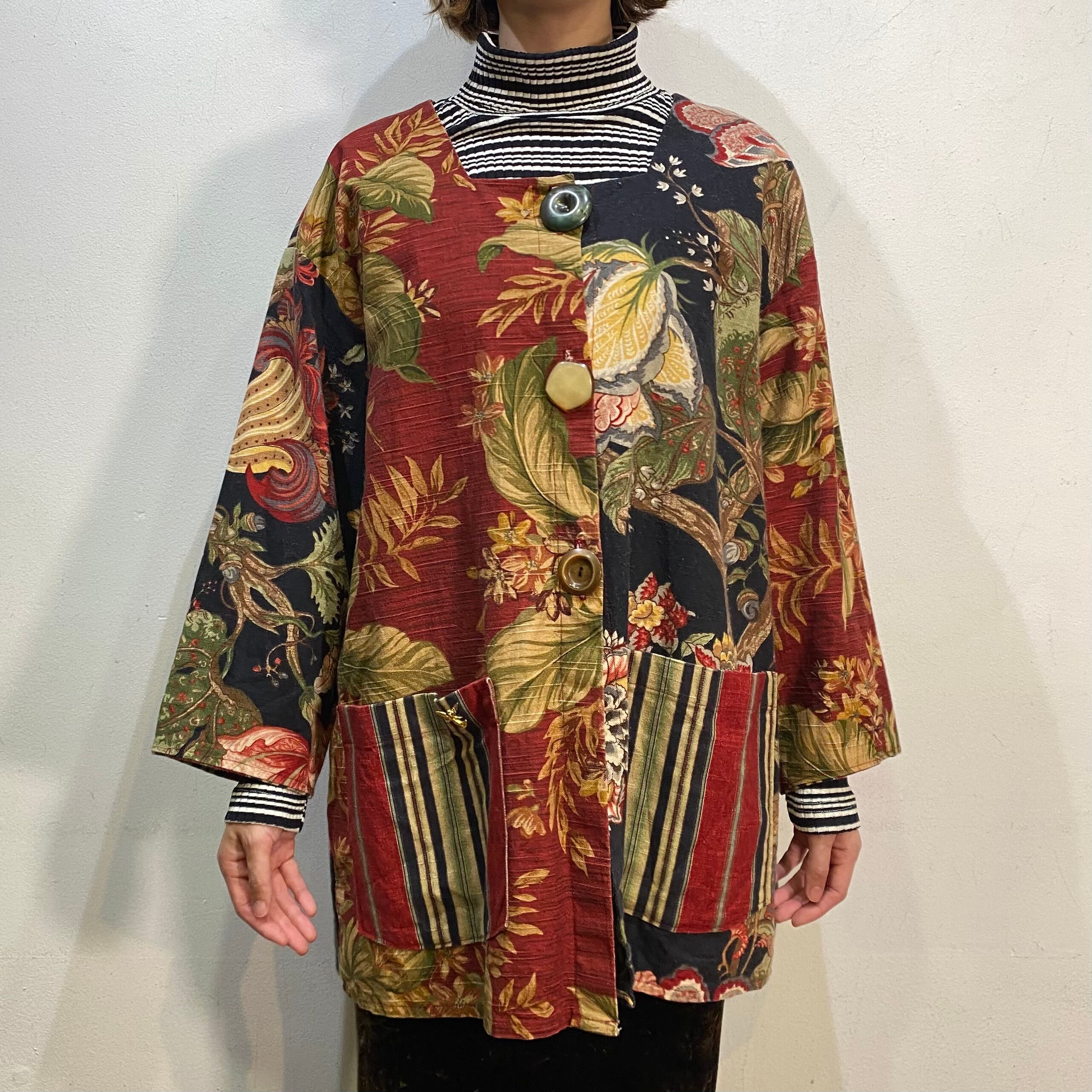 ボタニカルな花柄にストライプの組み合わせが可愛い、80年代頃のジャケットです。