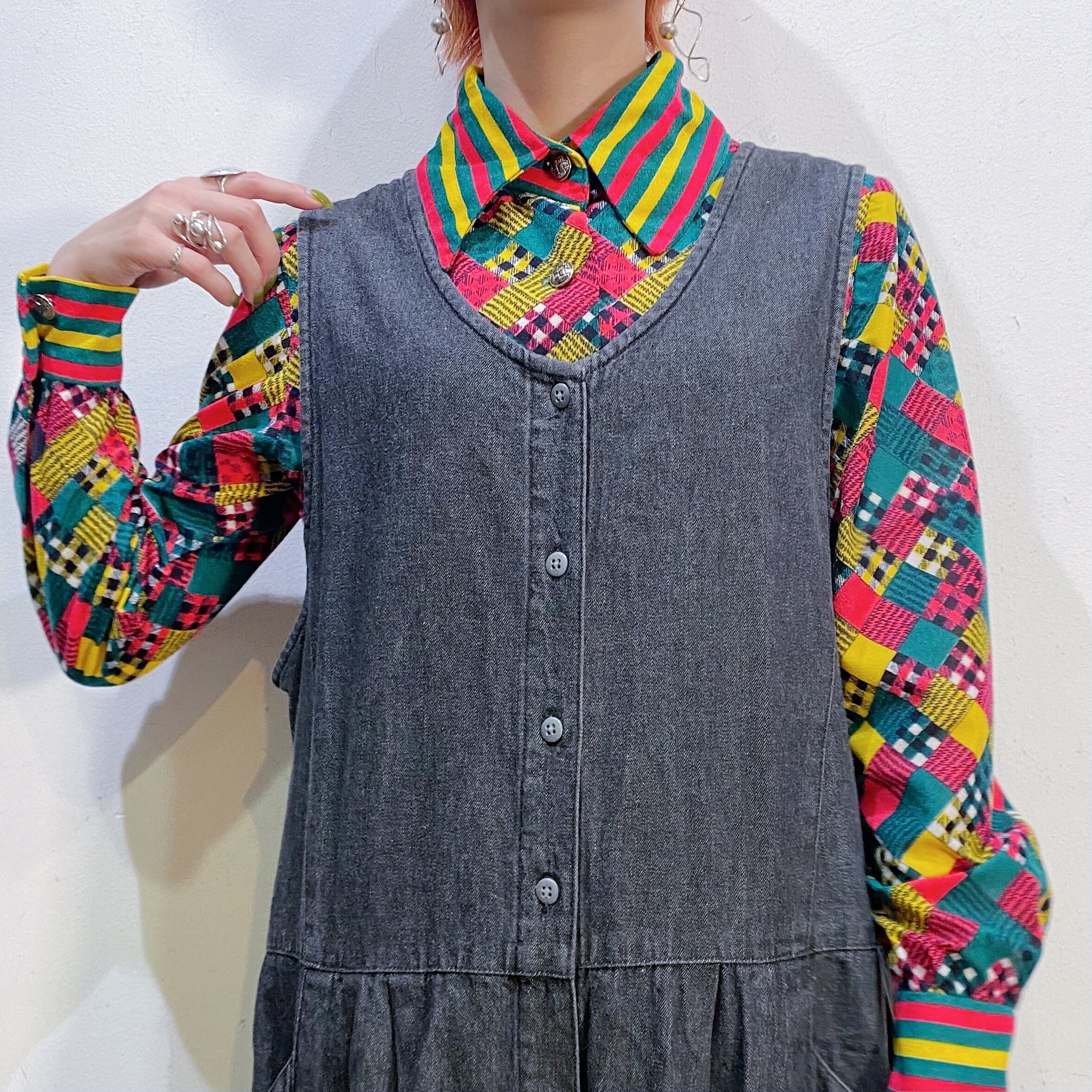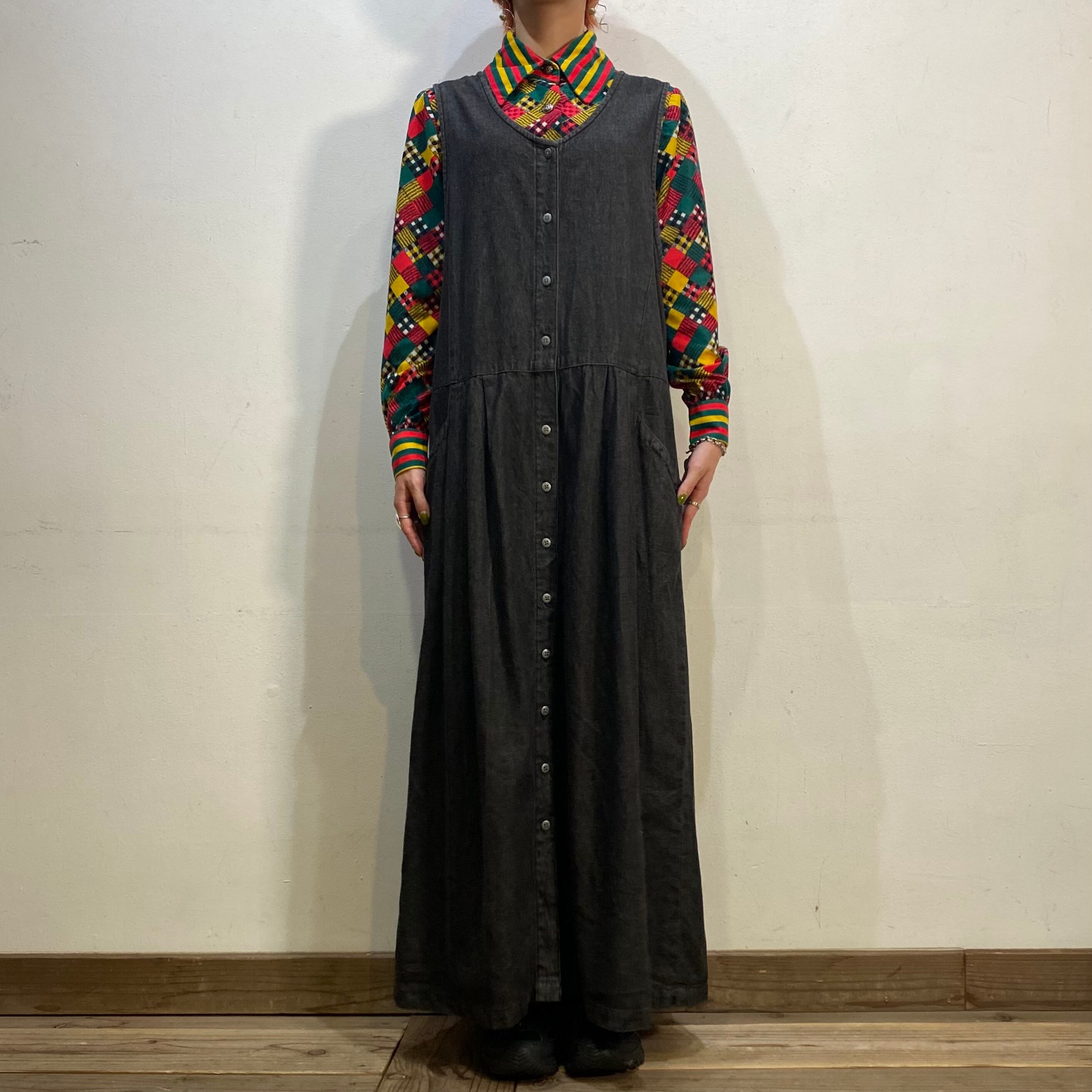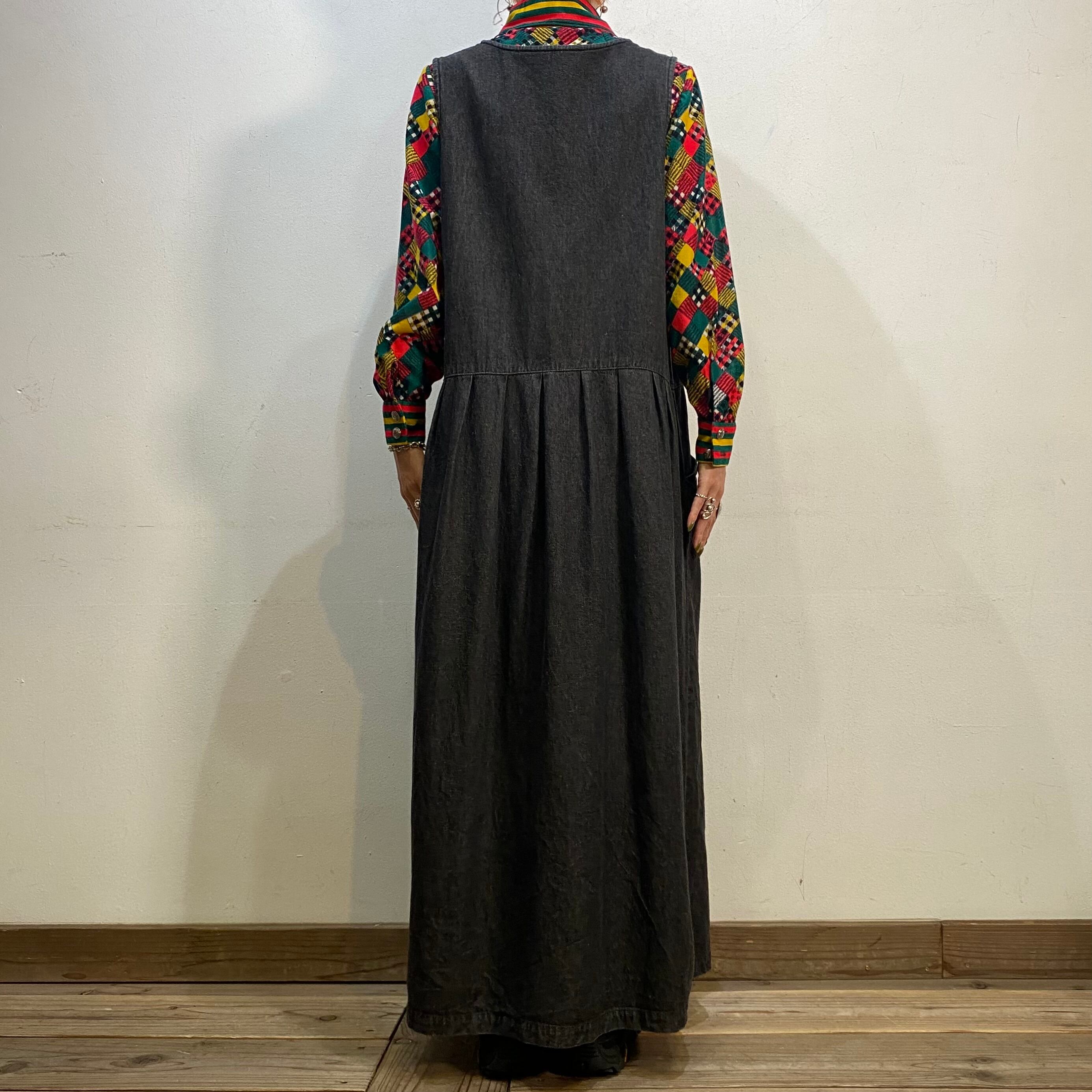 ブラックデニムが可愛い80年代のエディーバウアーのジャンパーワンピースです。