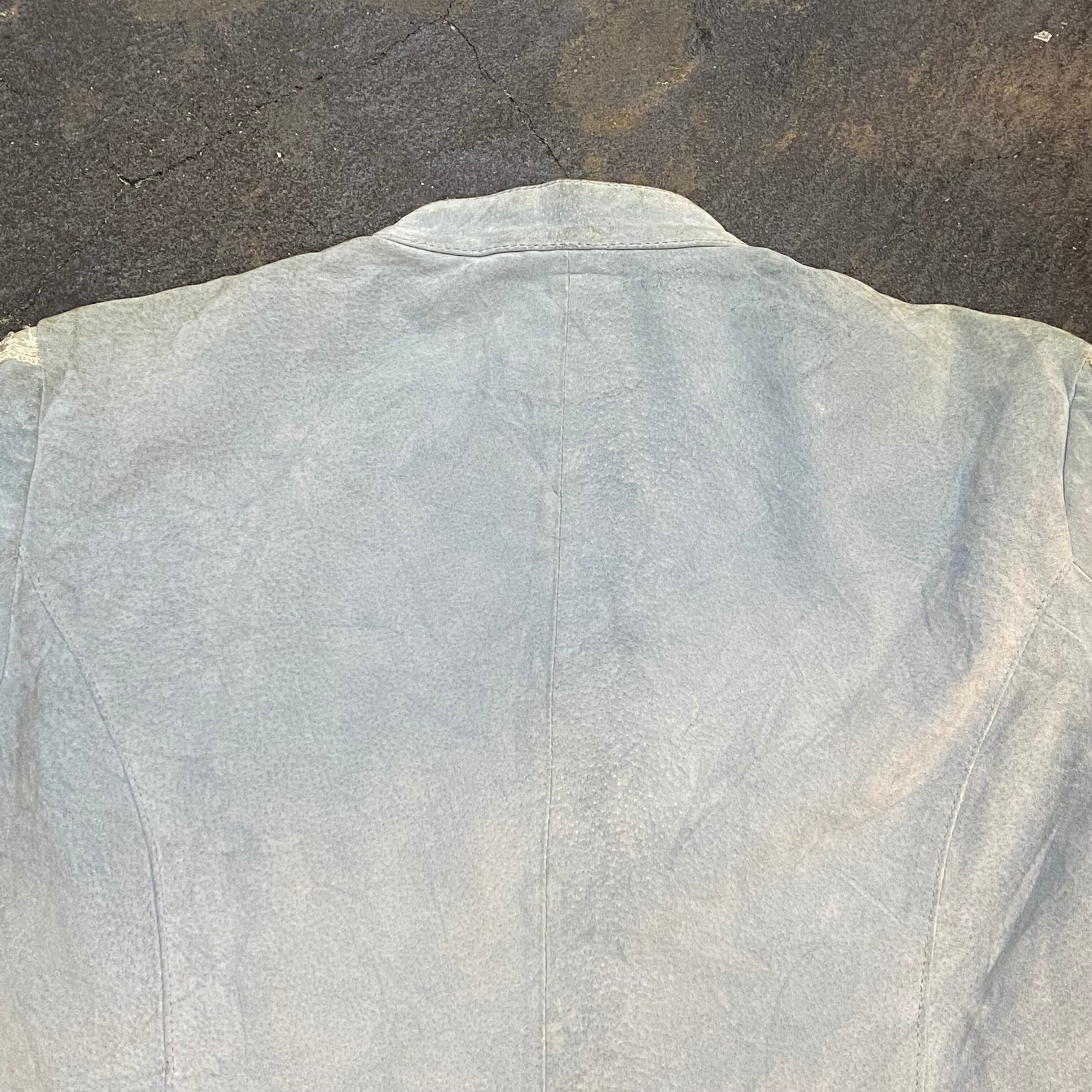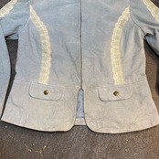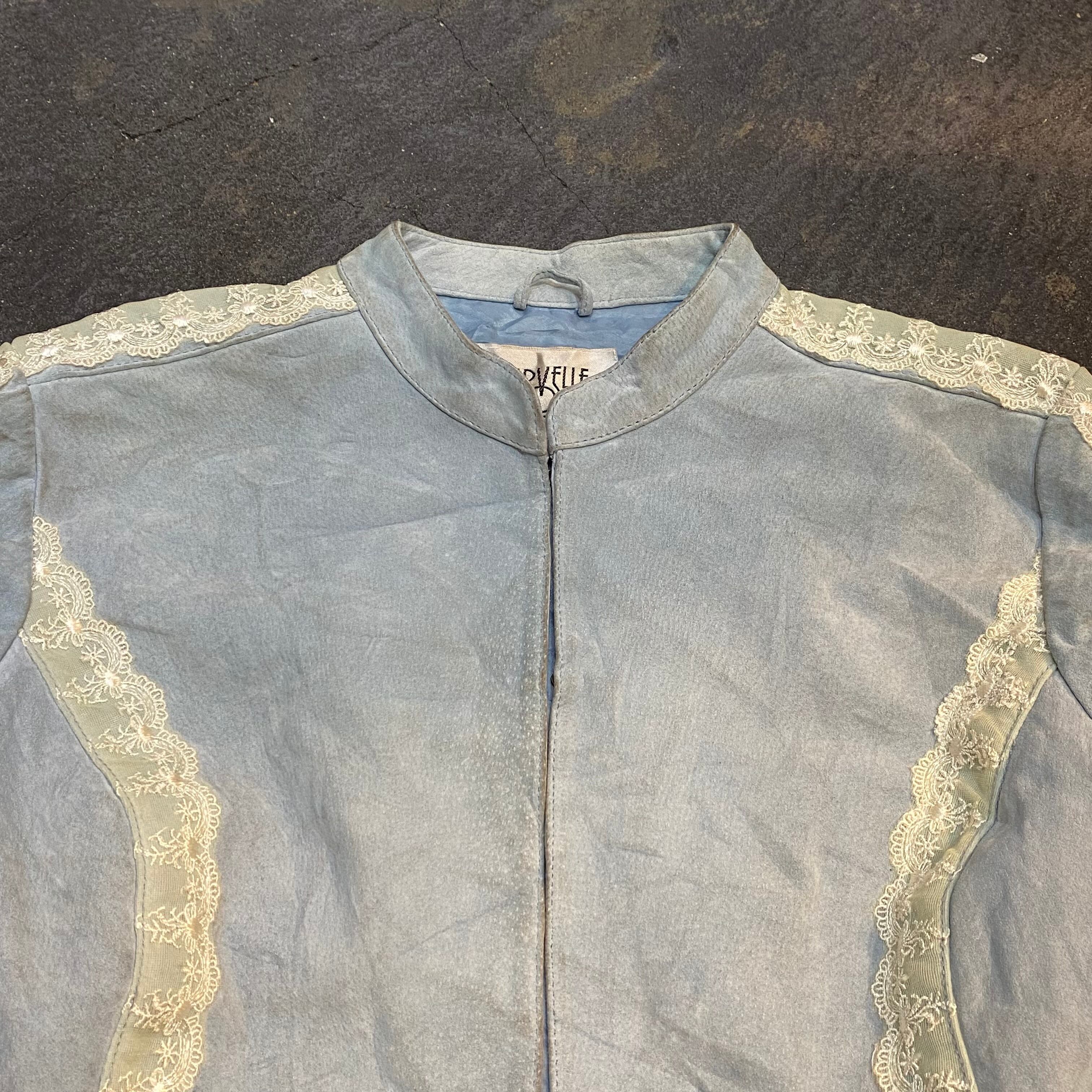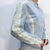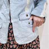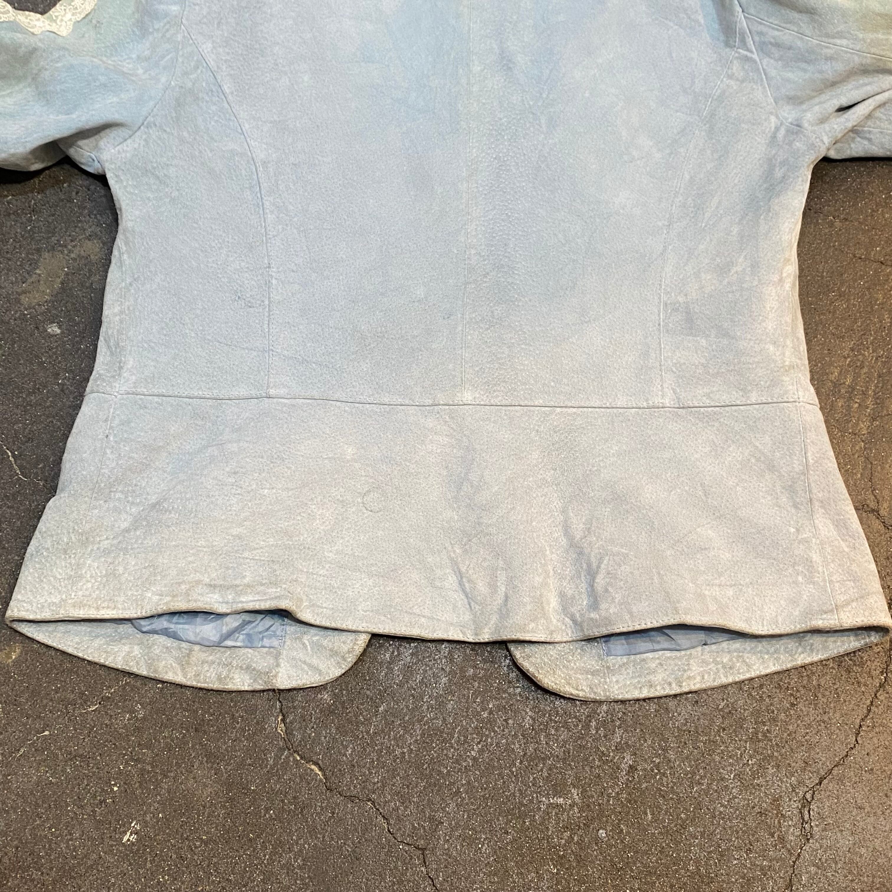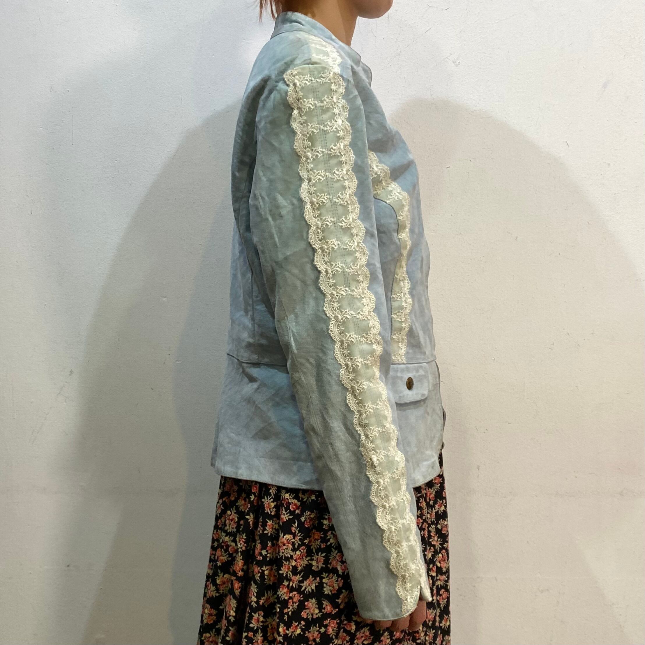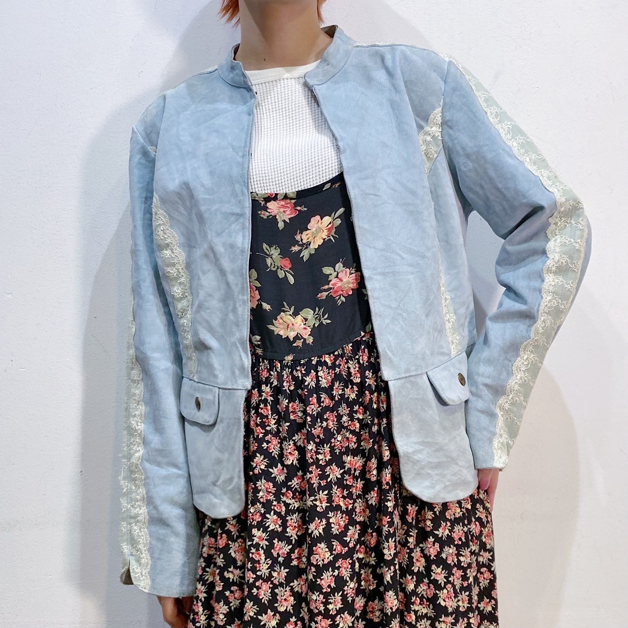 サックスブルー×レースのデザインが最高に可愛い、レザージャケットです。