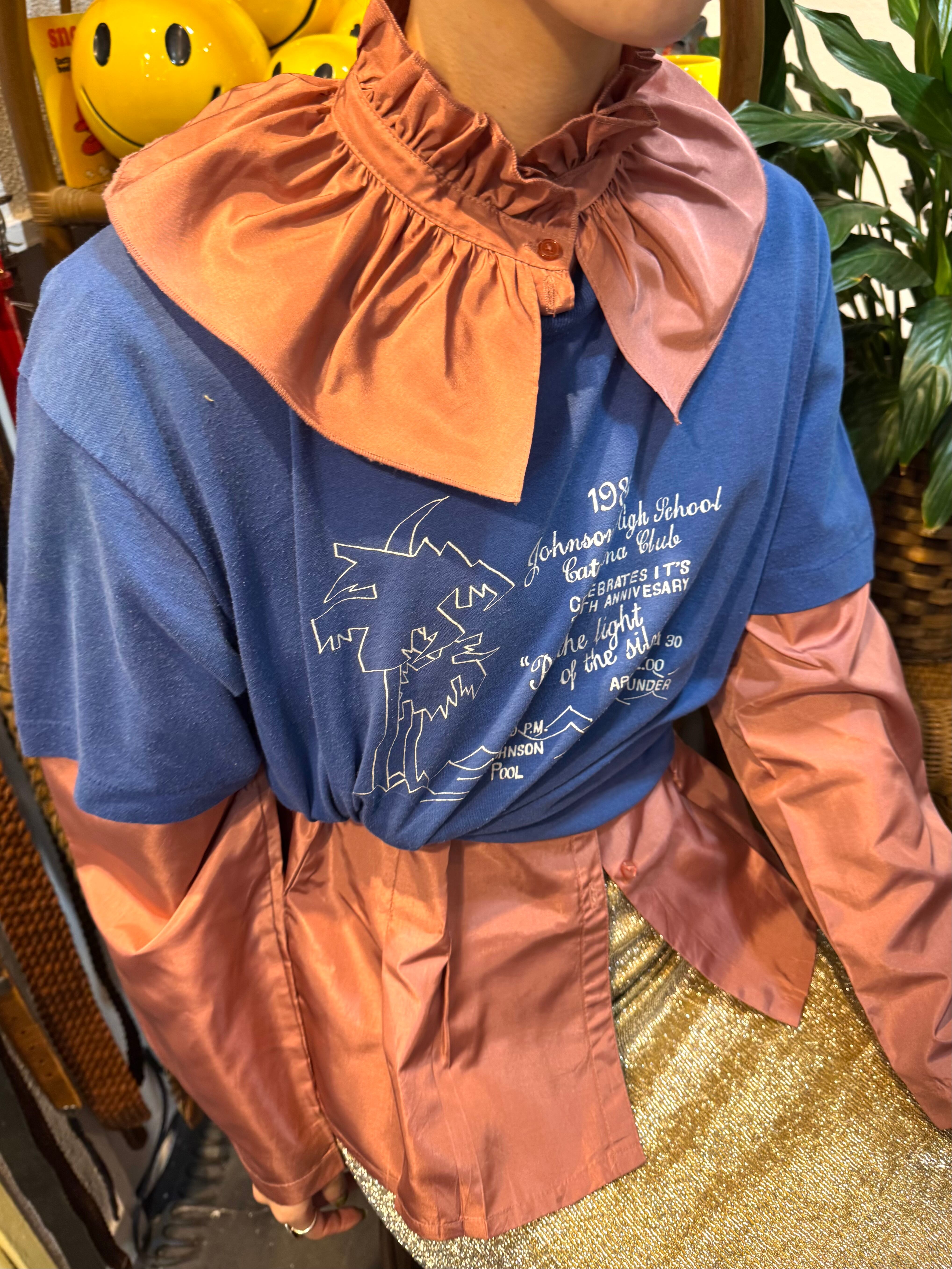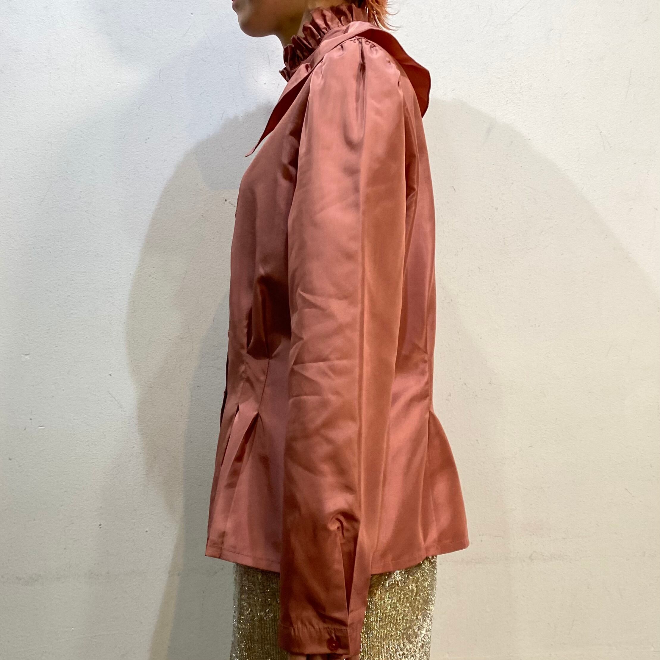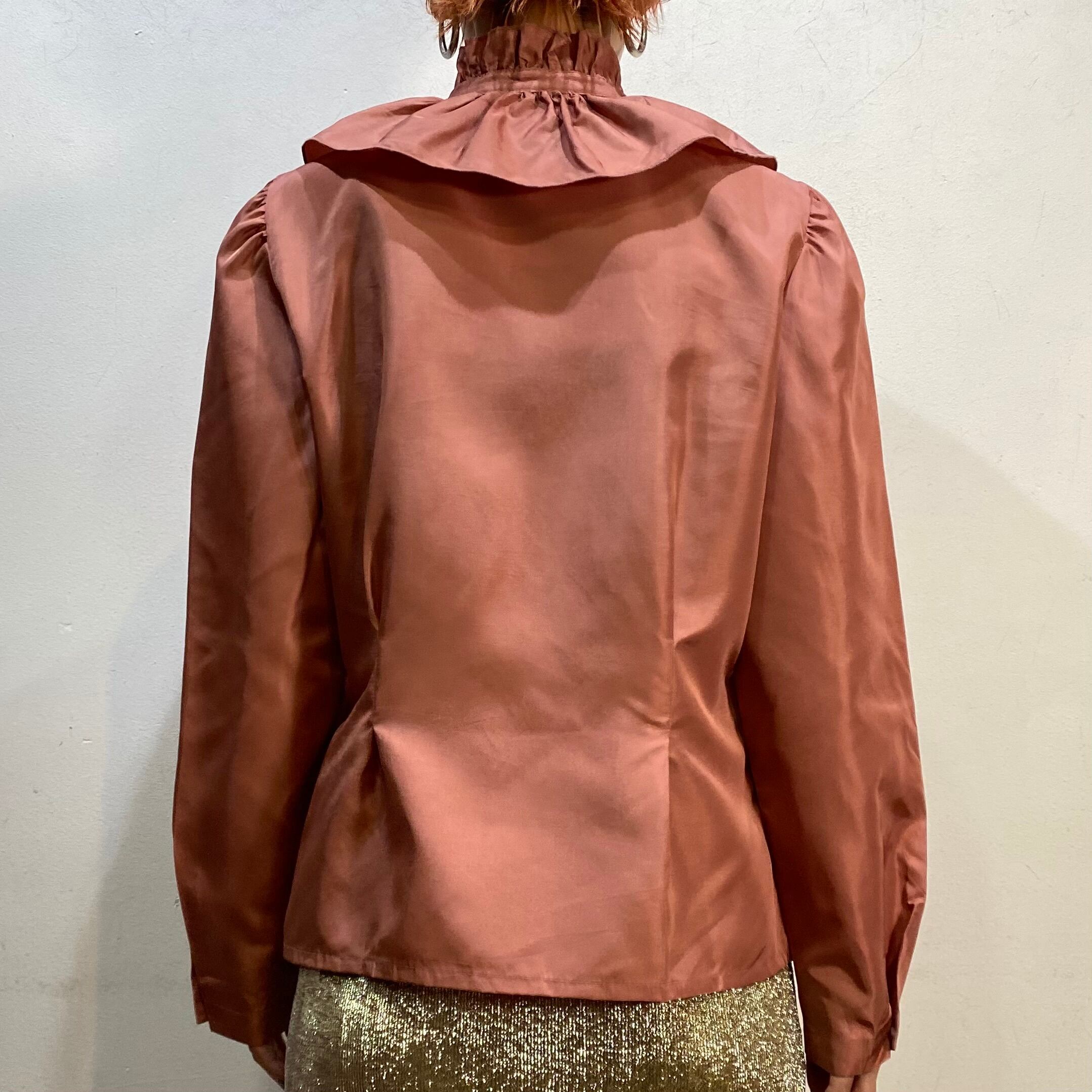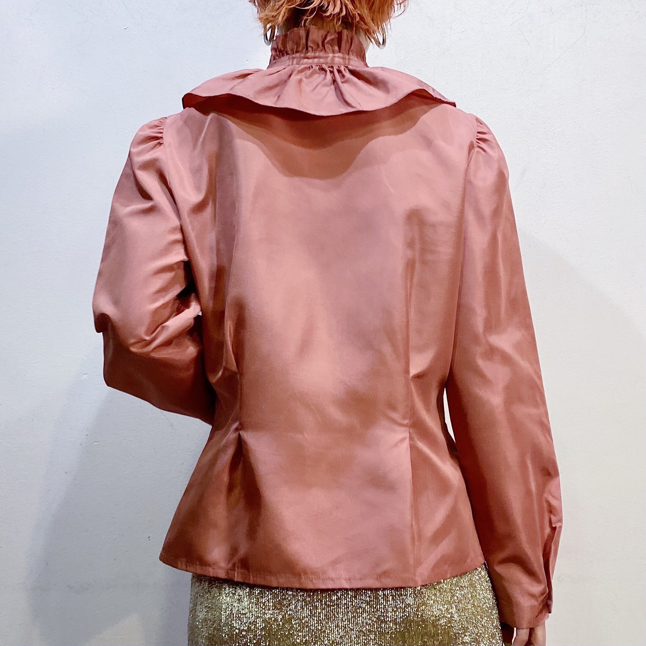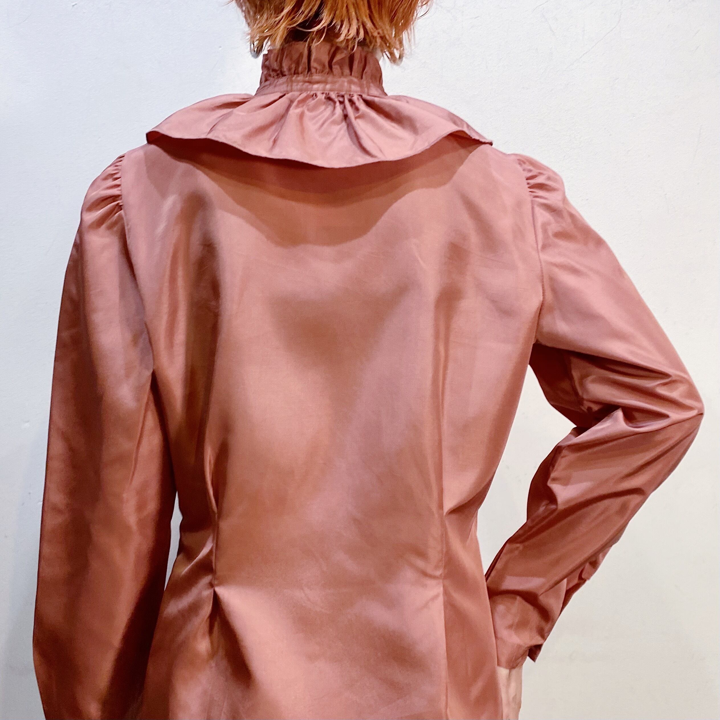 スモーキーなピンクの色合いが可愛い、80年代のブラウスです。