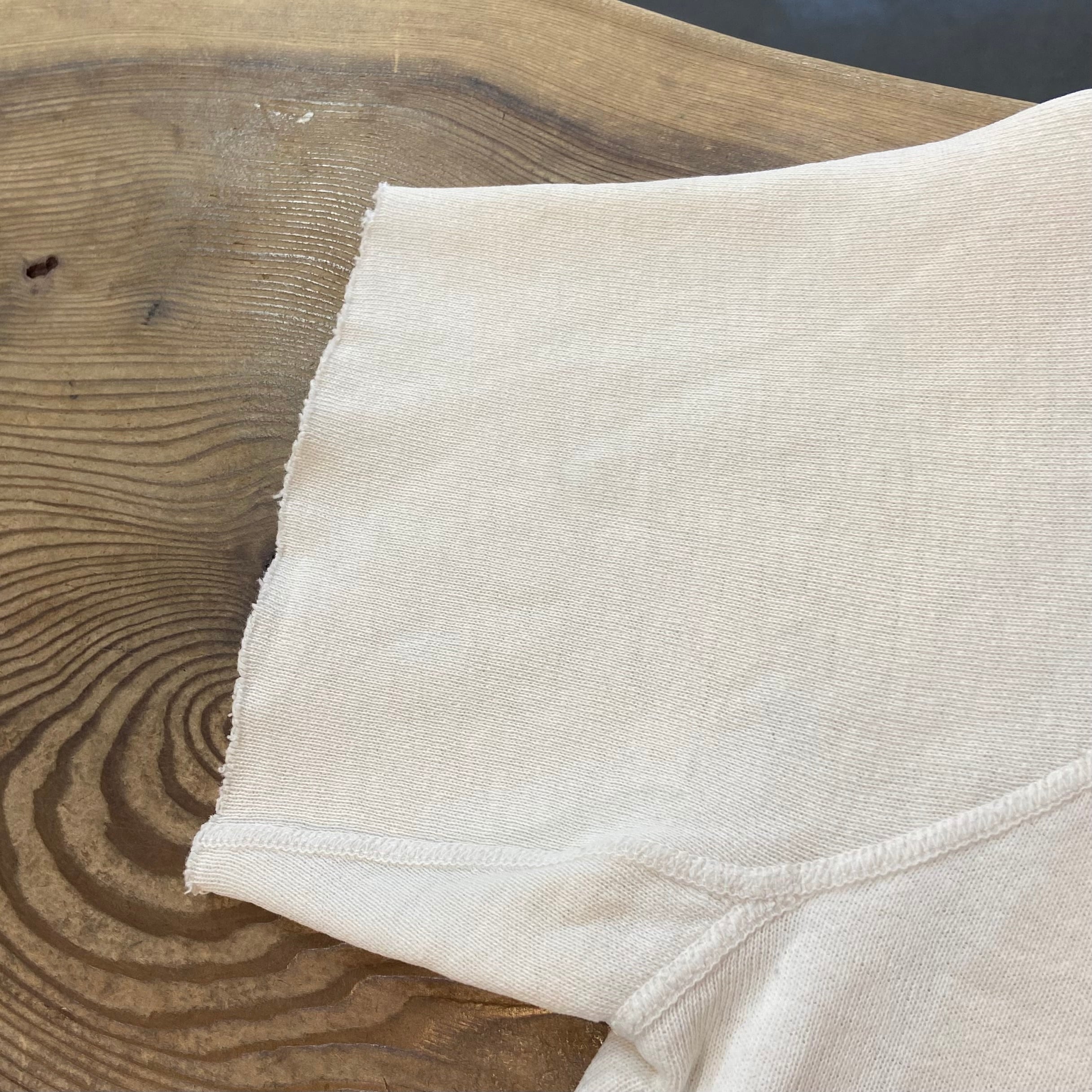 なんといっても圧巻のリブの長さがこの年代の特徴で、ラグランスリーブを大胆にカットオフしたデザインが魅力。