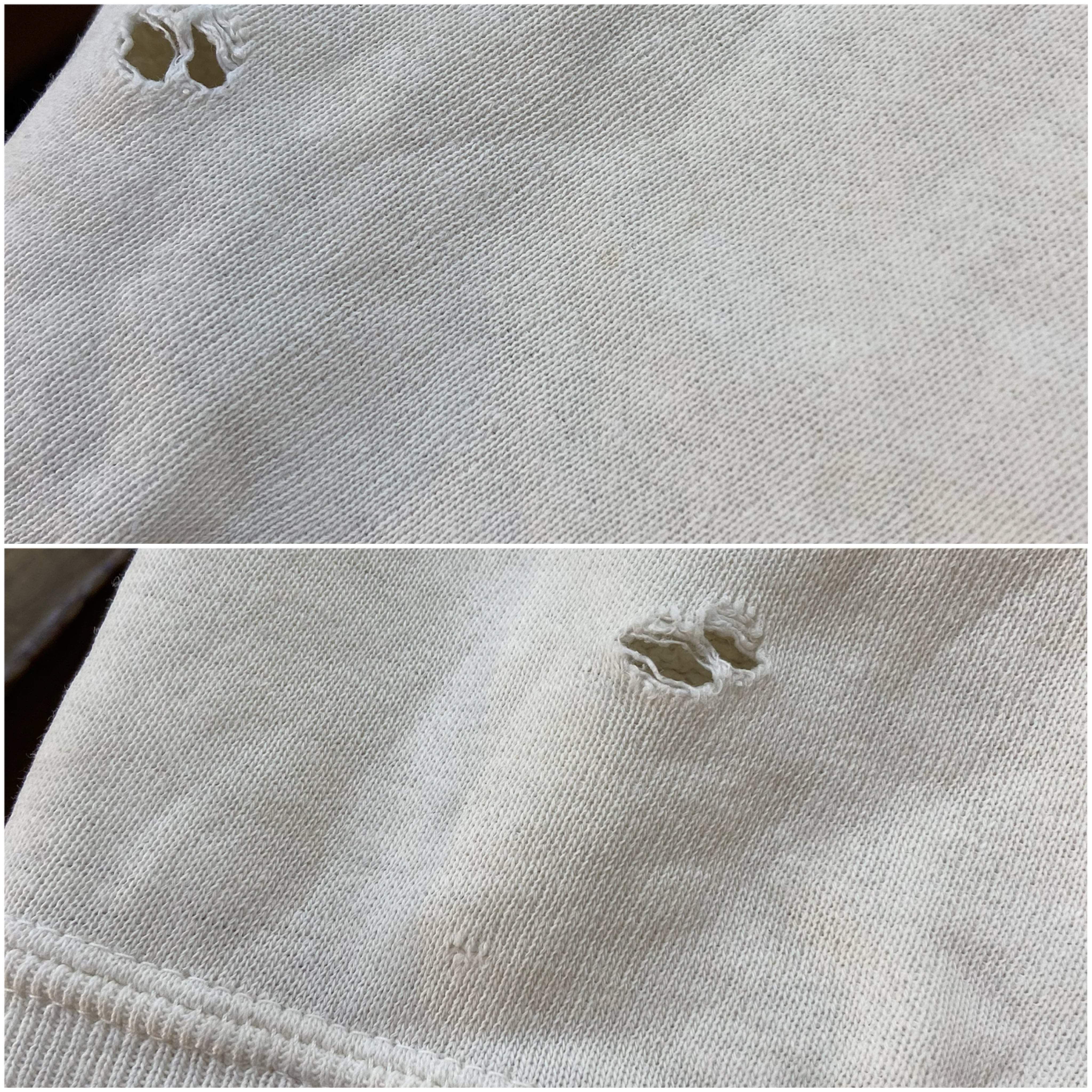 うっすらとしたシミや汚れ・穴のダメージや・縫い目付近の生地にも劣化の跡が見受けられますが、いずれもヴィンテージ特有のアジや雰囲気として捉えていただければと思います。