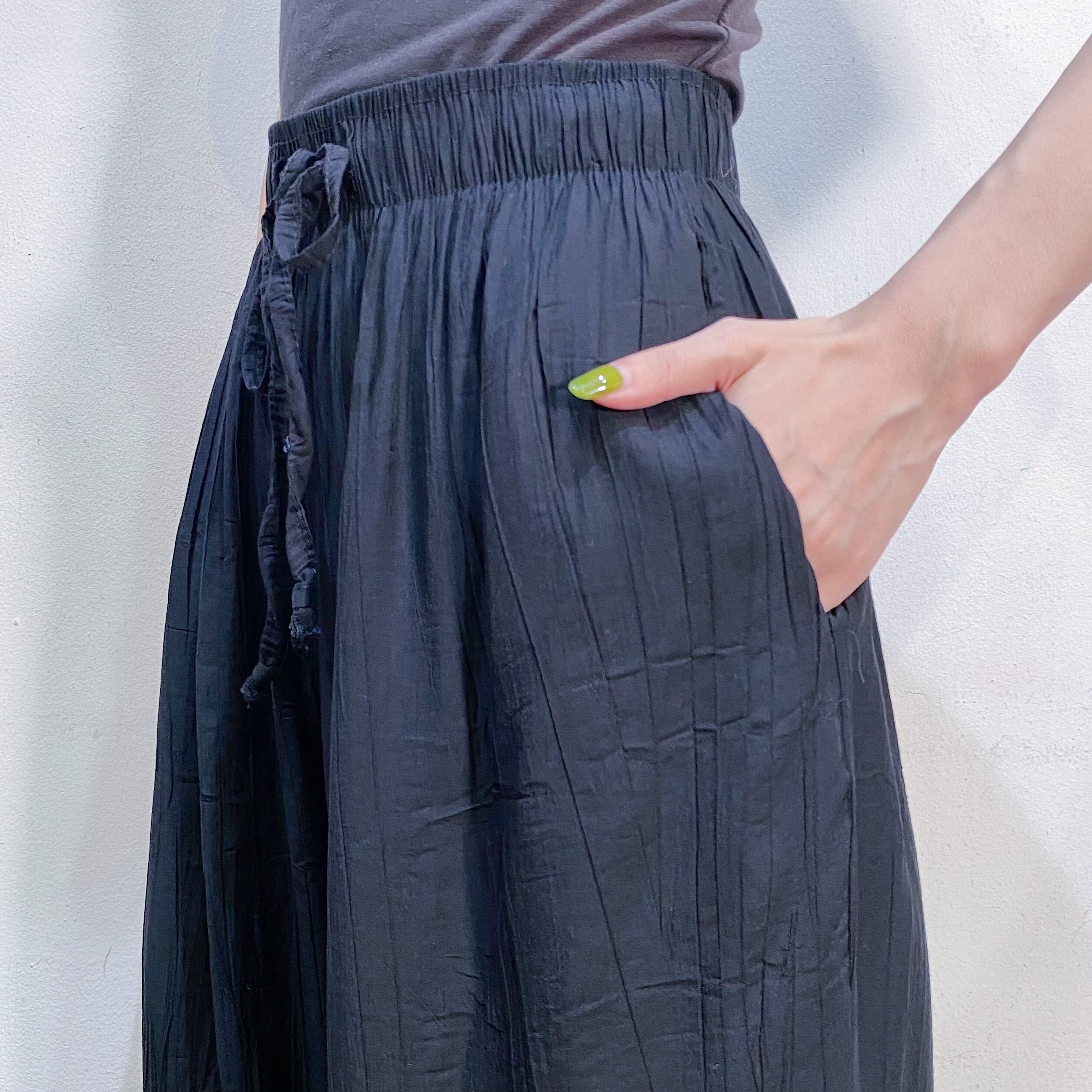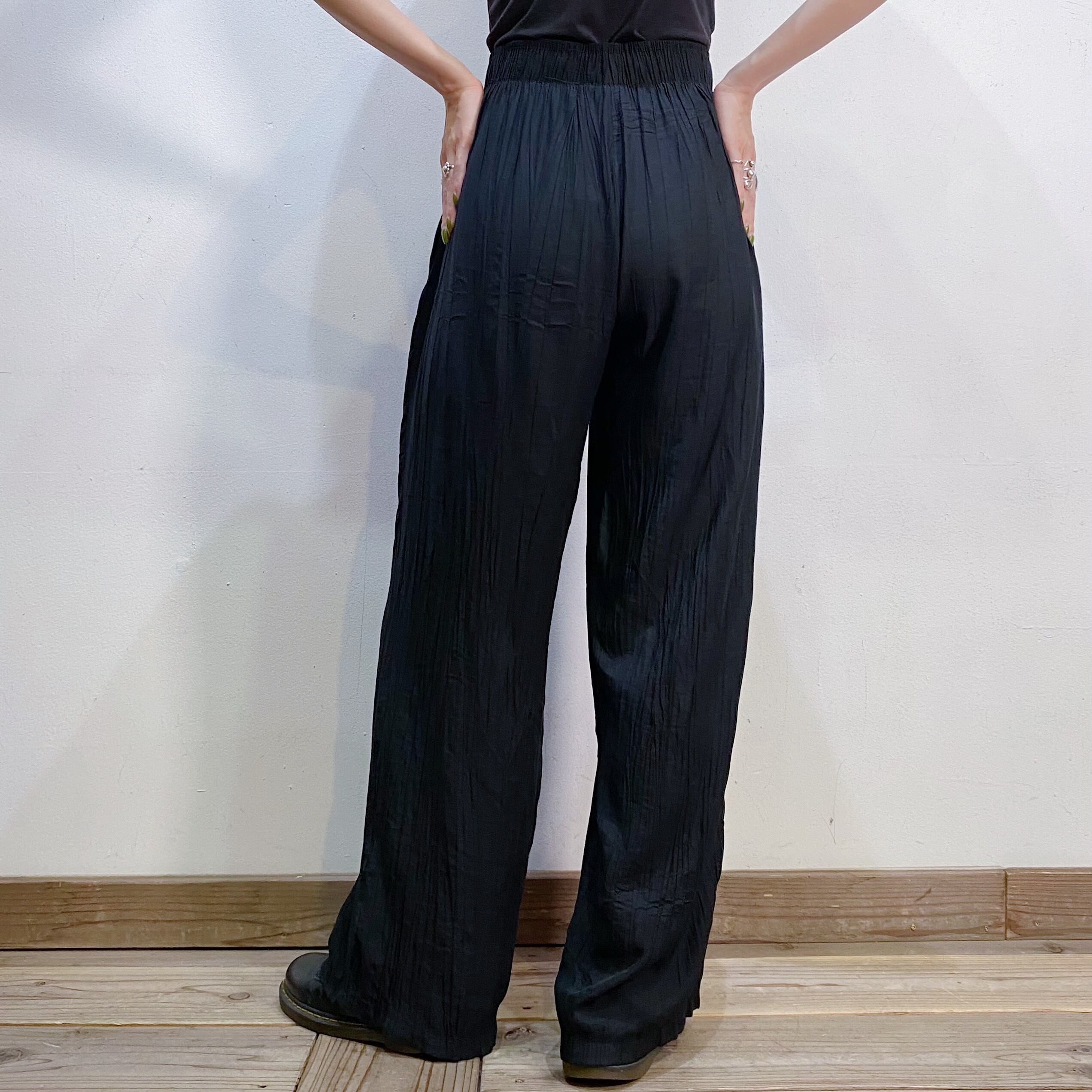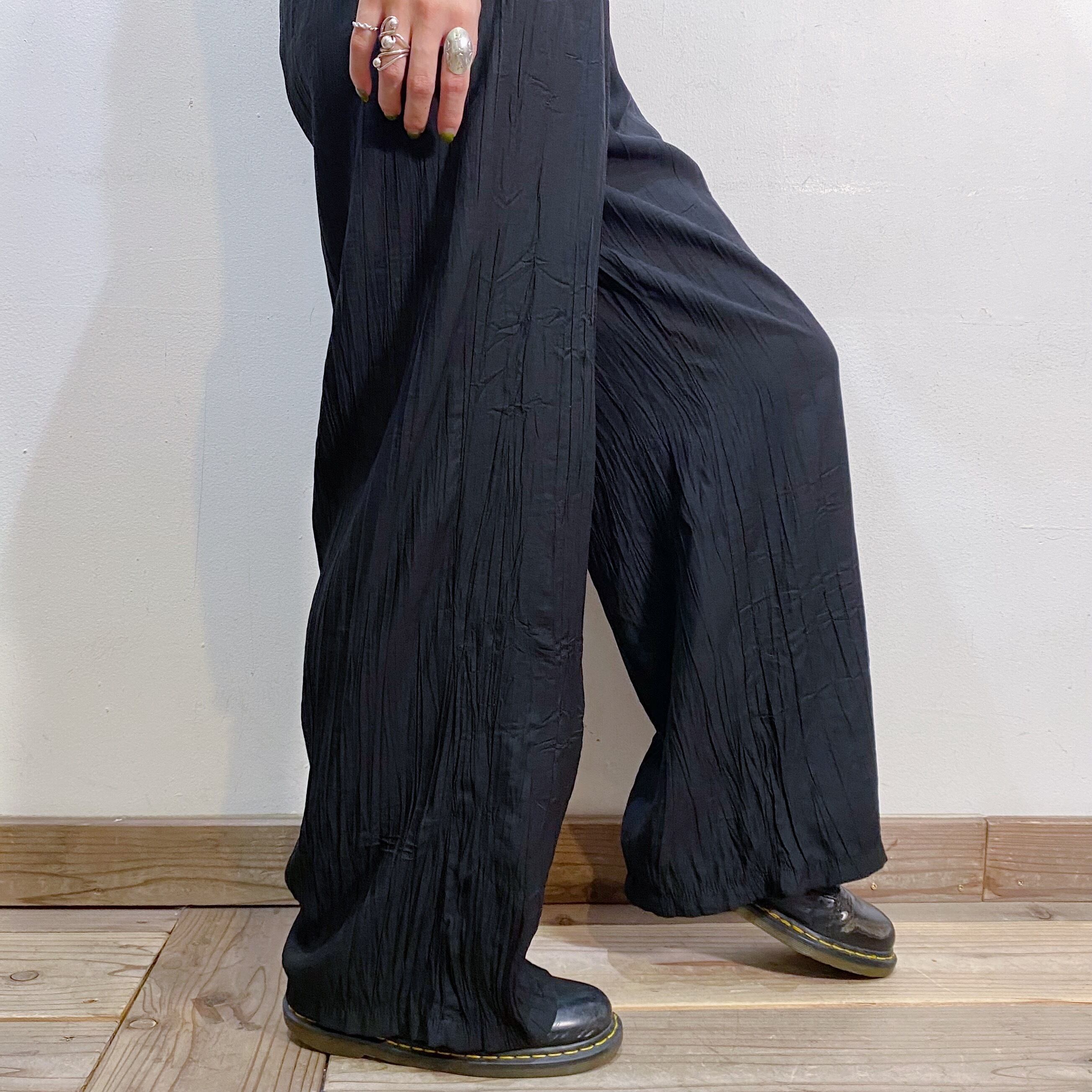 くしゅっと伸縮性のある素材感がユニークで可愛い、ワイドパンツです。