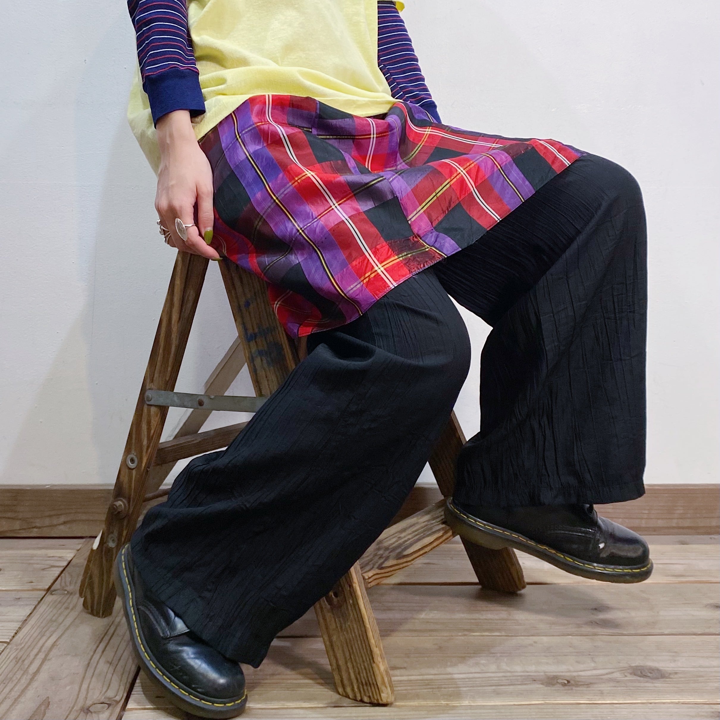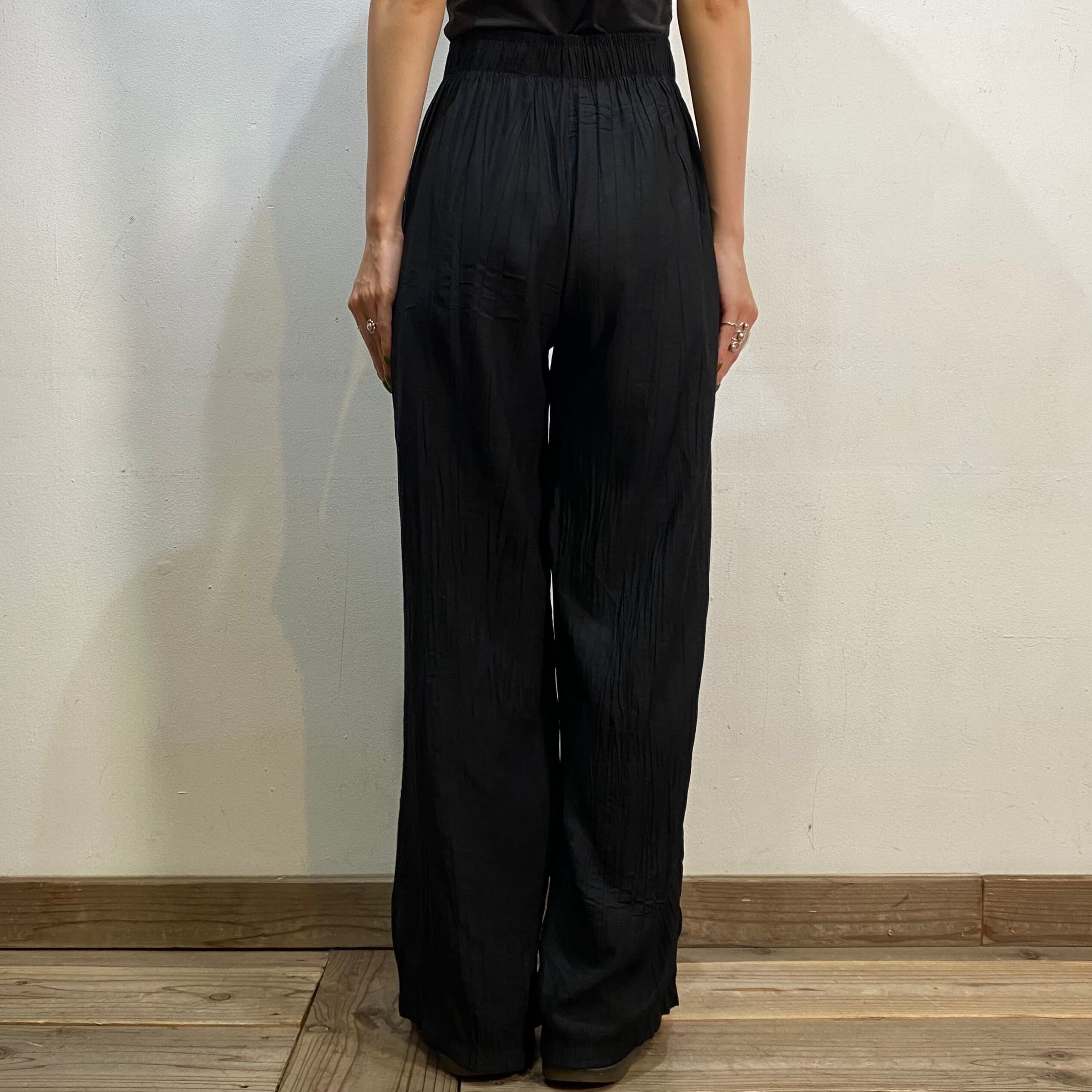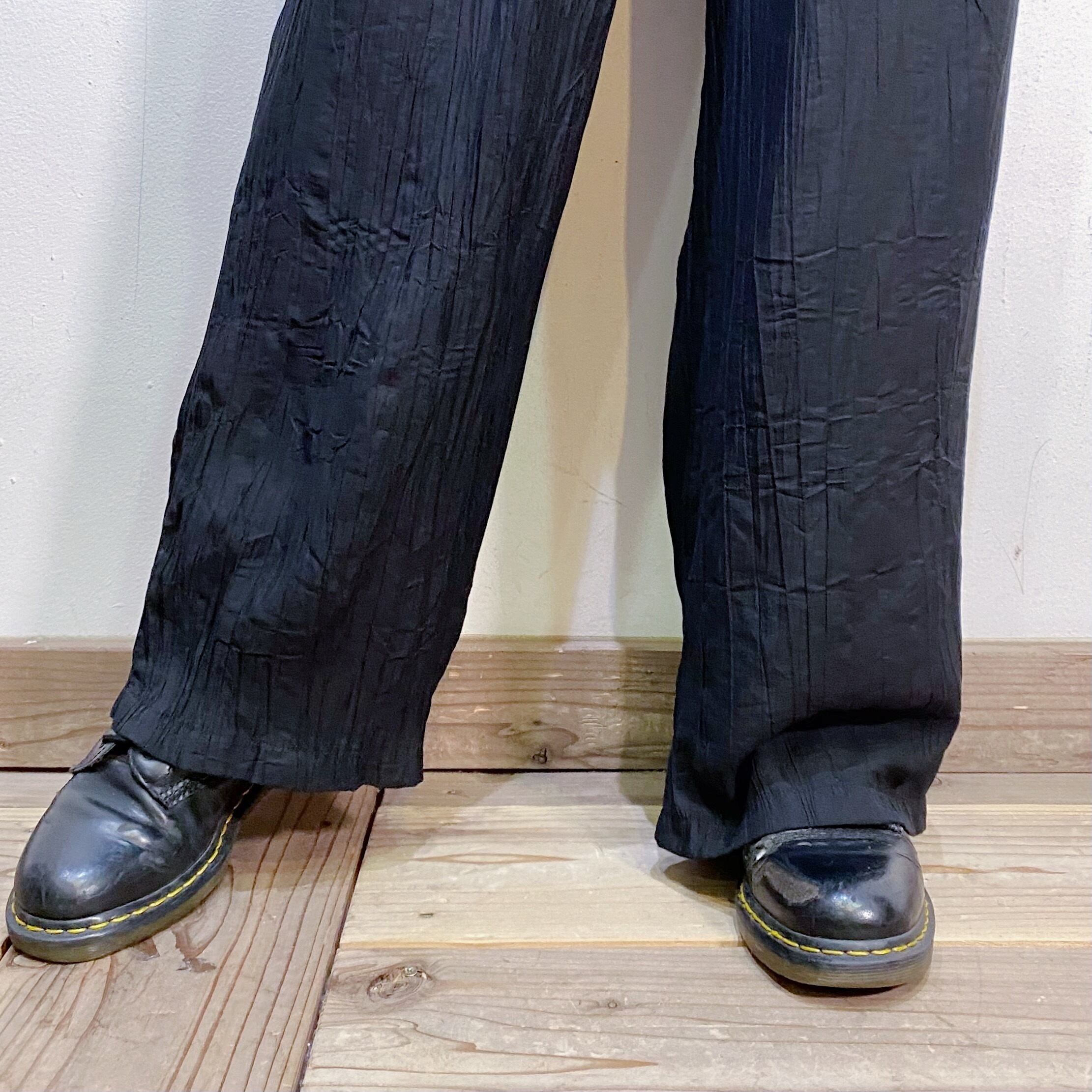 くしゅっと伸縮性のある素材感がユニークで可愛い、ワイドパンツです。