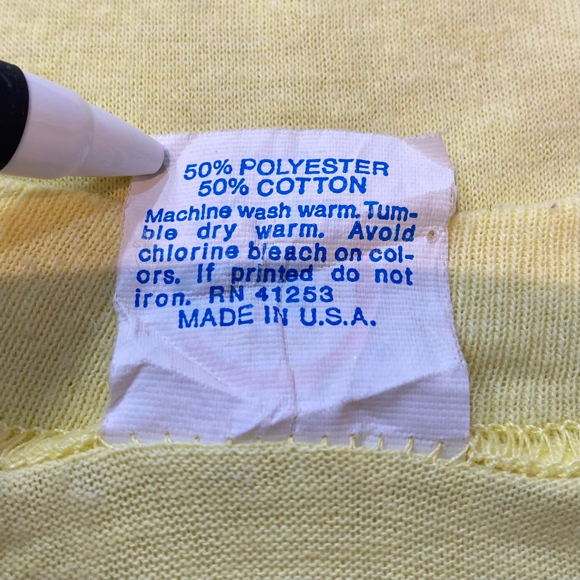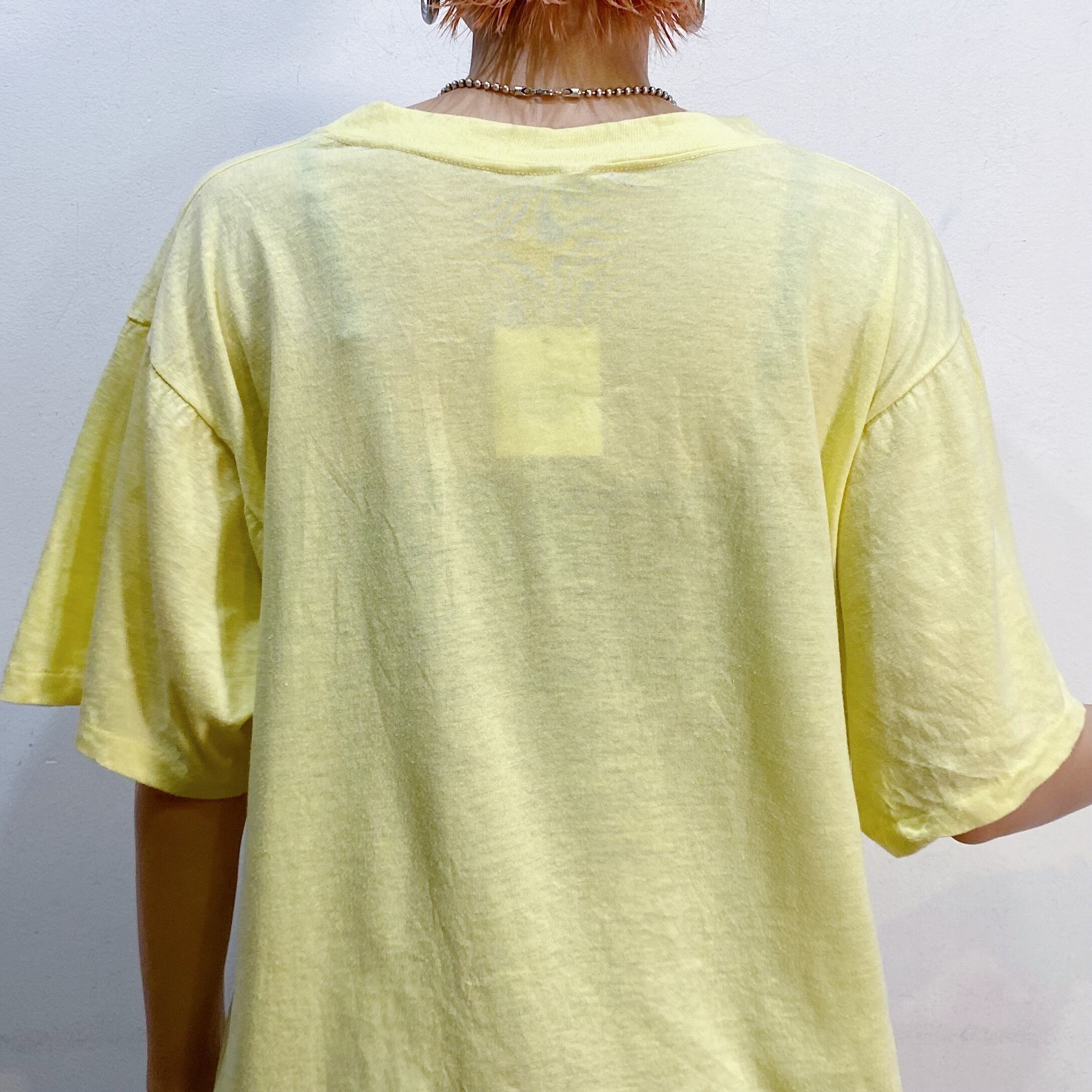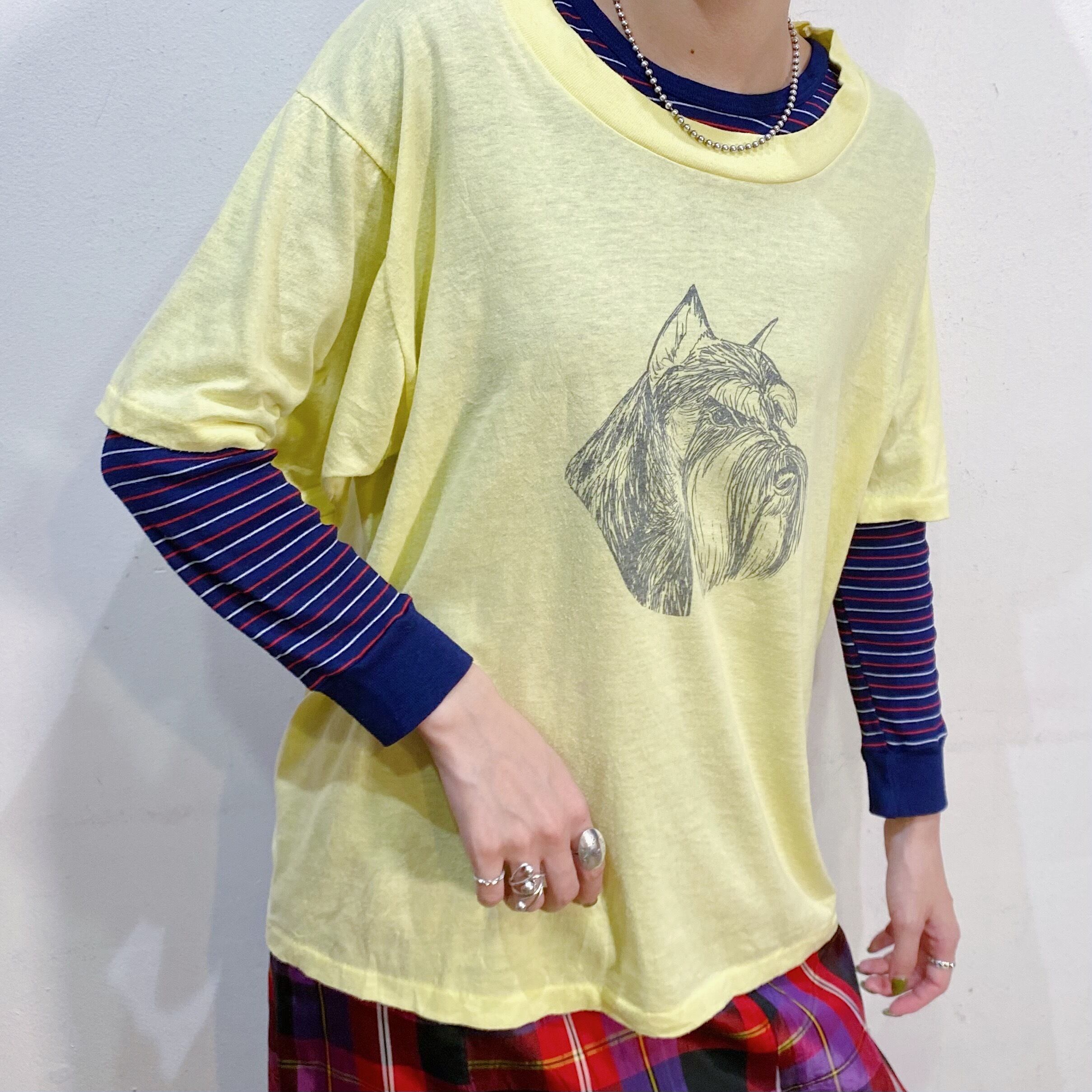 淡いイエローのボディにシュナウザーの顔がプリントされた、80年代のTシャツです。