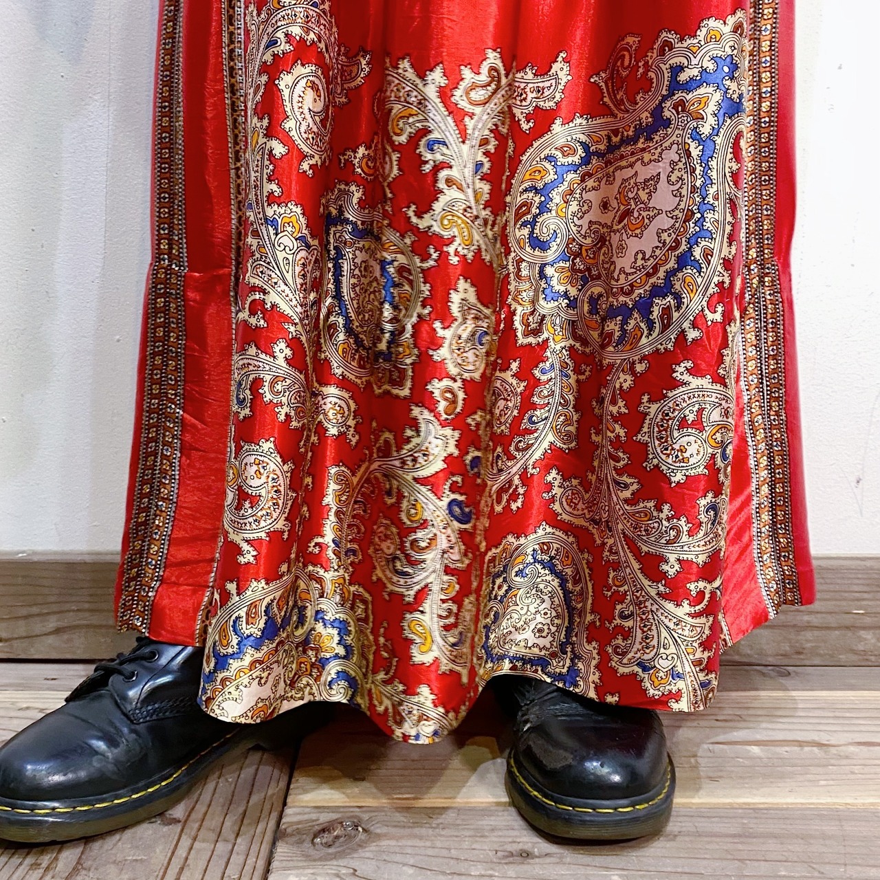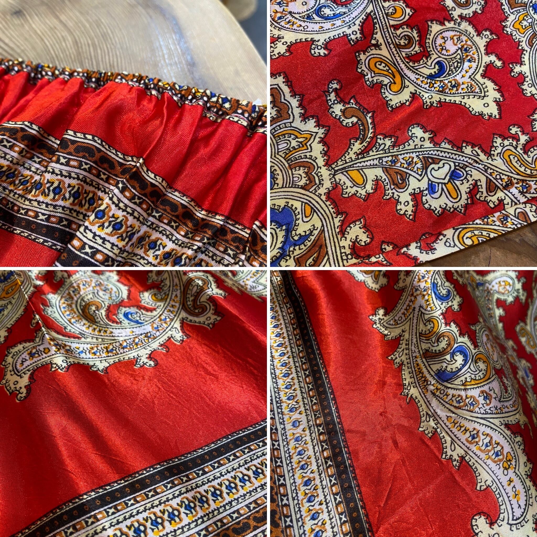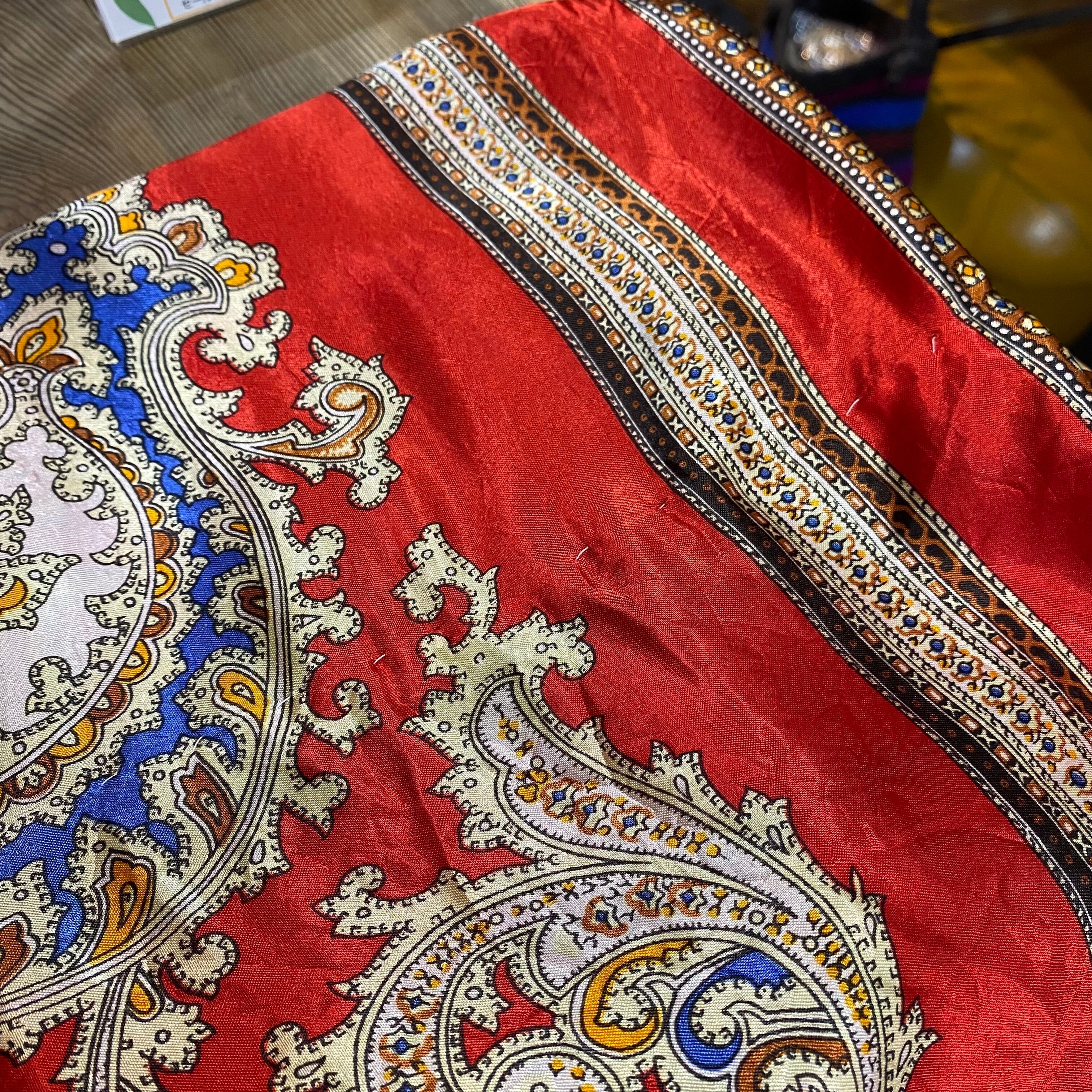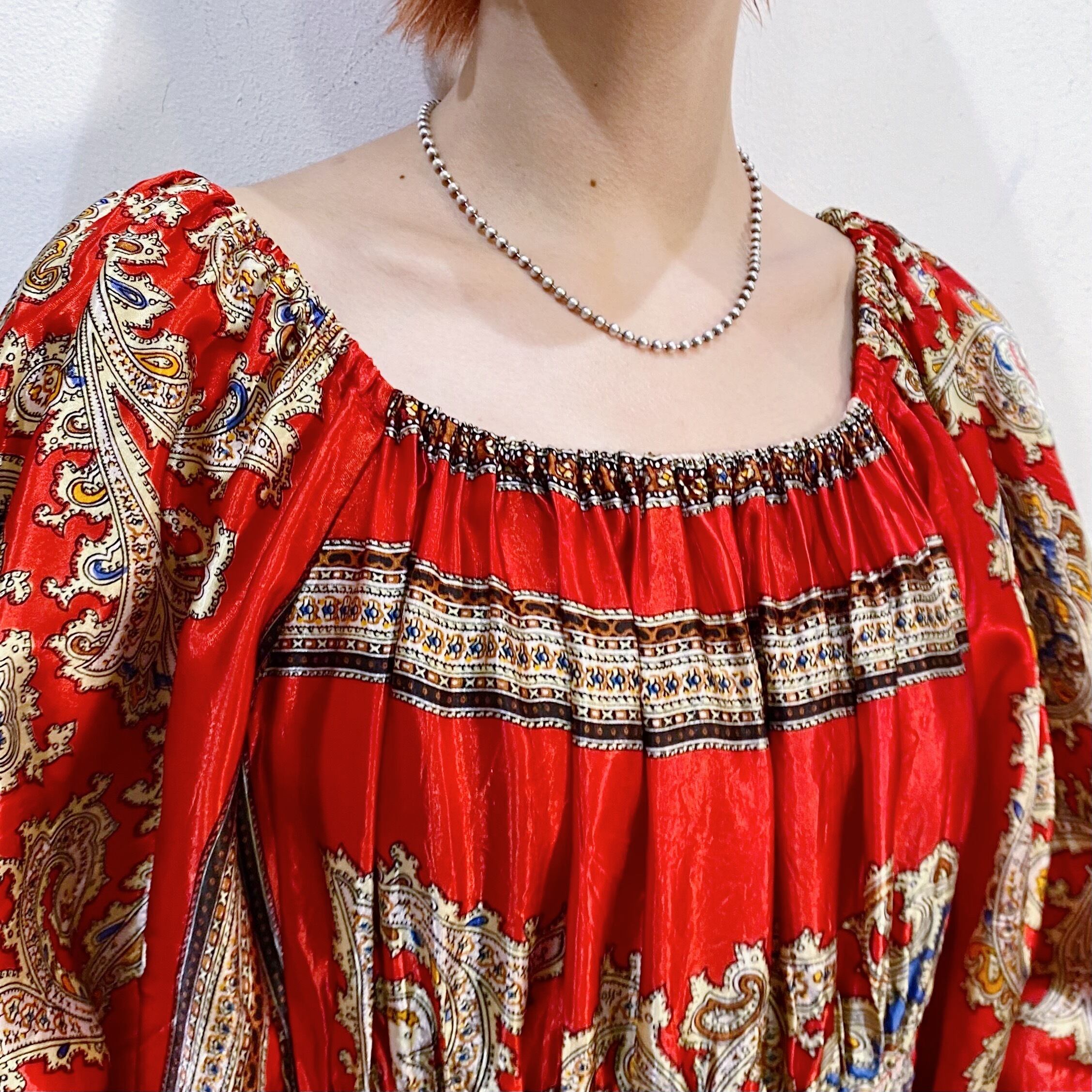 スカーフのような生地を用いて作られた70年代のスペシャルなロングワンピースです。