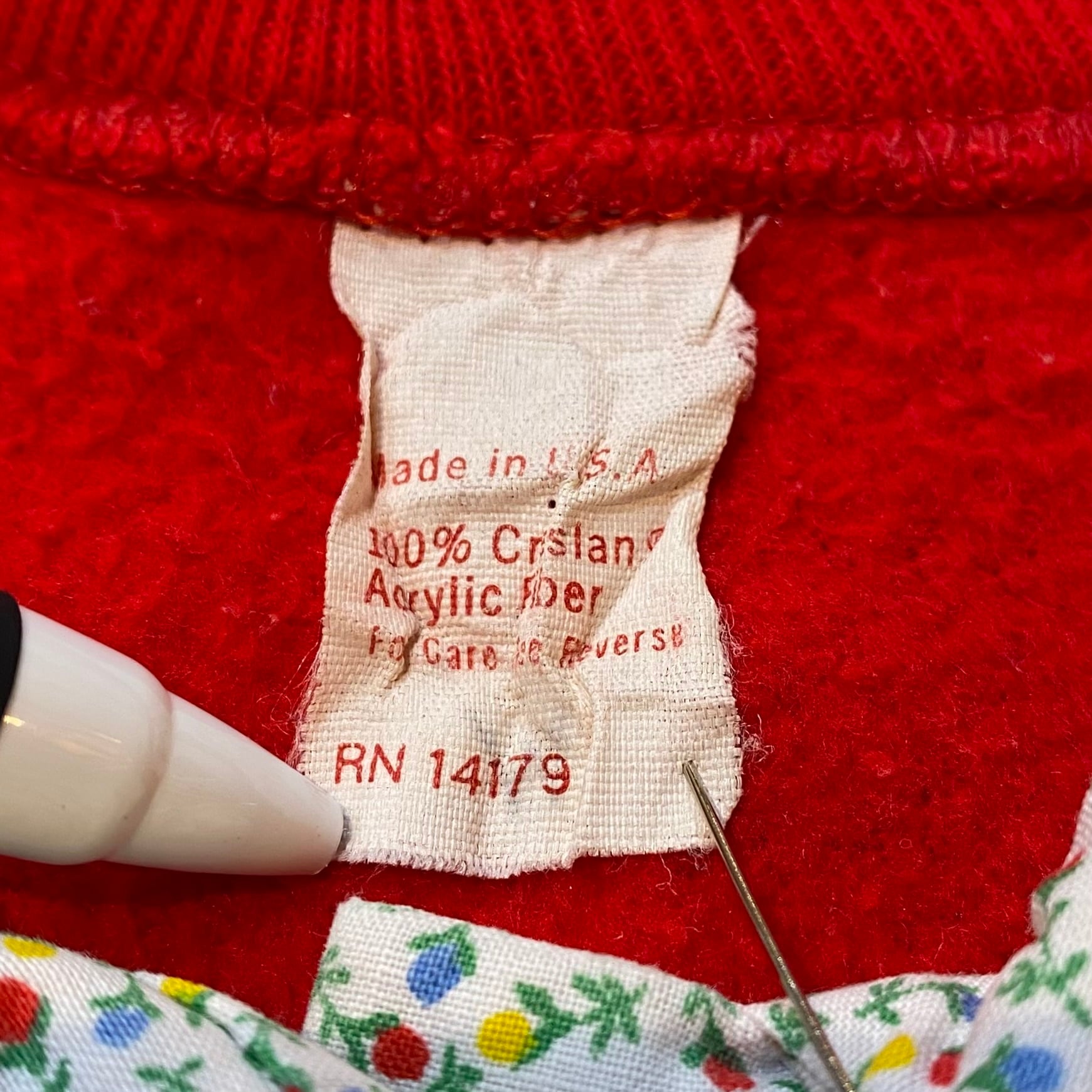 袖に軽度のダメージを裏から接着芯で塞いだ跡やヨゴレが見受けられます。
