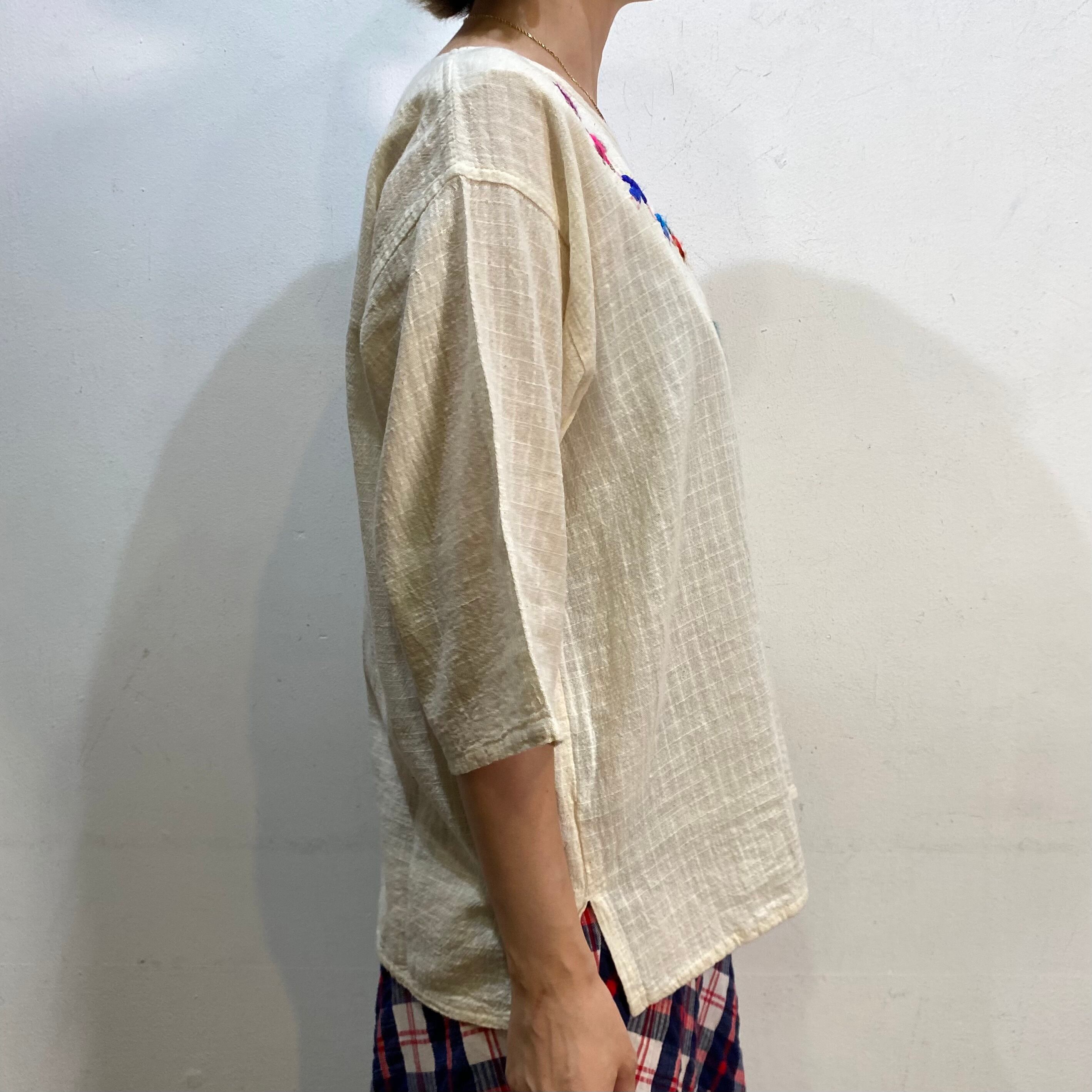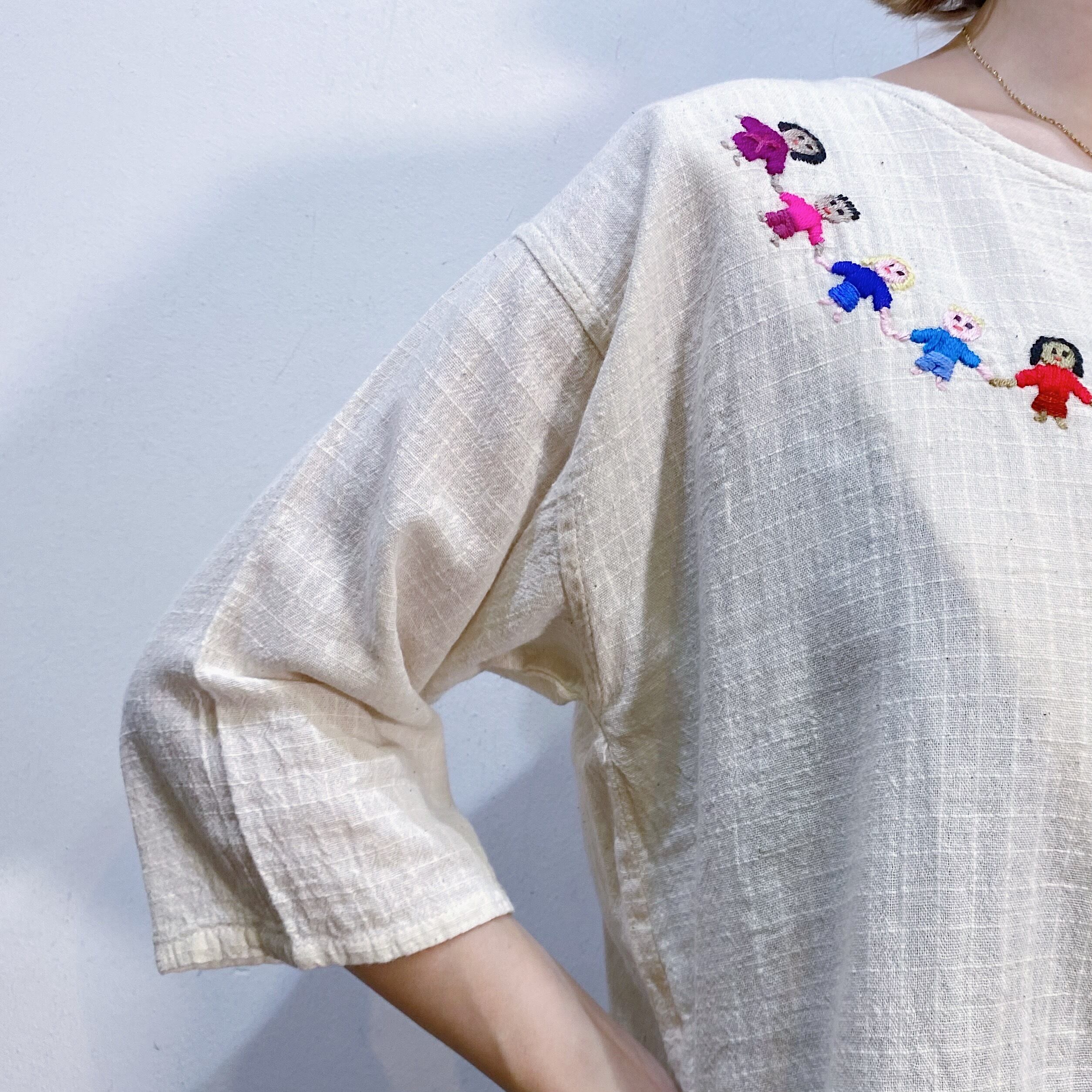 カラフルな刺繍が映えておりますが、全てグアテマラの手刺繍でとても愛らしさのある一枚。