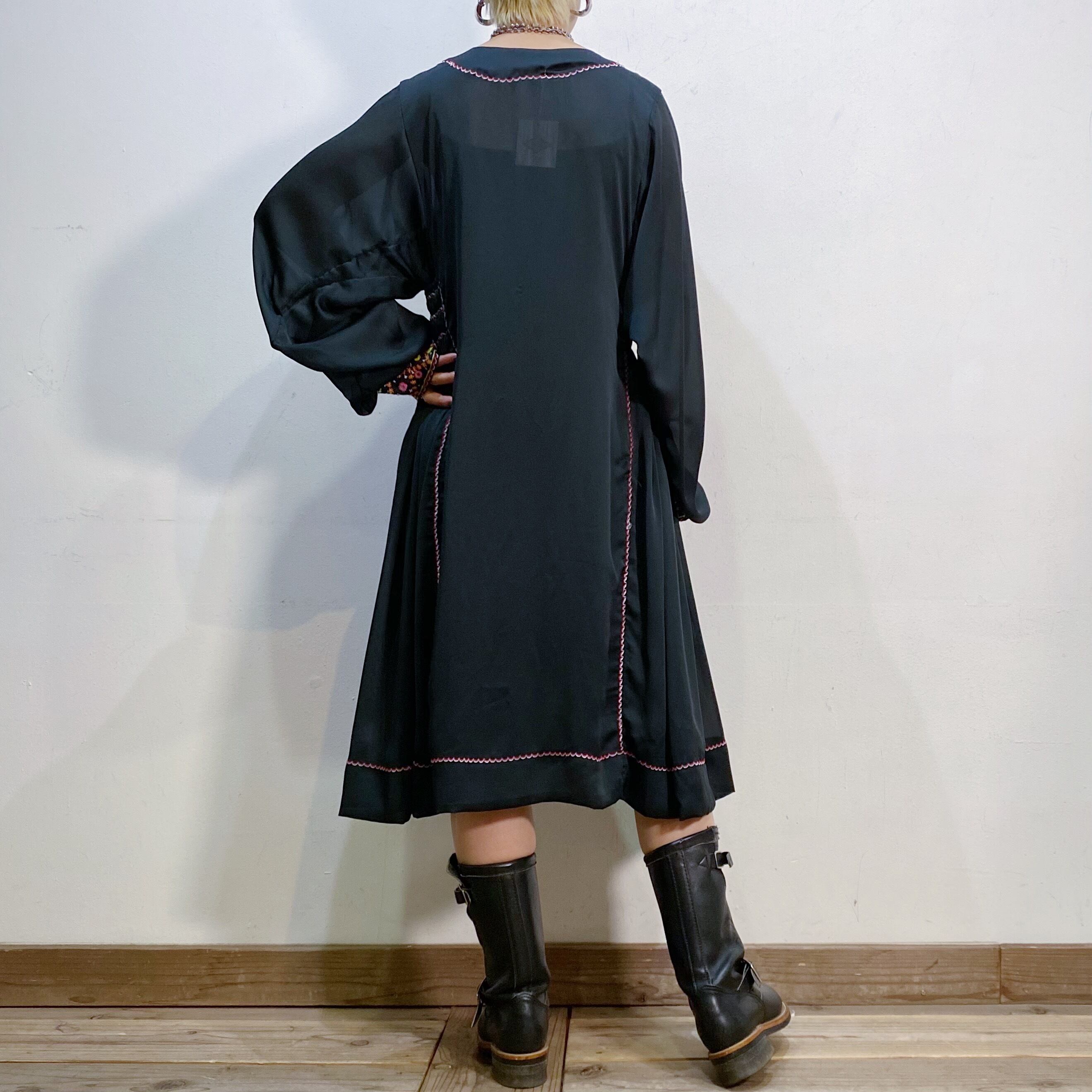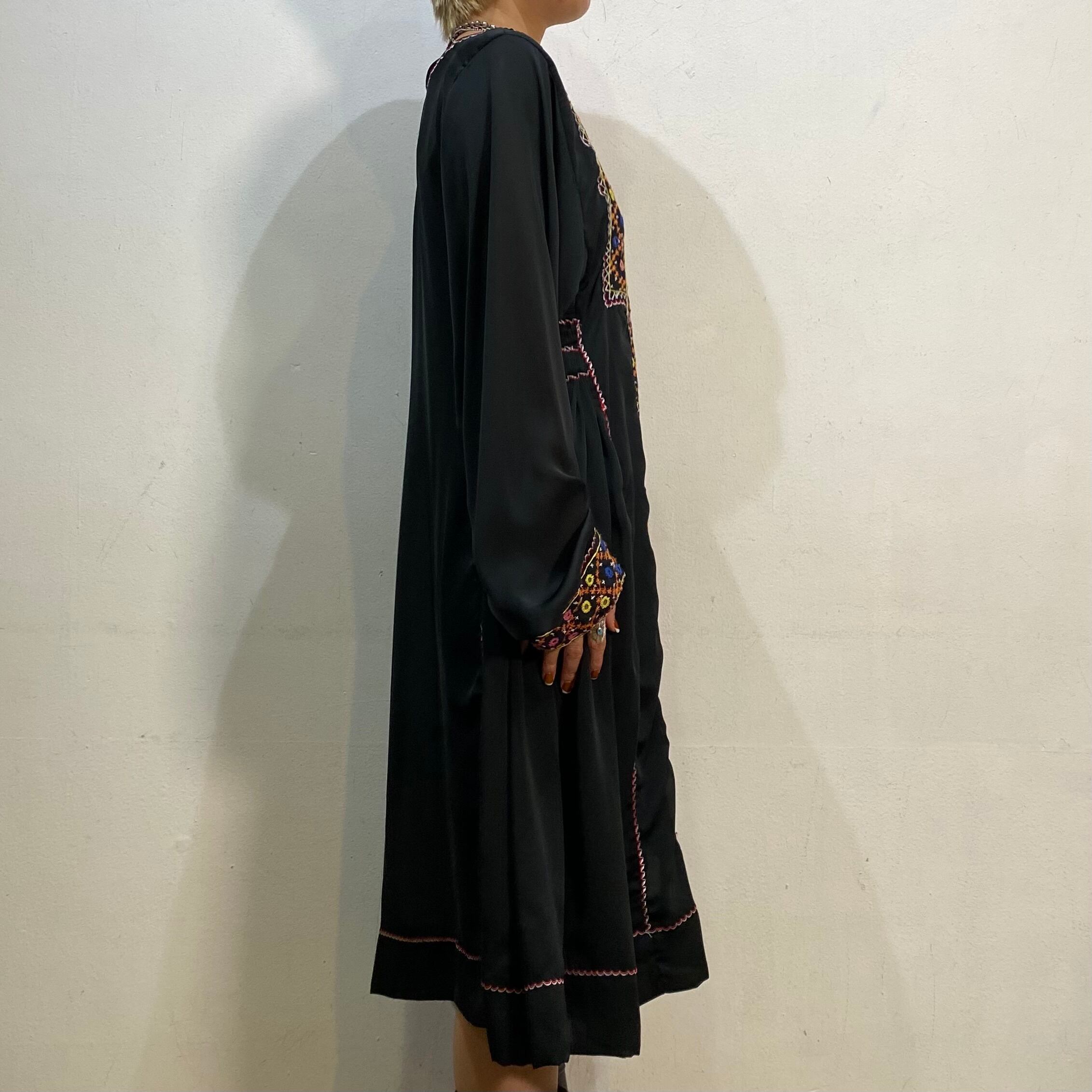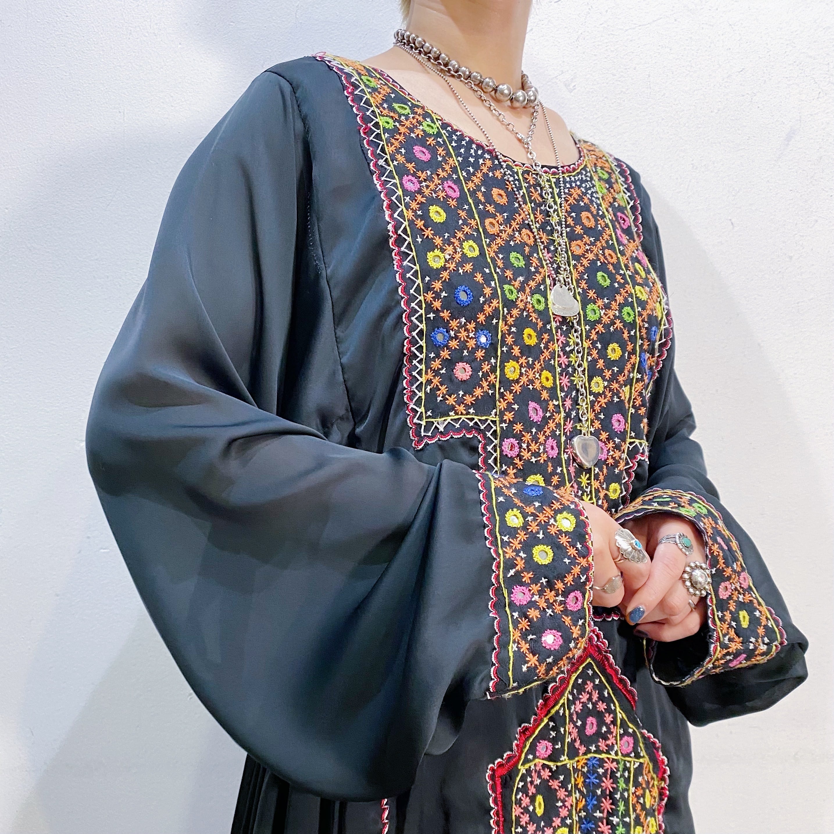 ブラックベースにカラフルな刺繍が映え、透け感のある軽やかな素材で作られております。