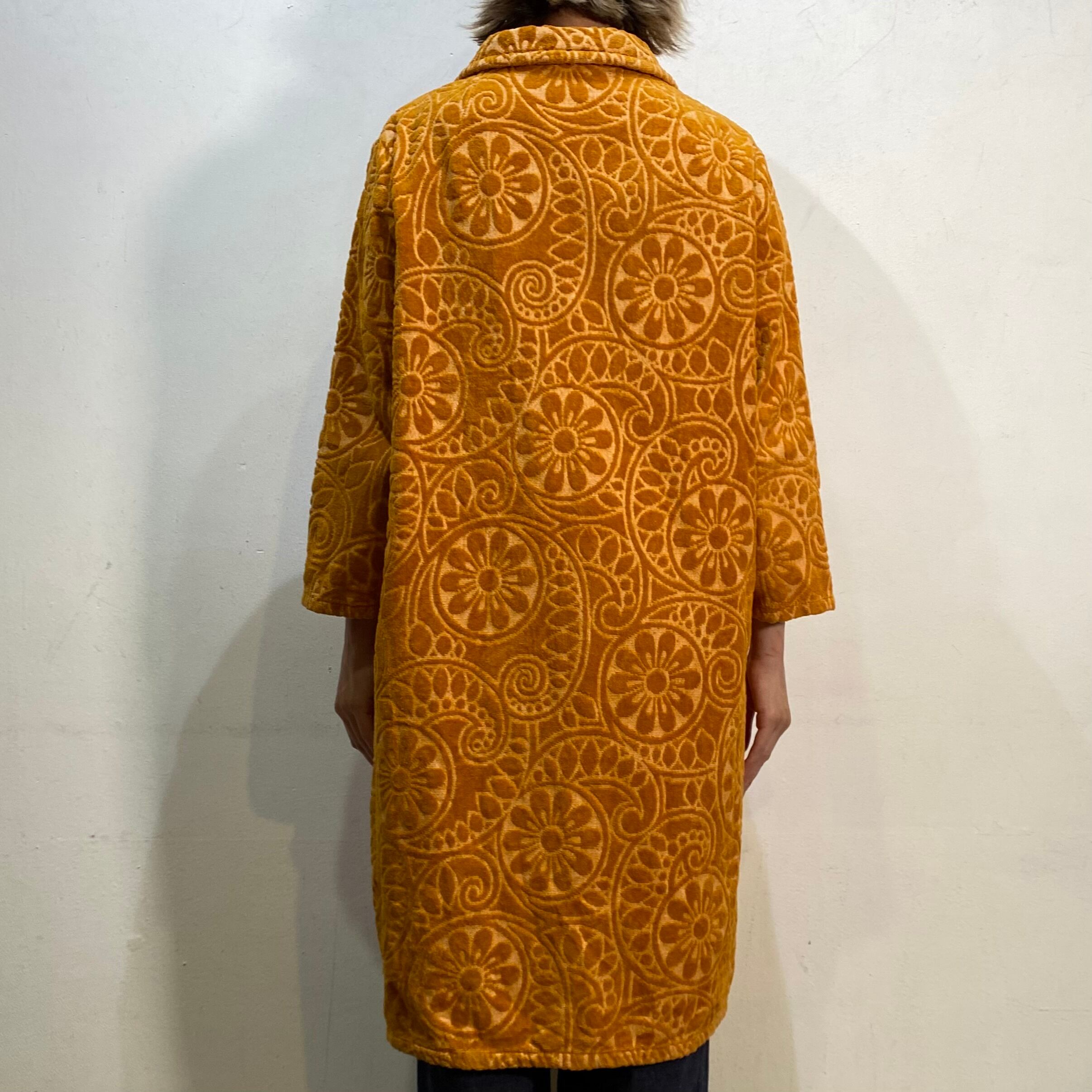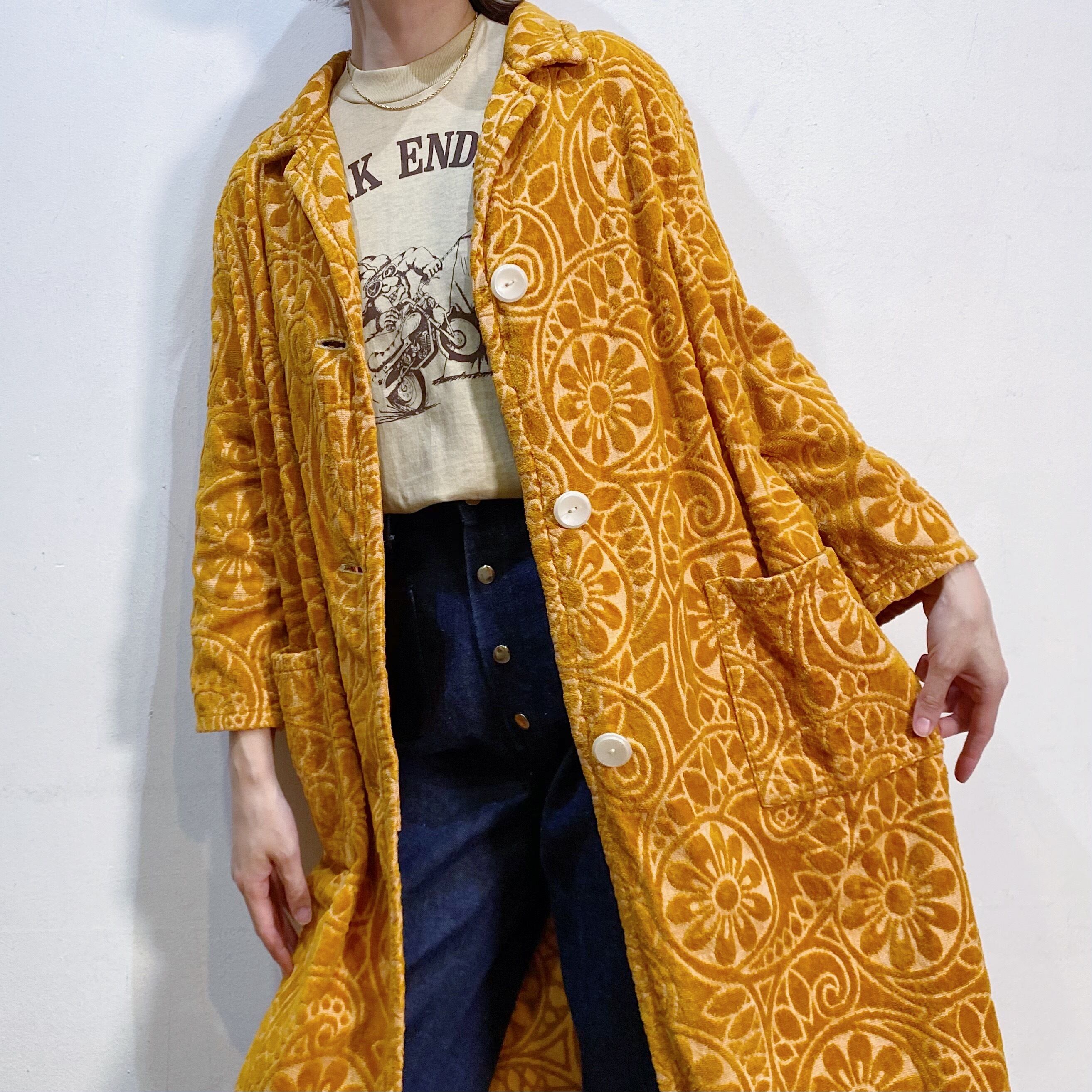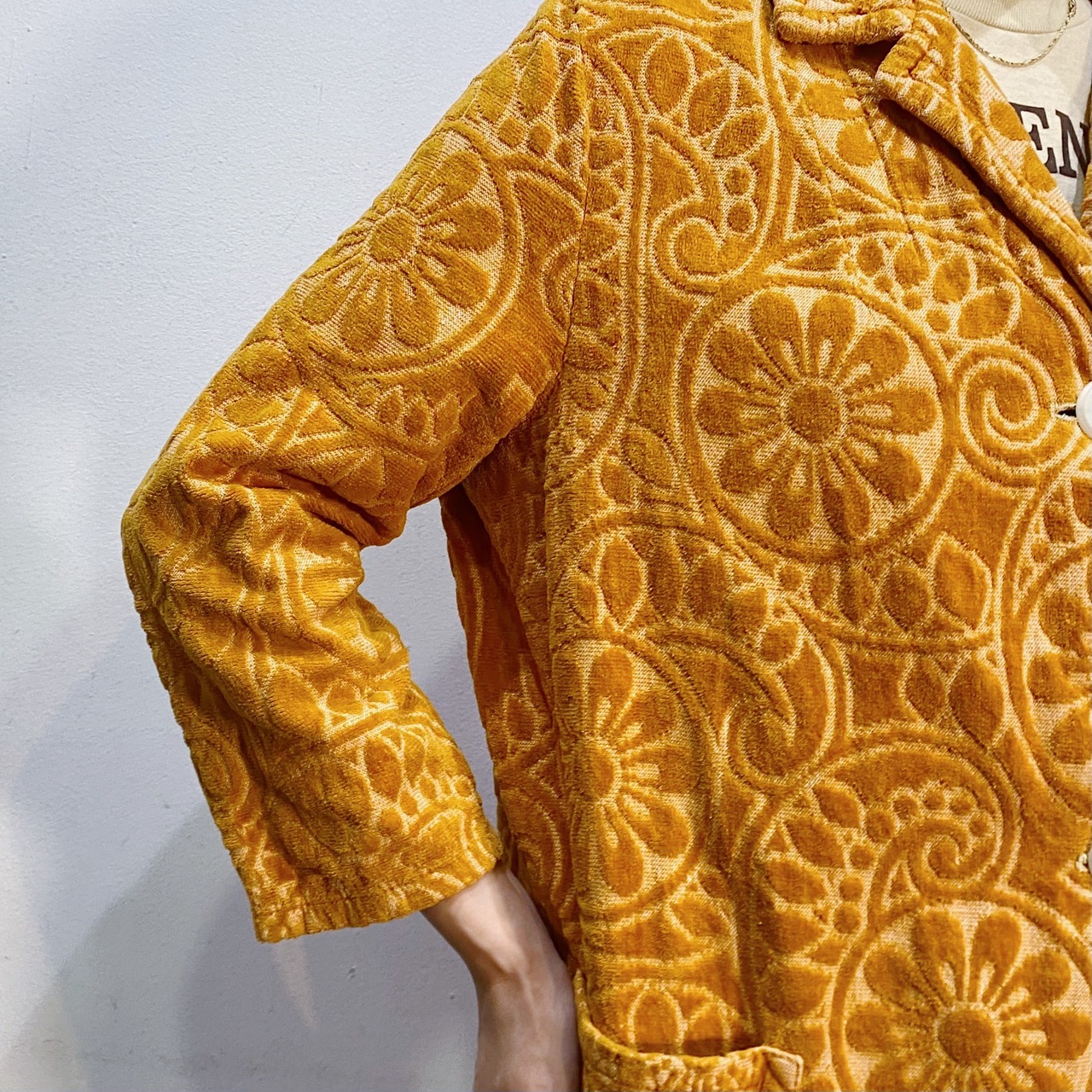 オレンジカラーにお花モチーフがとっておきに可愛い、70年代のパイル地ガウンです。