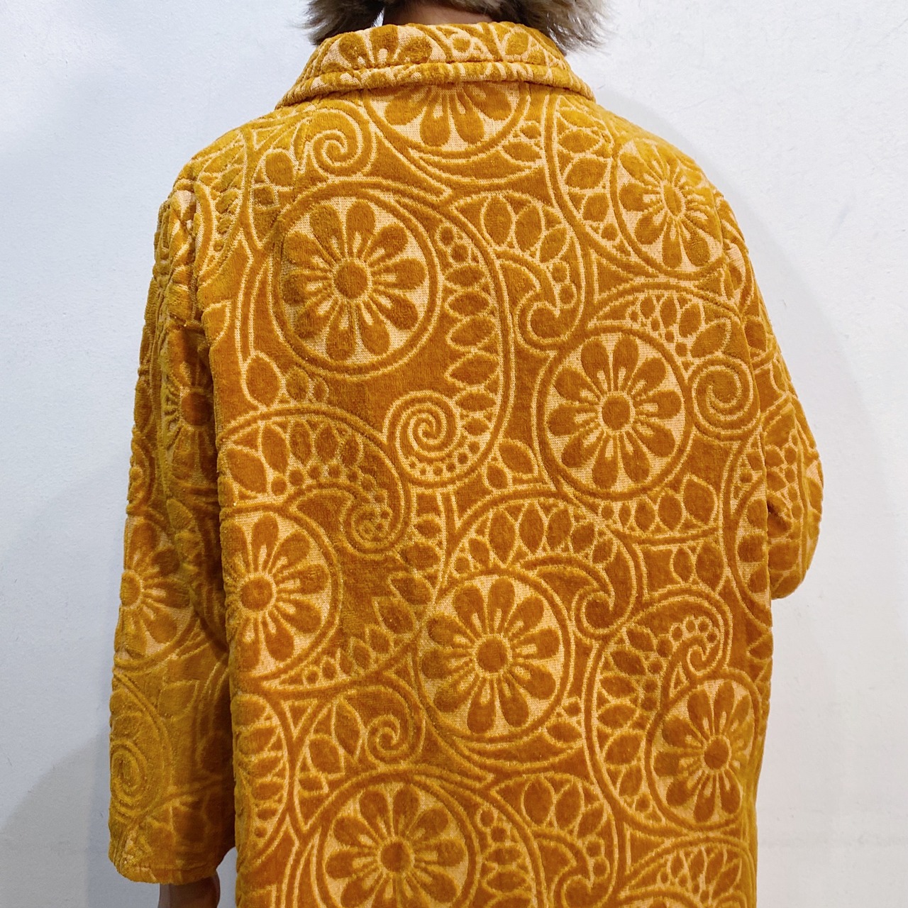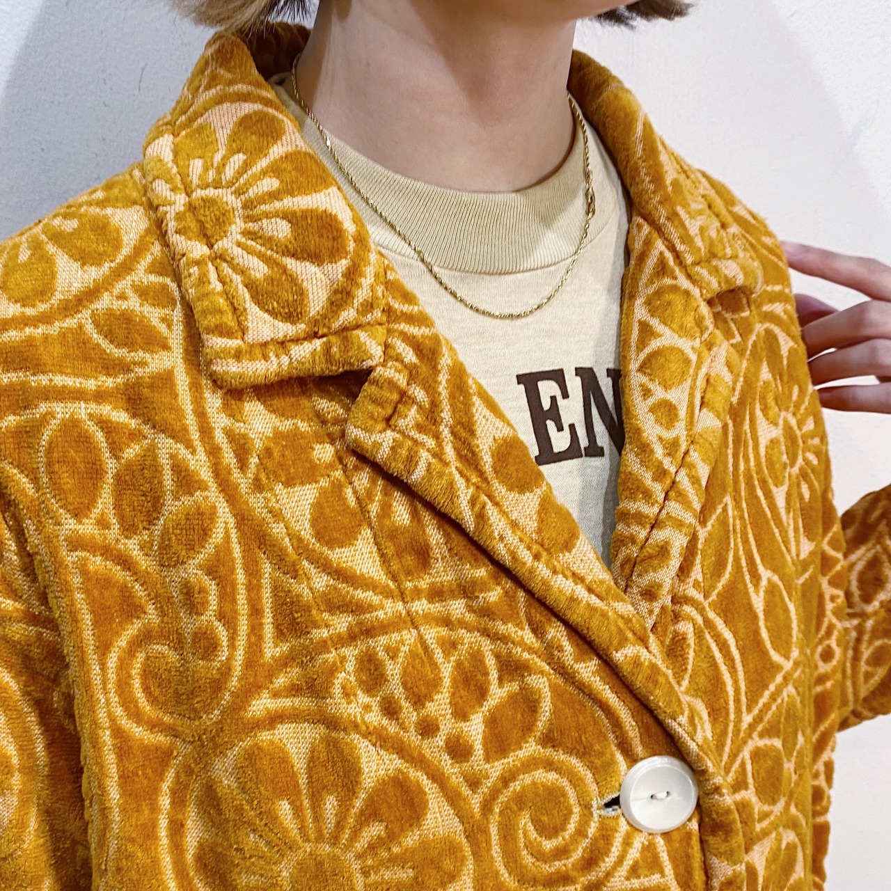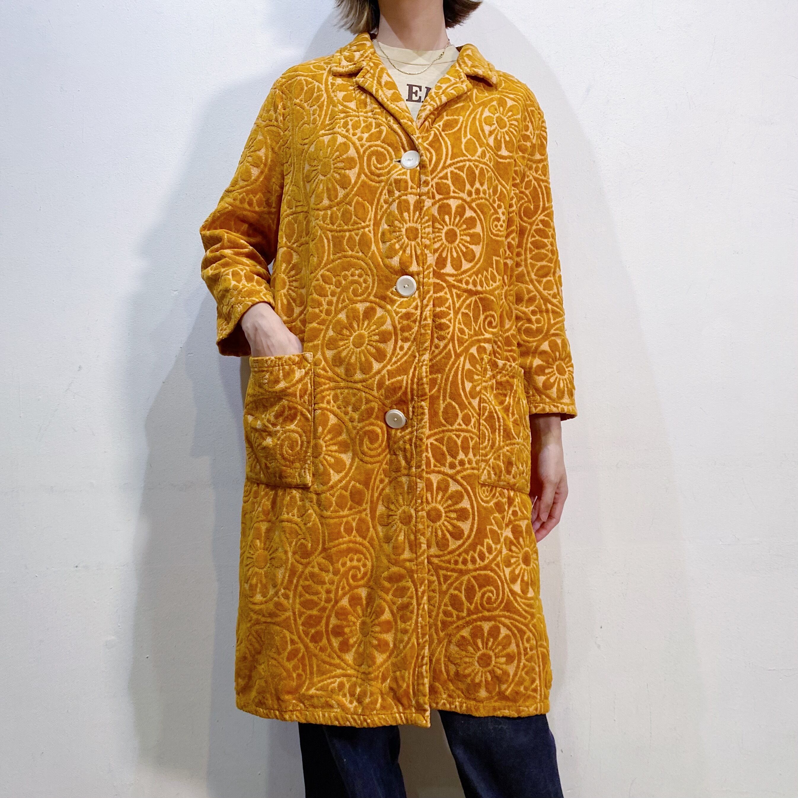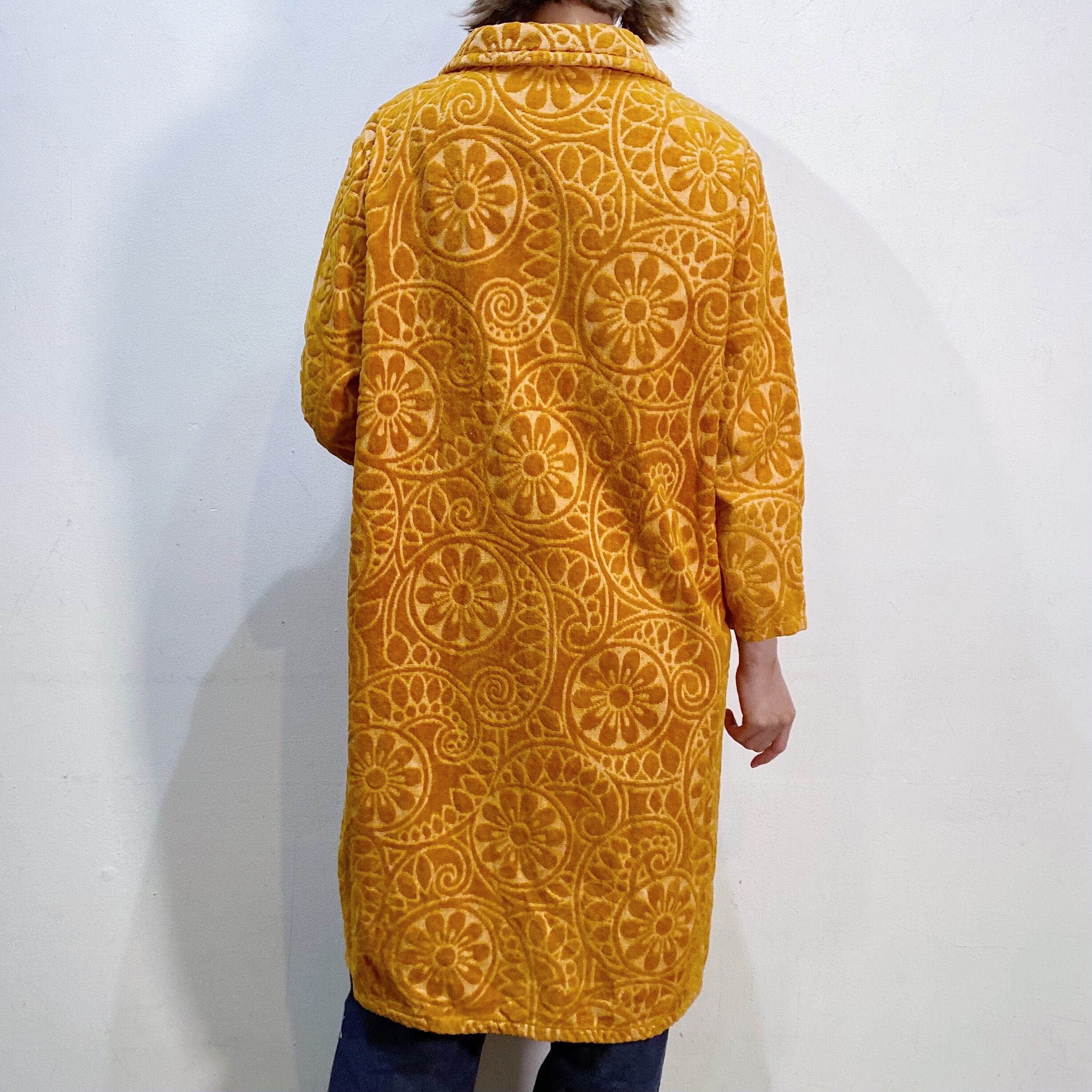 オレンジカラーにお花モチーフがとっておきに可愛い、70年代のパイル地ガウンです。