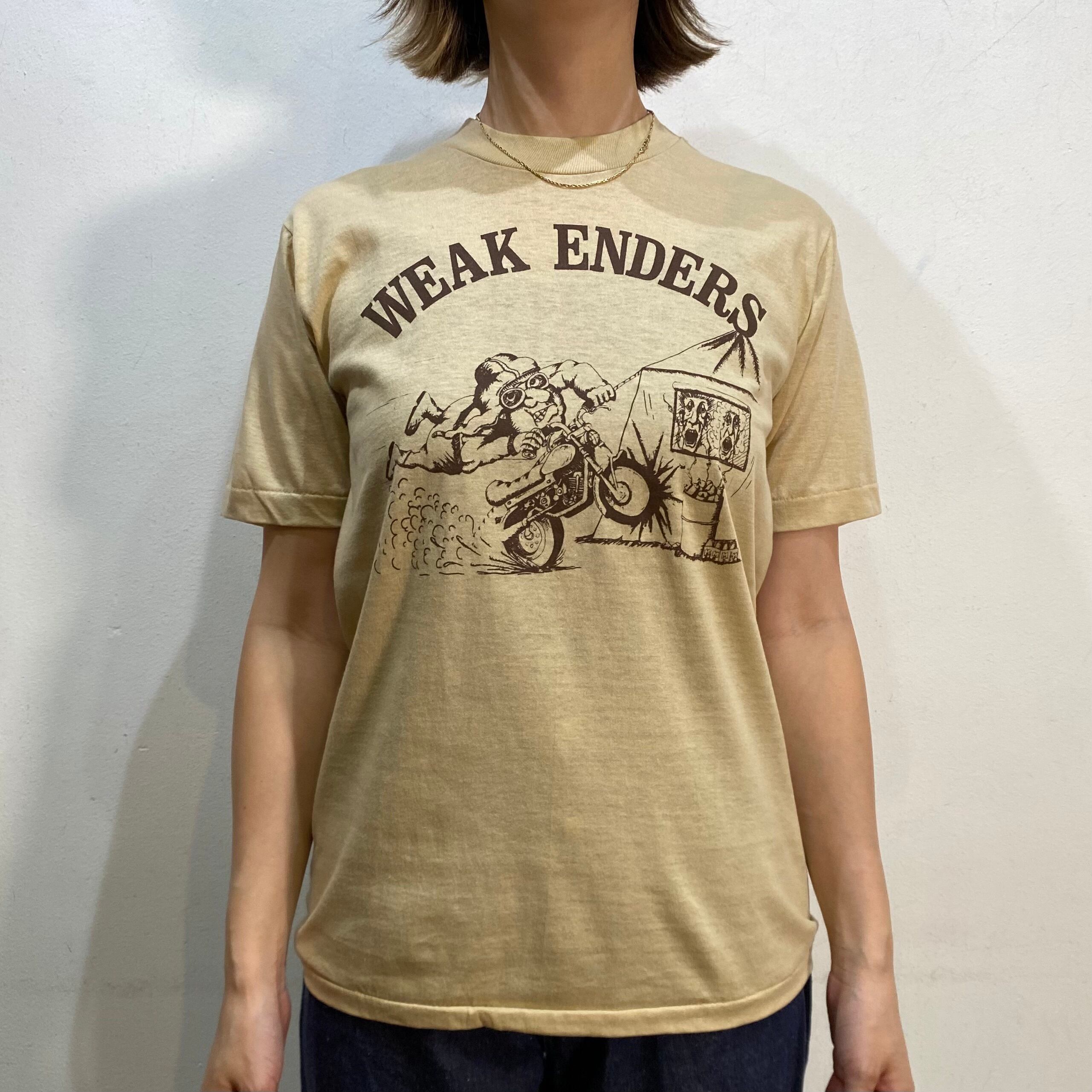 バイクに乗った男性のコミカルなプリントがヴィンテージTらしい、80年代のTシャツです。