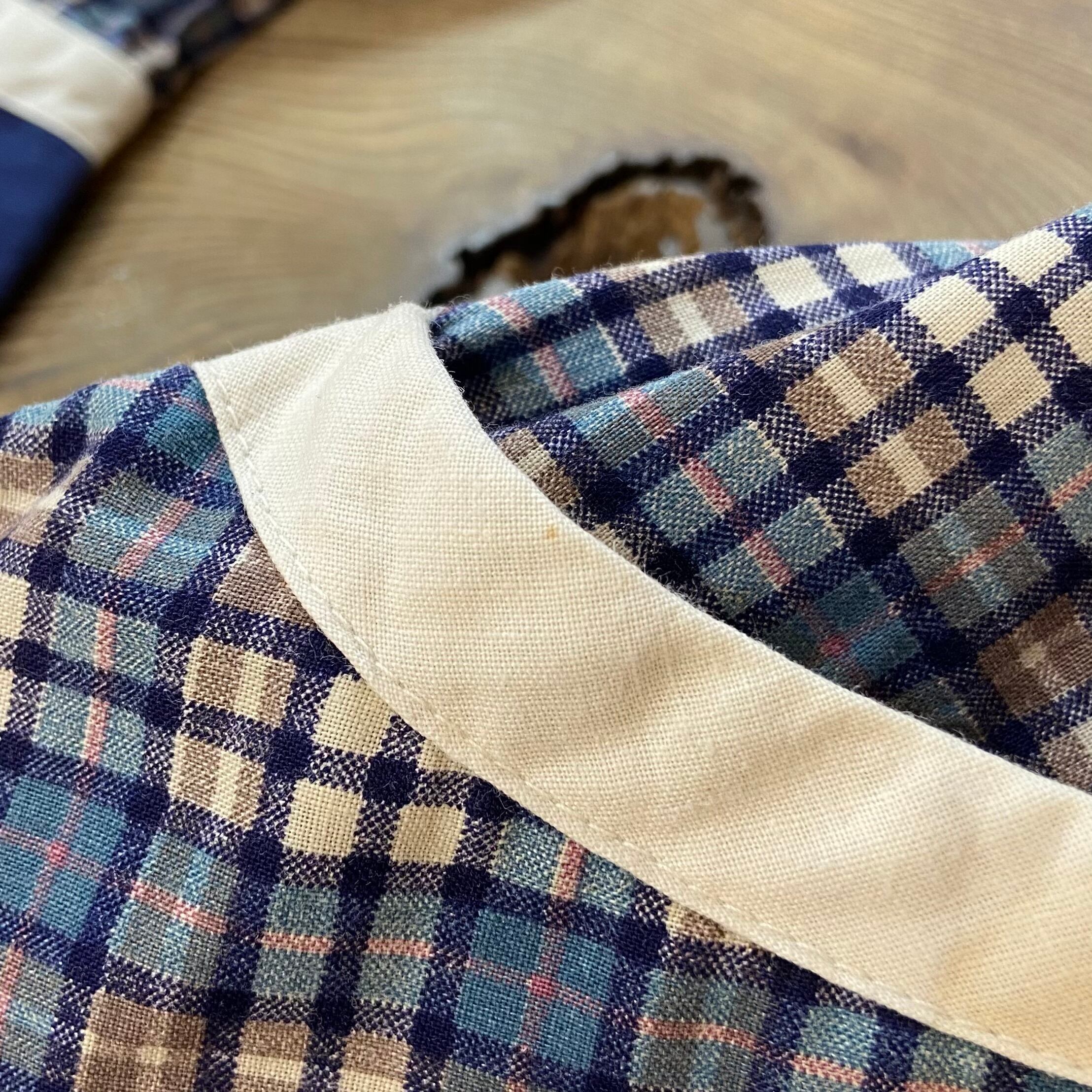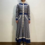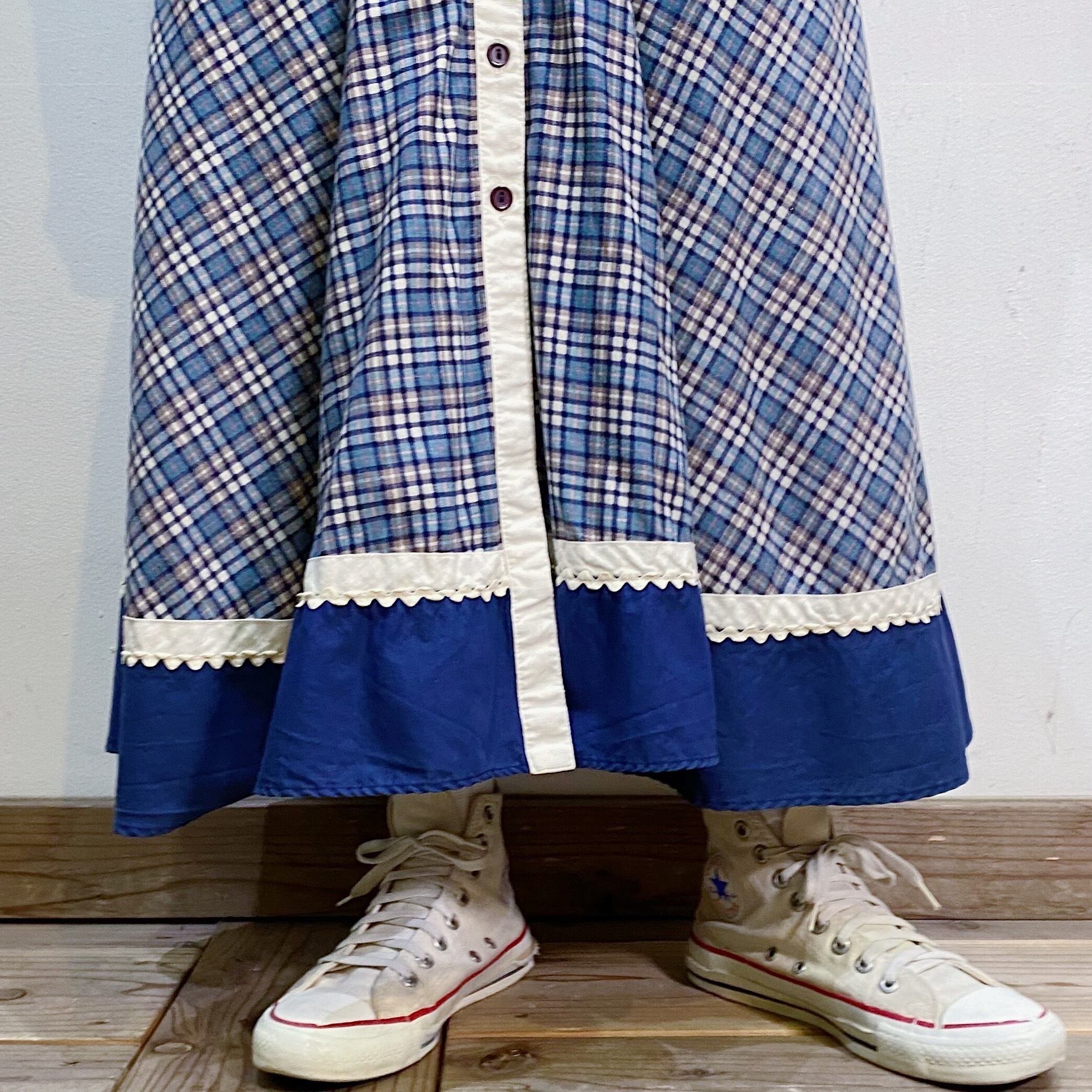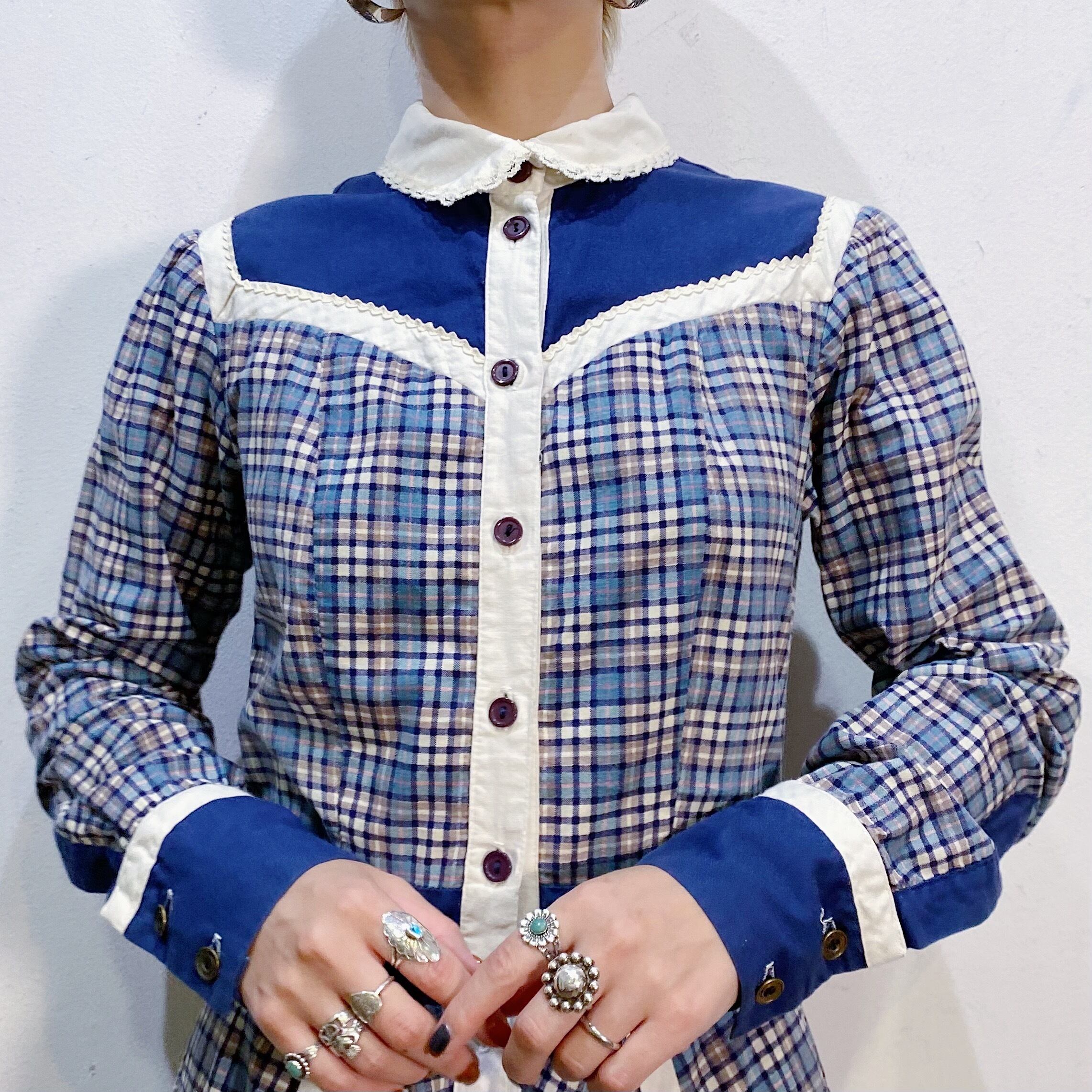 70s blue plaid cotton dress(maybe GUNNESAX but no tag)