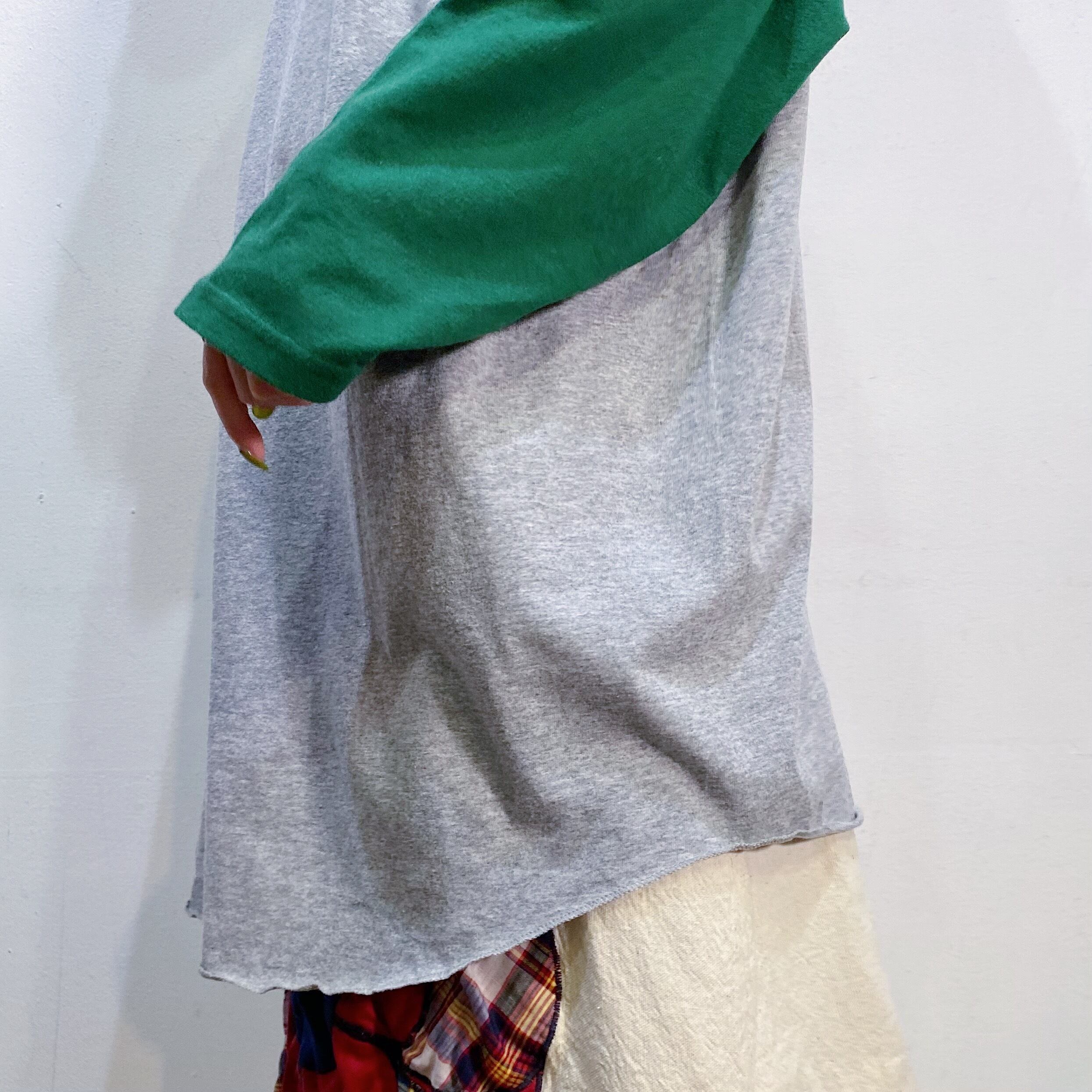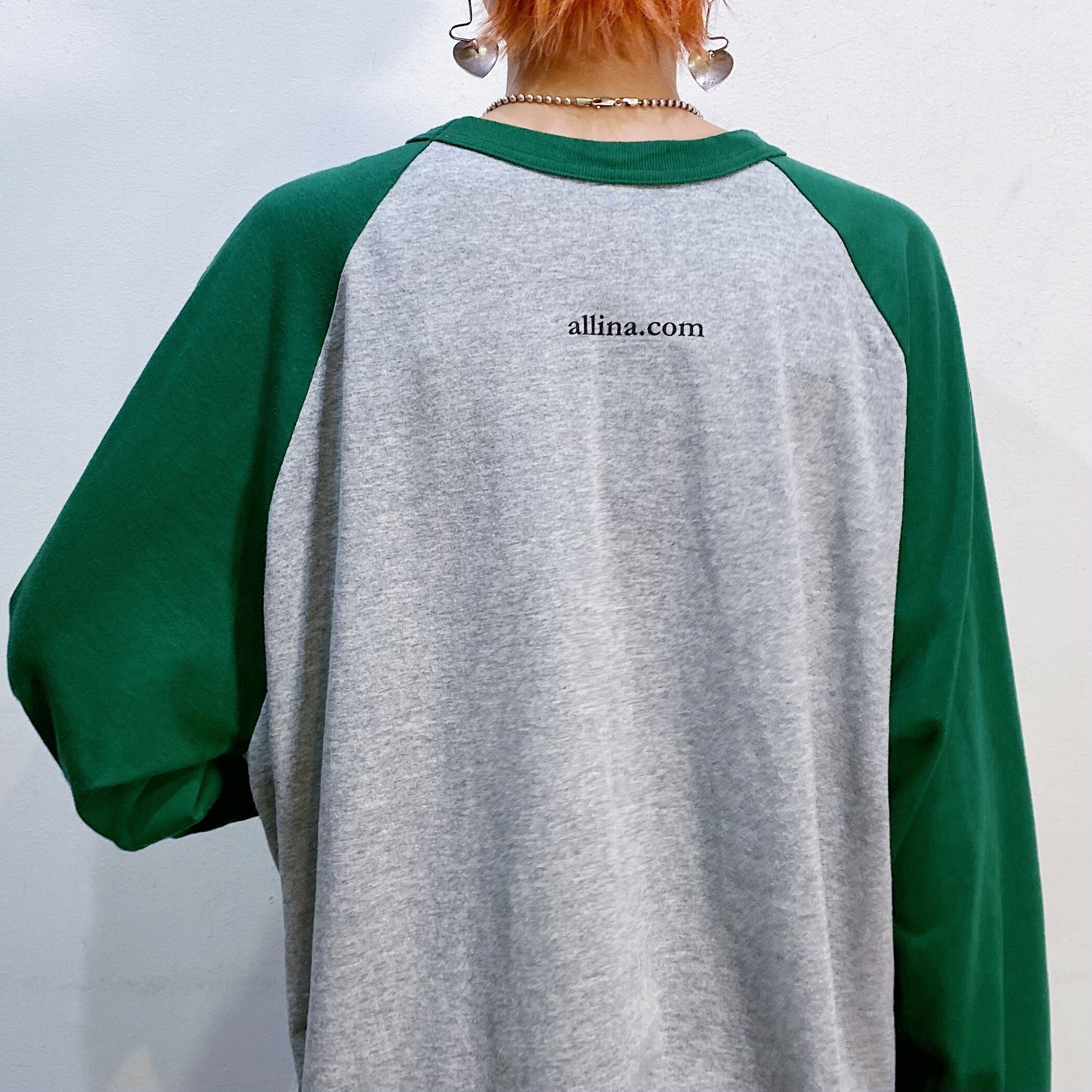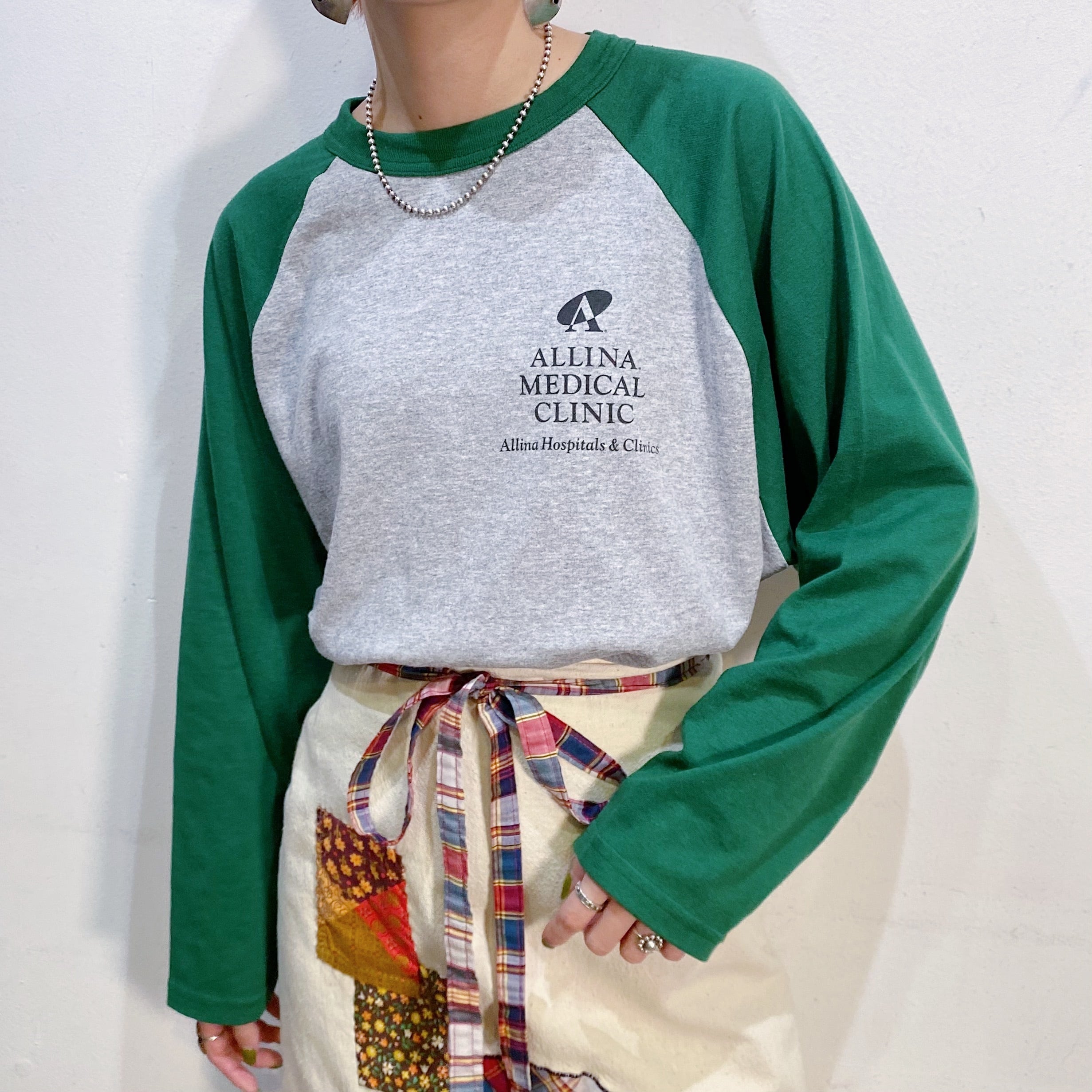 グリーン×杢グレーの色合いがカジュアルで可愛い、ベースボールTシャツです。