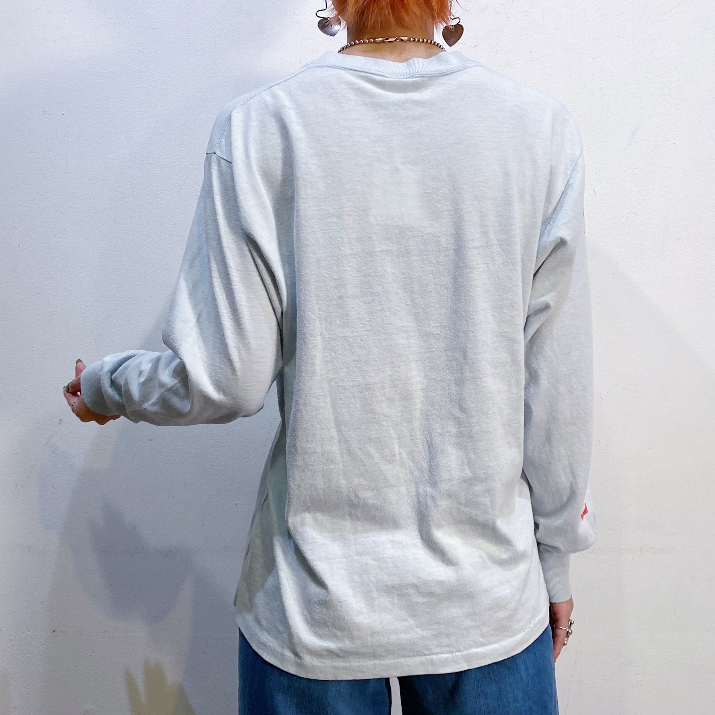 フロントだけでなく、袖にもプリントが入った80年代のロンTです。